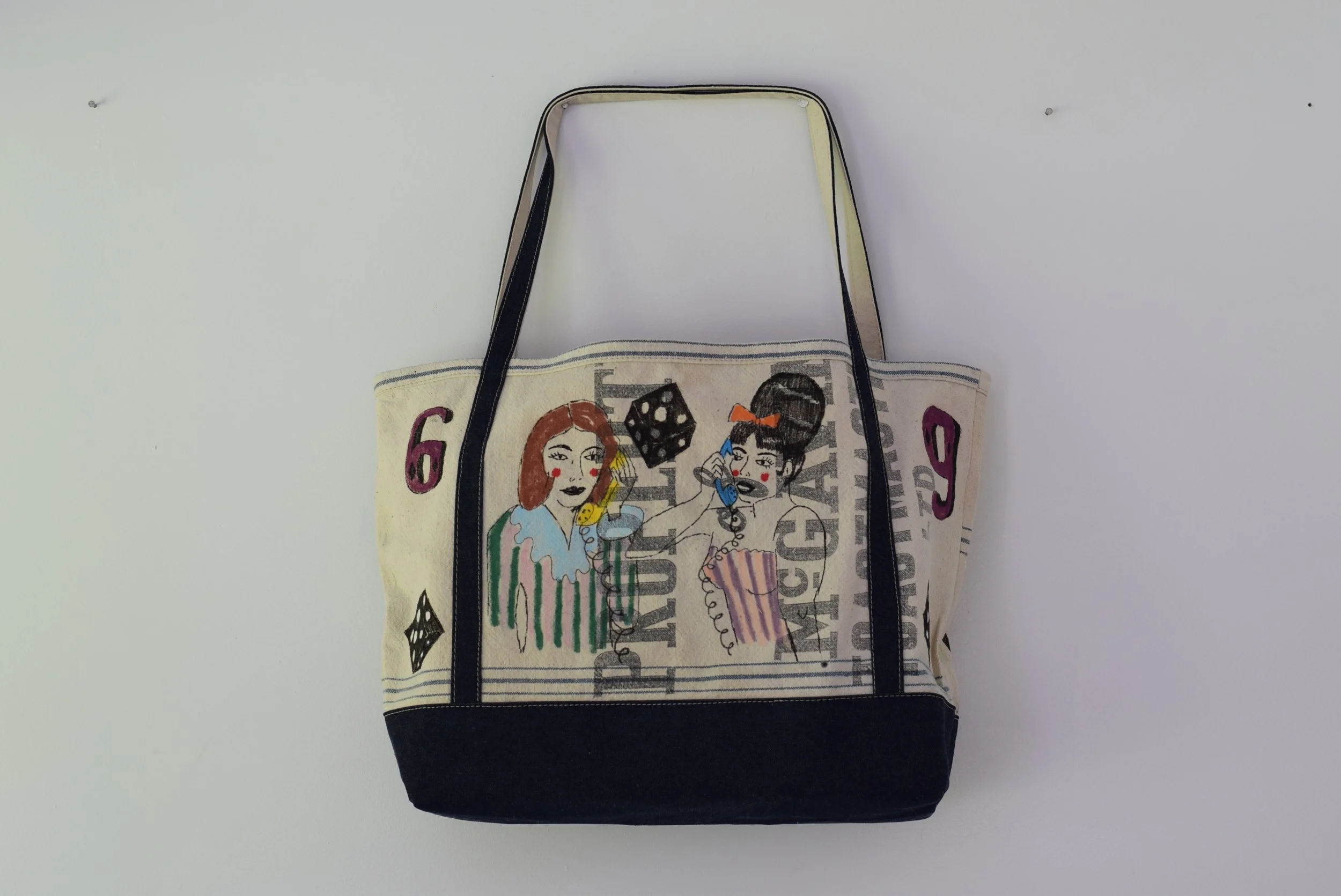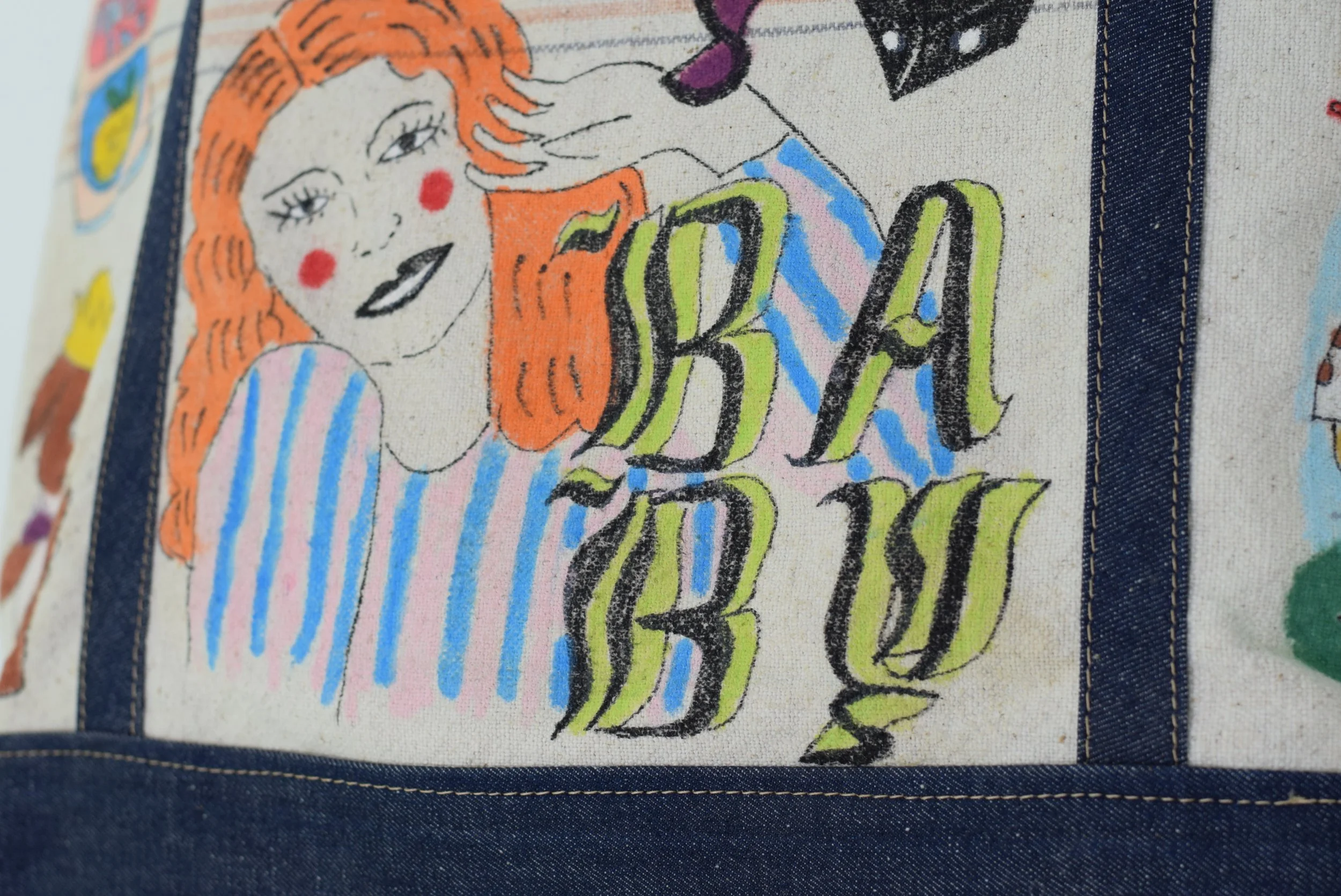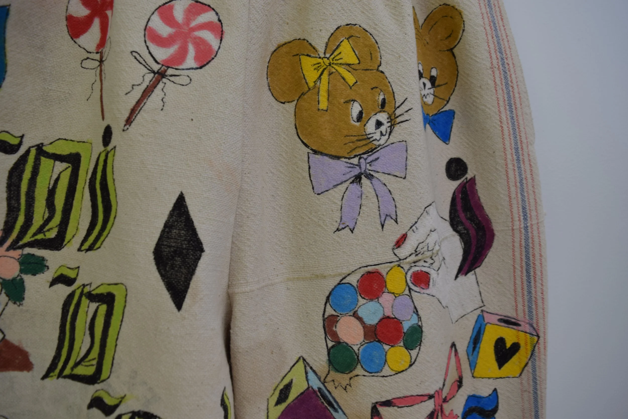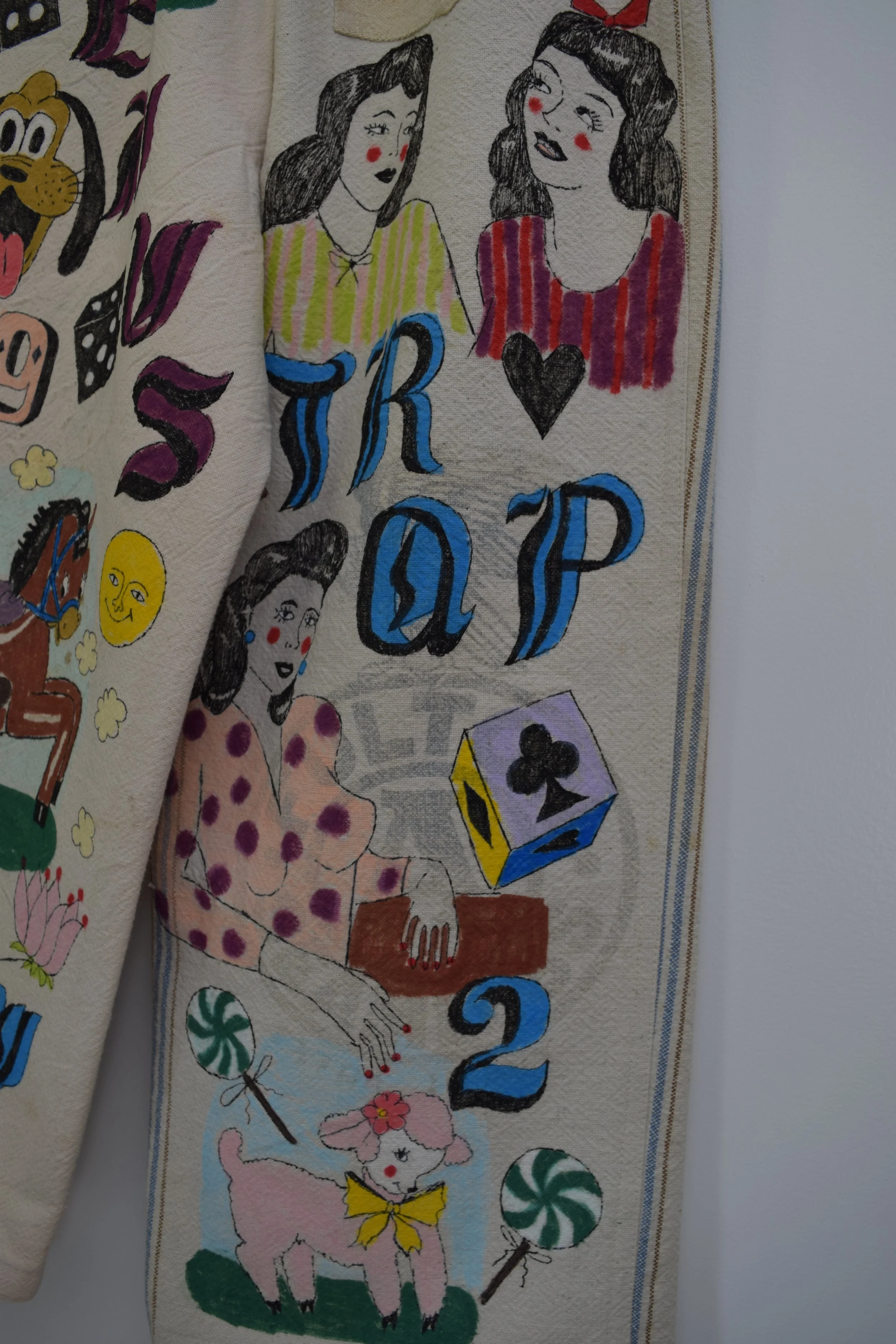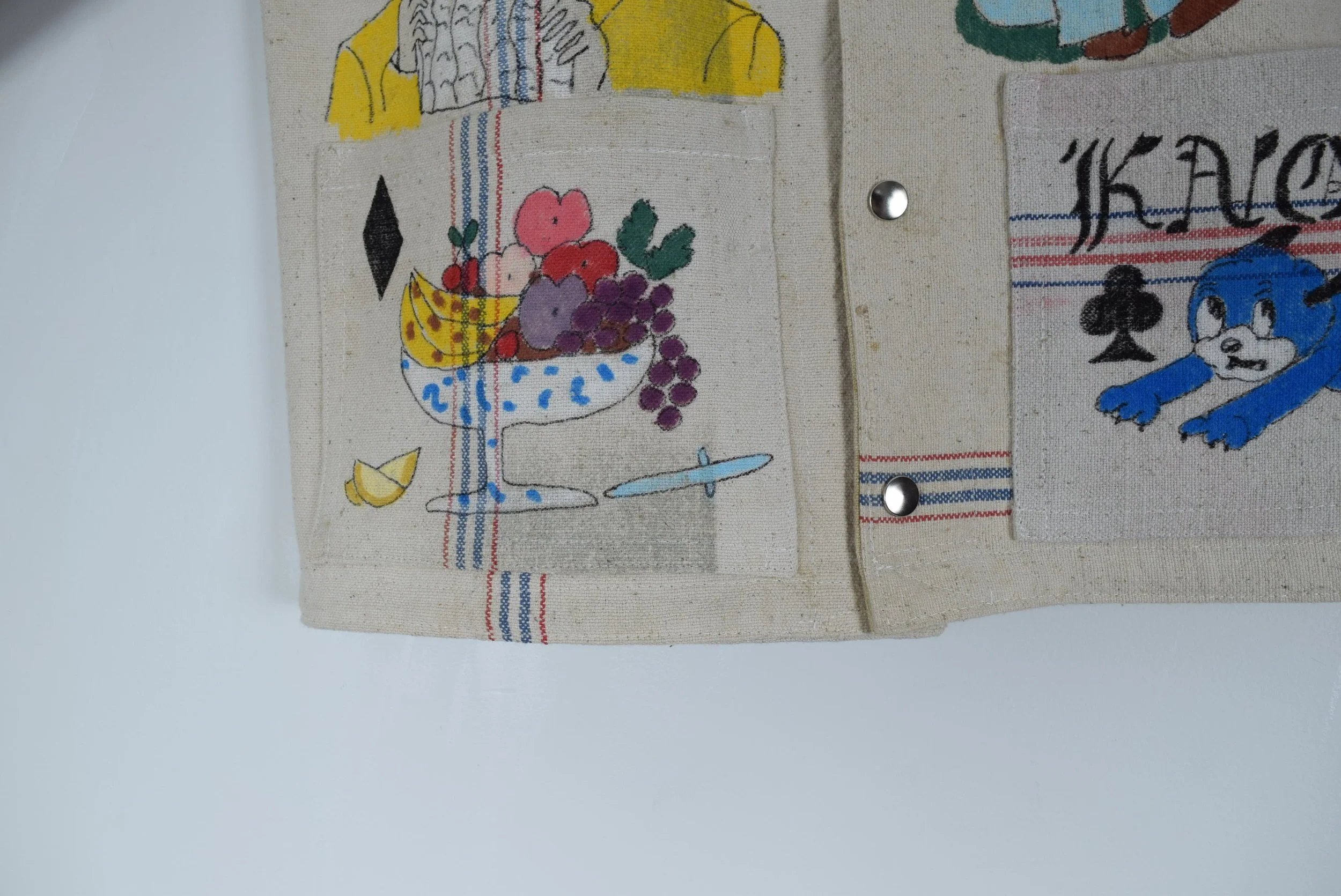 "Infinite Mystery" hand drawn cotton feedsack chore coat Size Medium