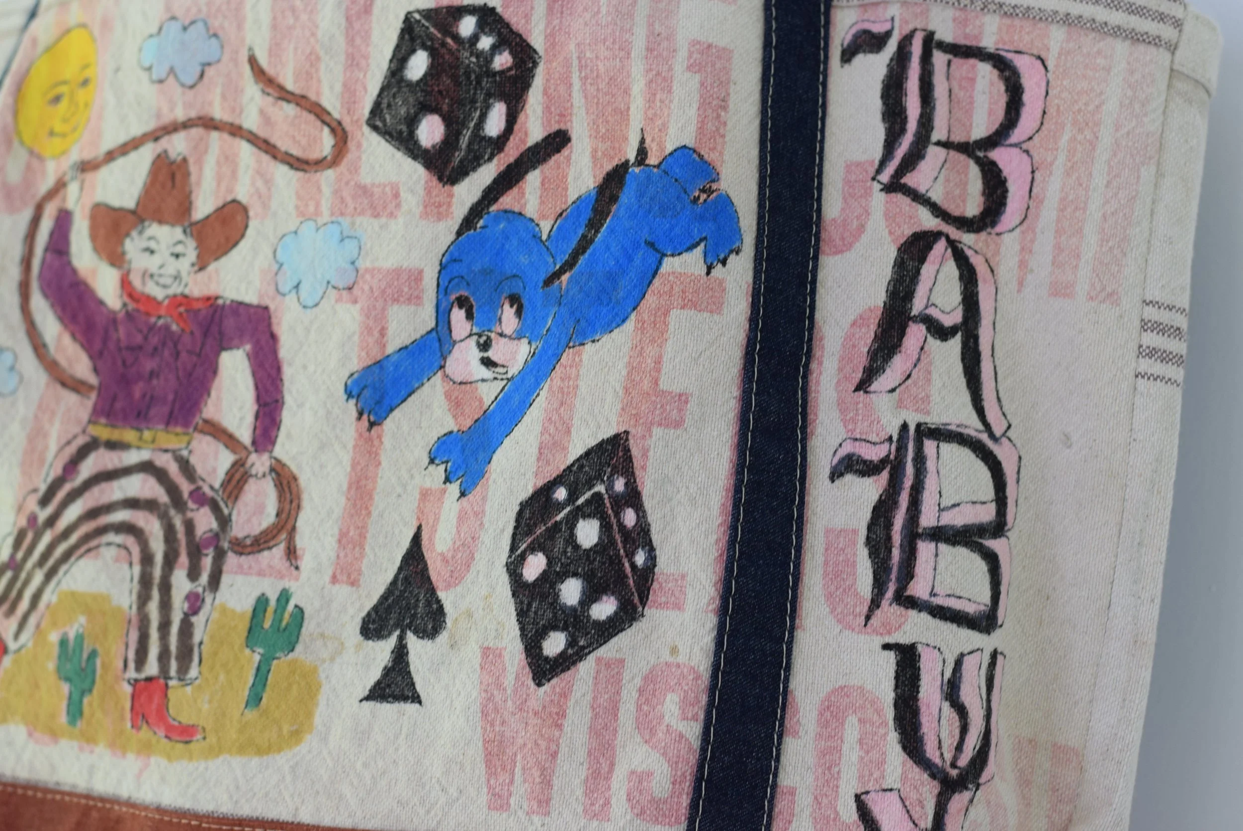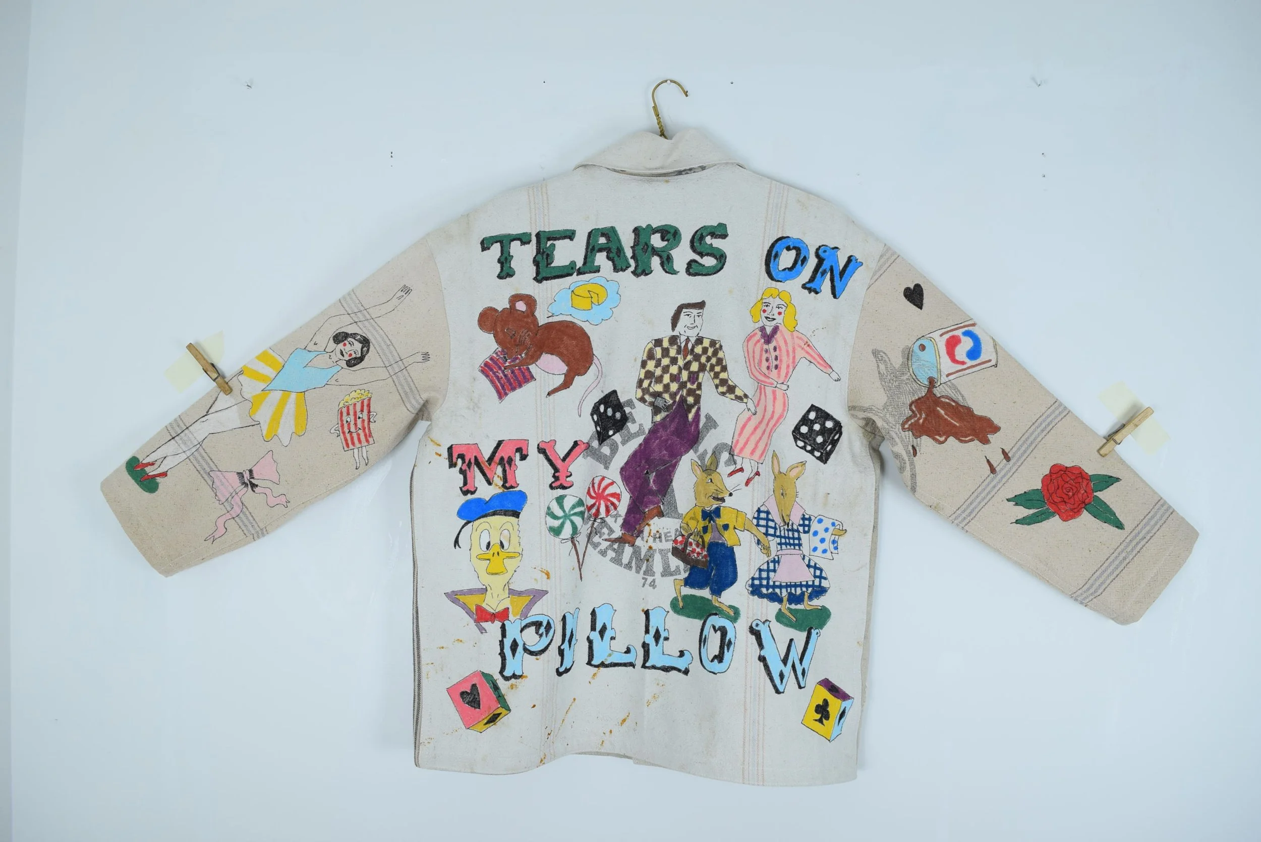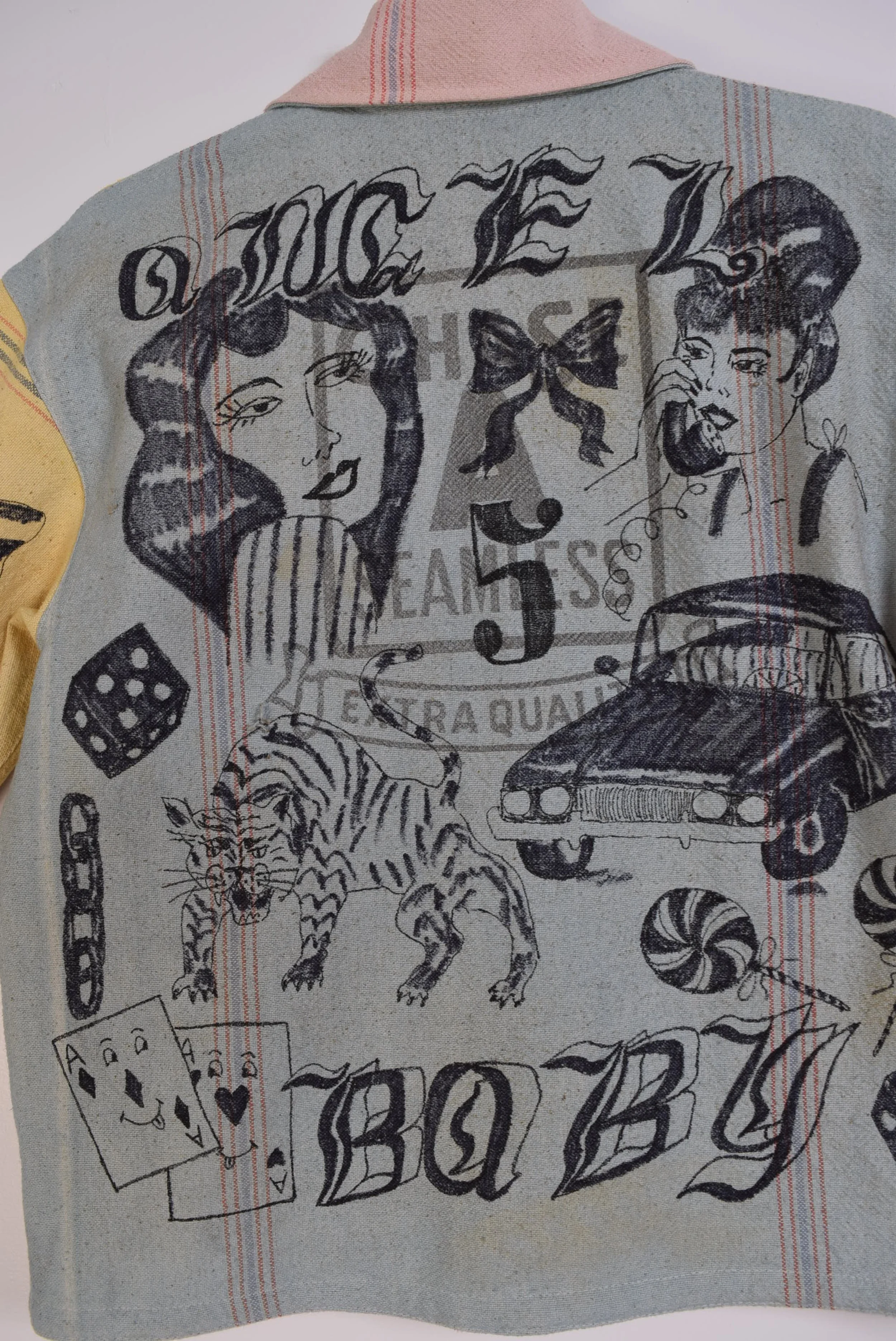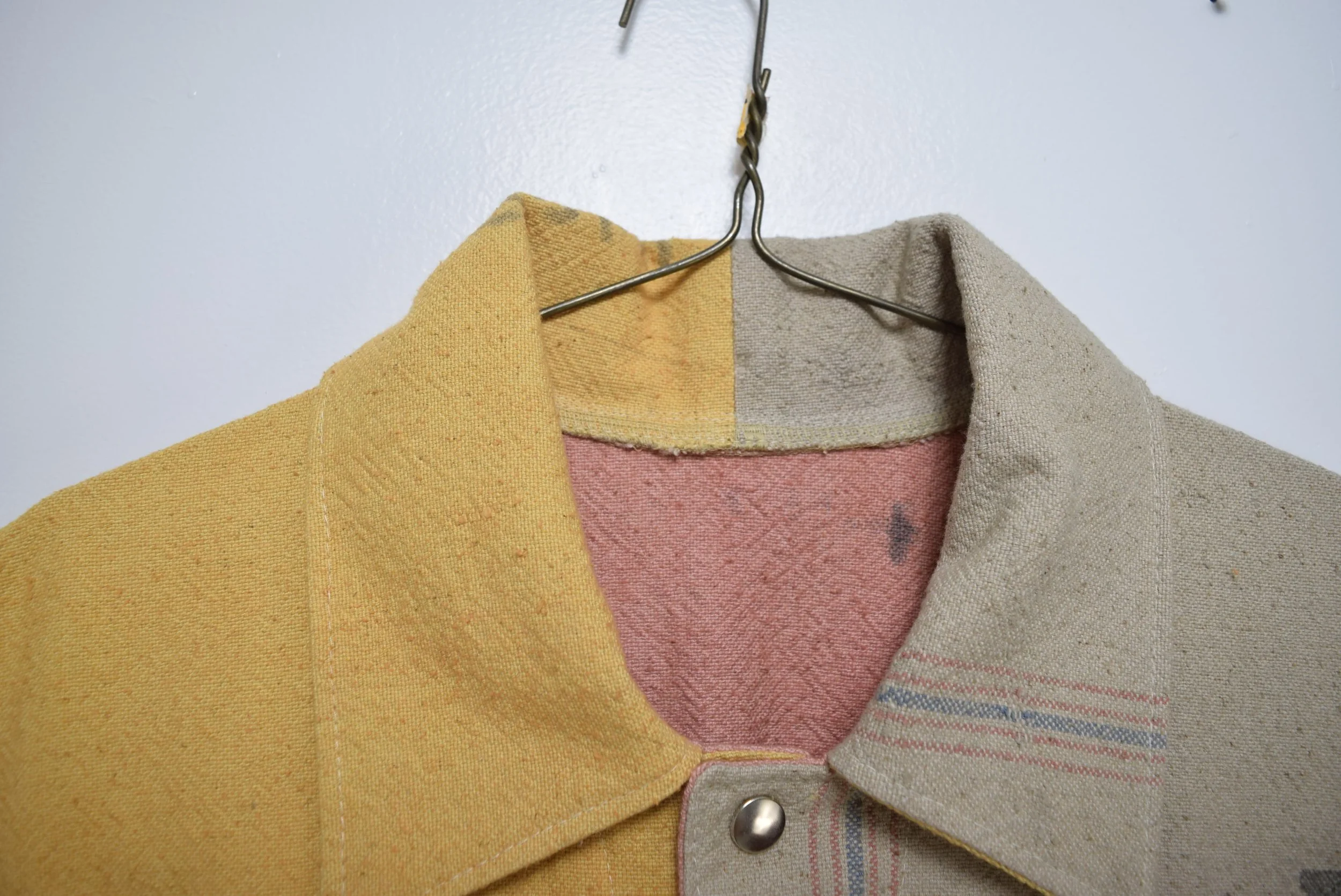 "Only Dreams" hand drawn colorblock cotton feedsack chore coat Size Medium