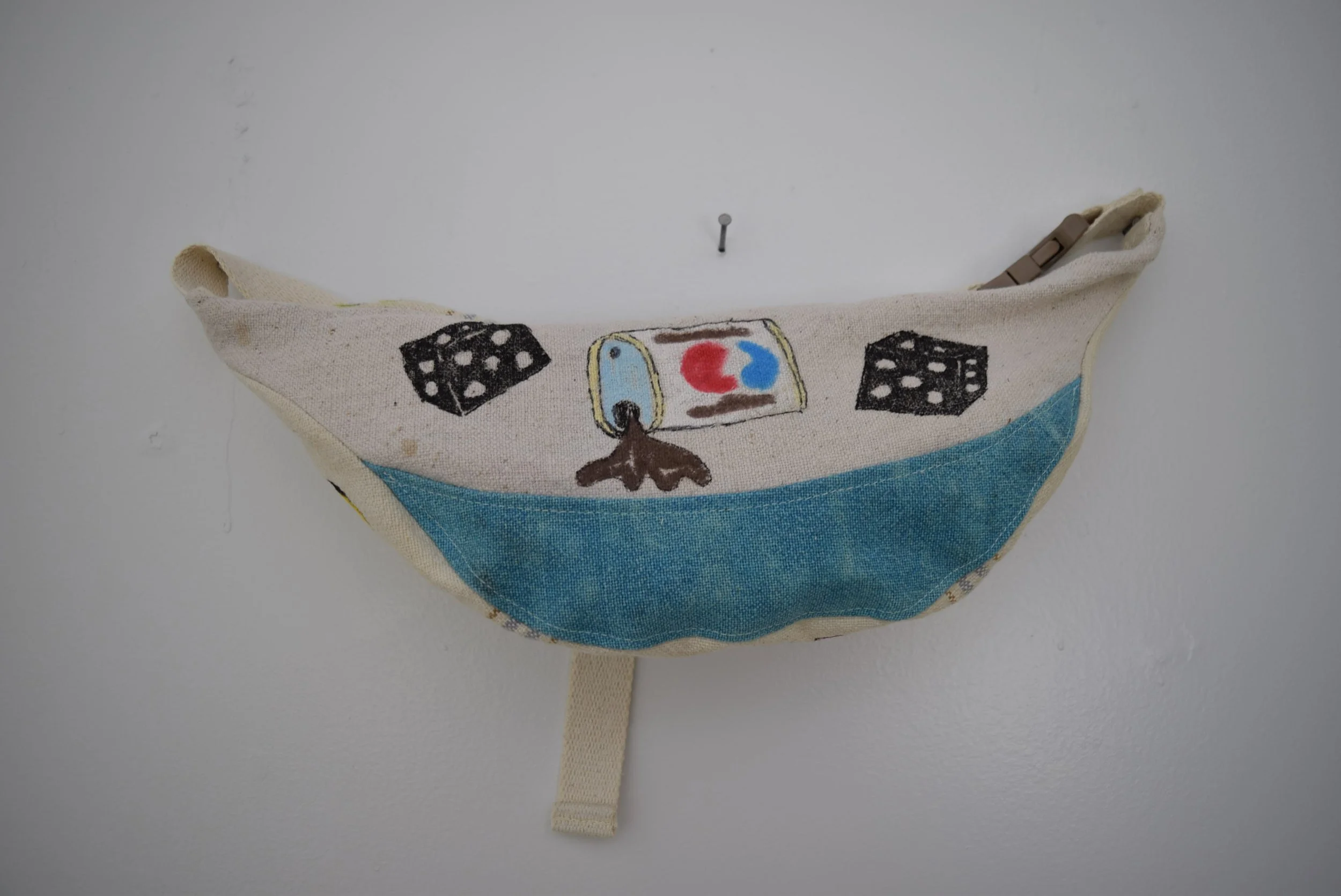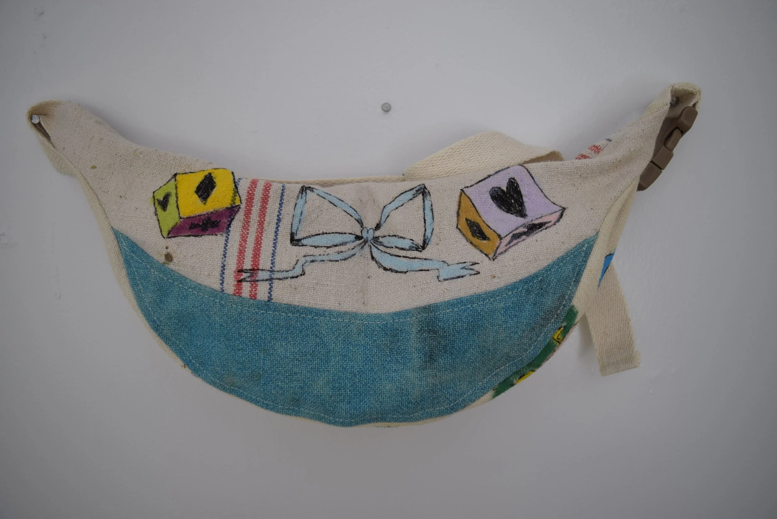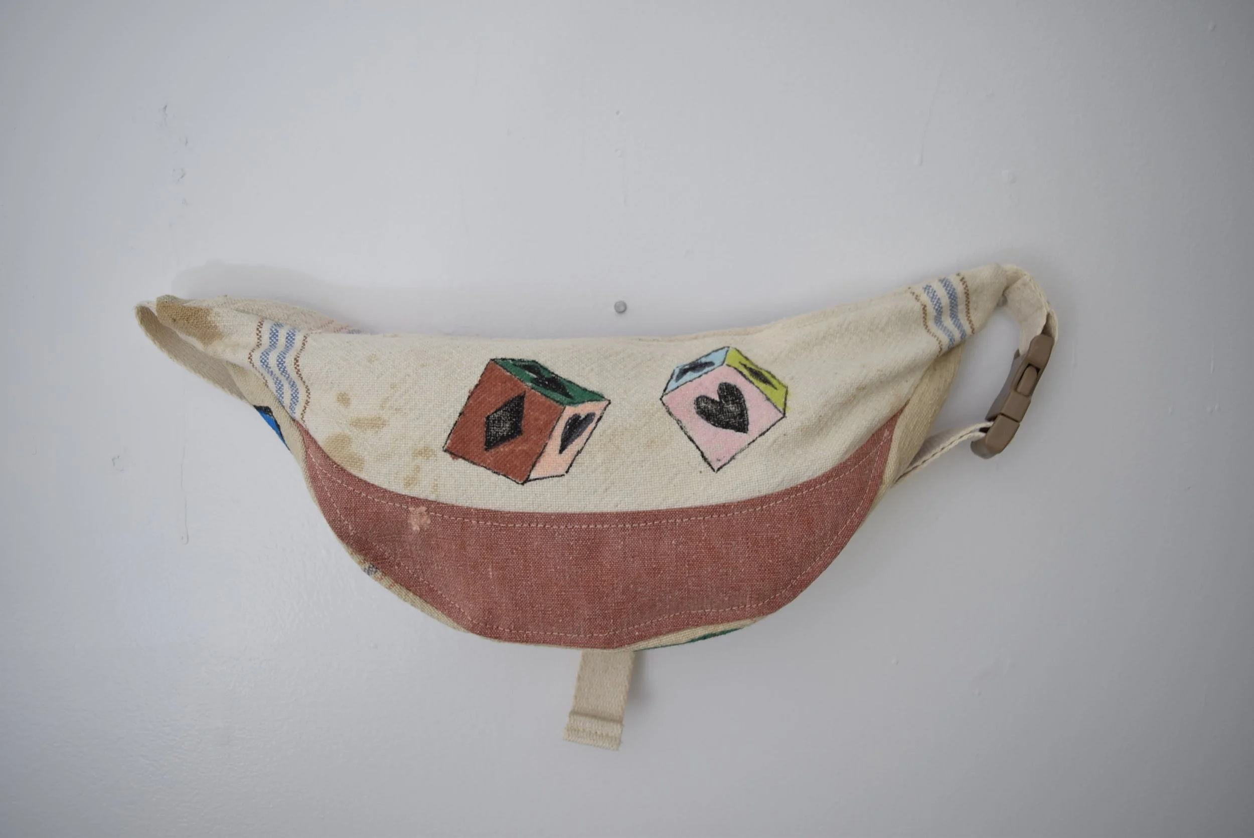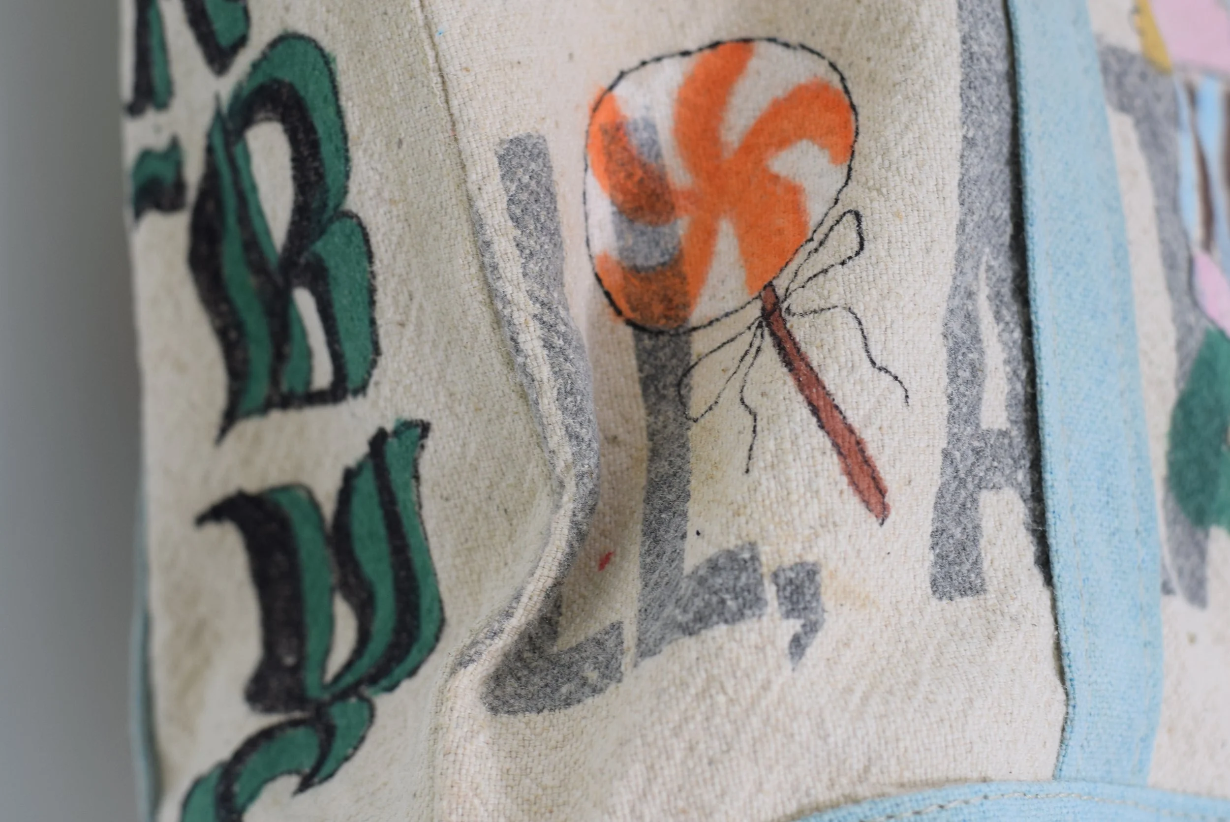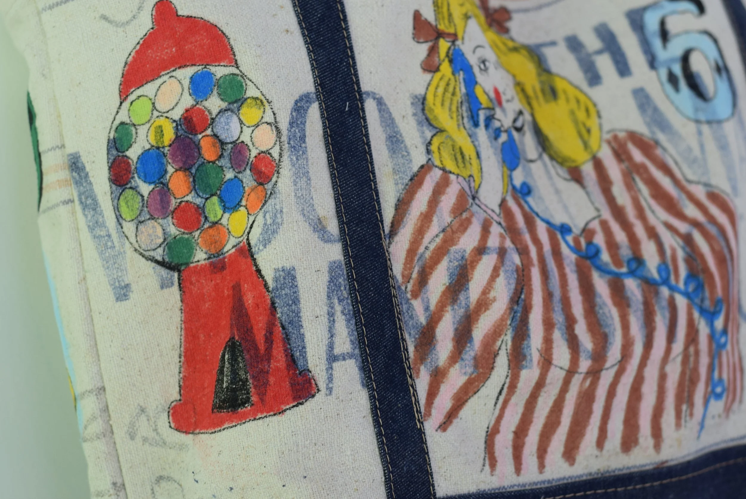 "Only Dreams" hand drawn colorblock cotton feedsack chore coat Size Medium