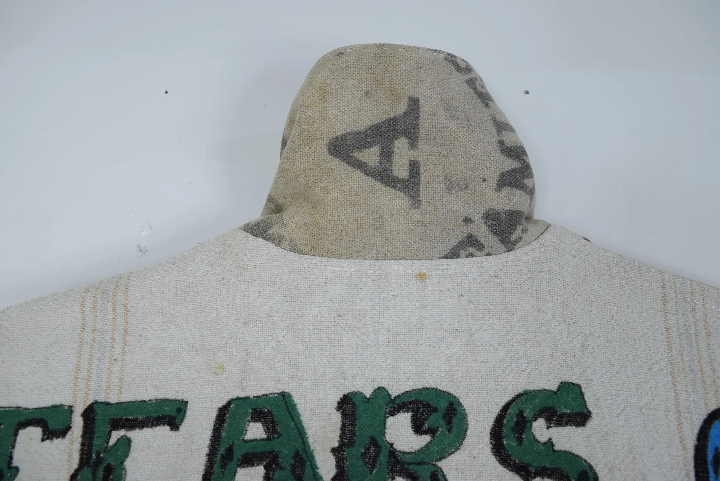 "divine intervention" Cotton Feedsack Chore Coat size Large