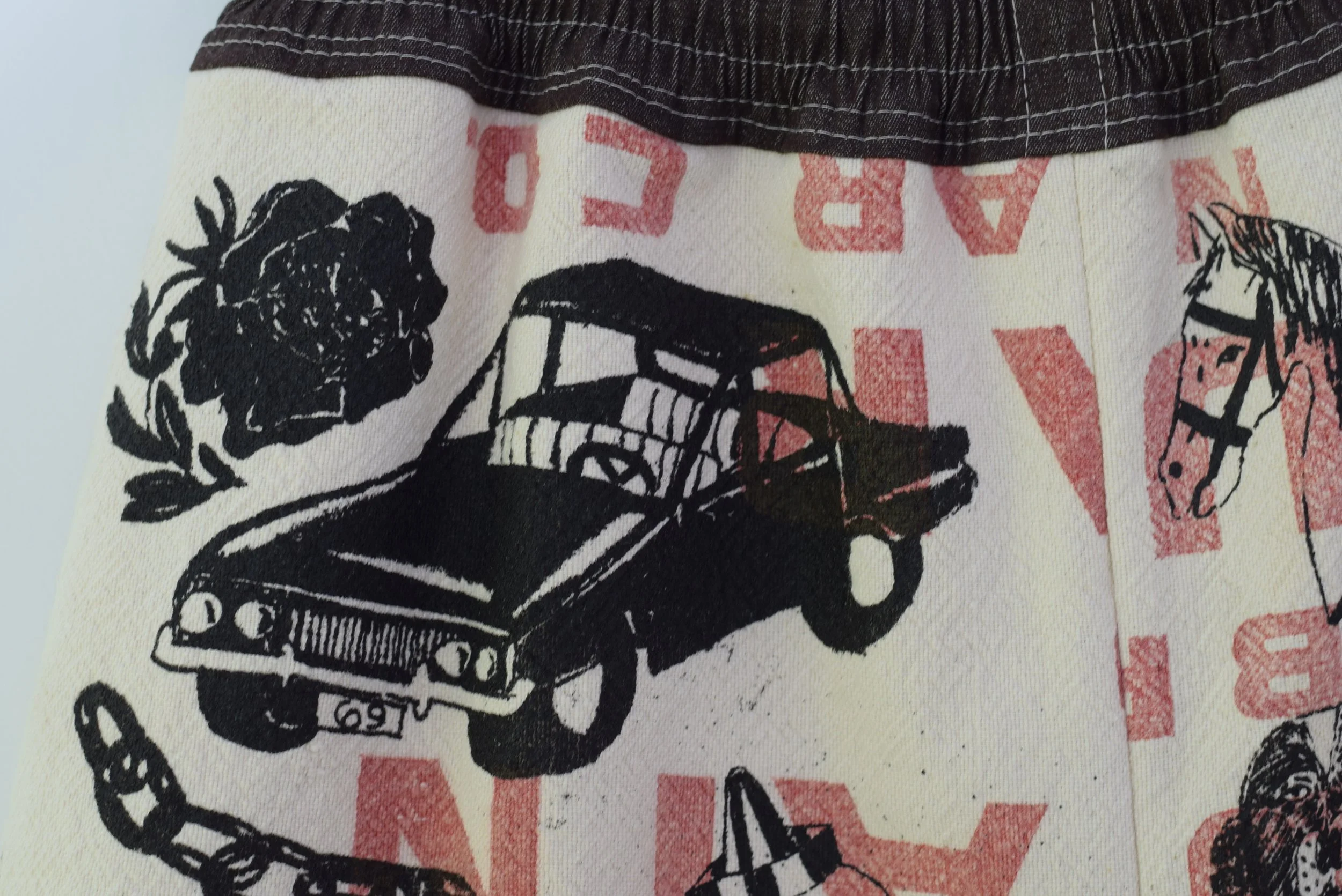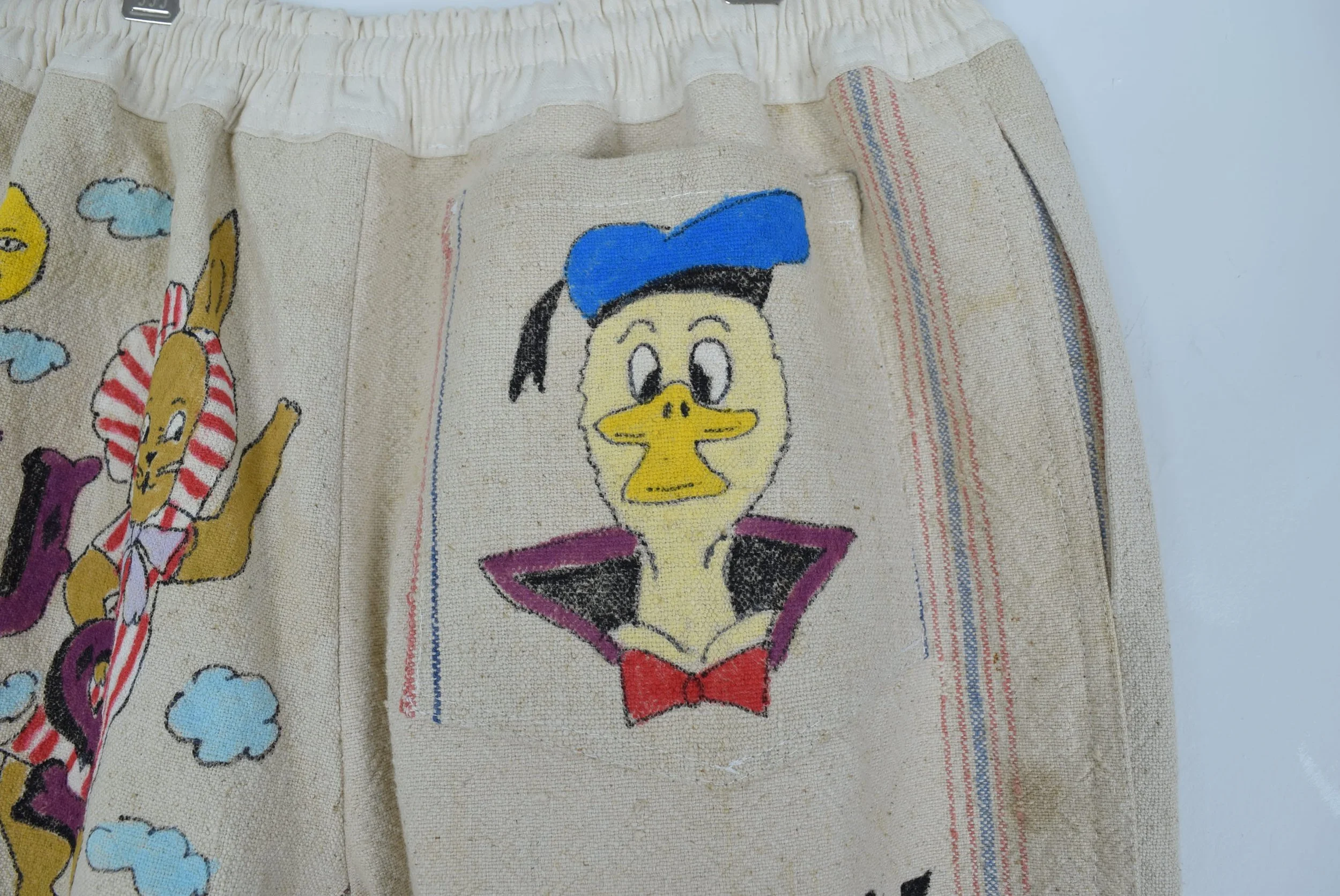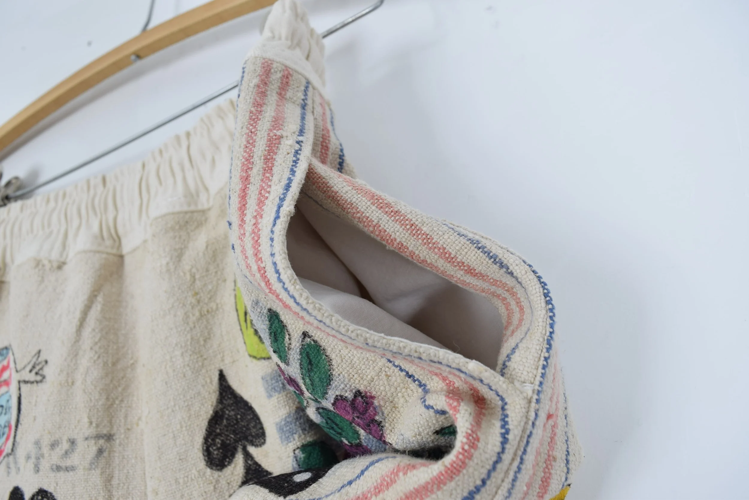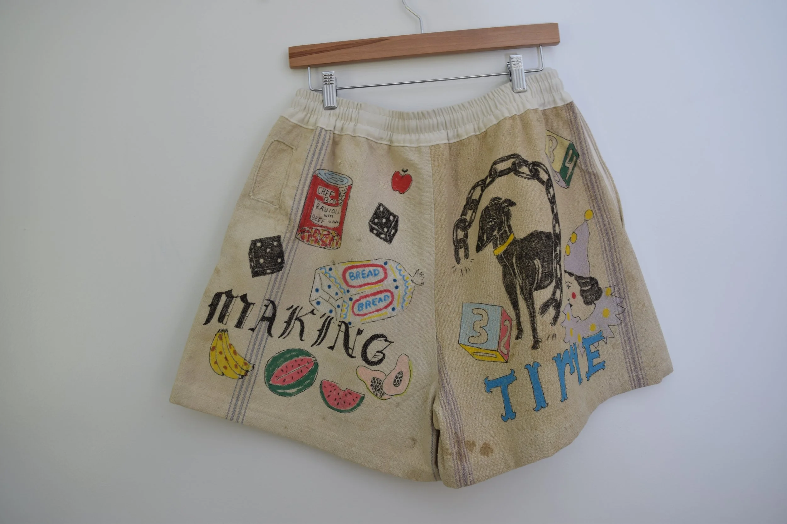 "yearning for yesterday" Hand Drawn Cotton Feedsack Shorts size M/L