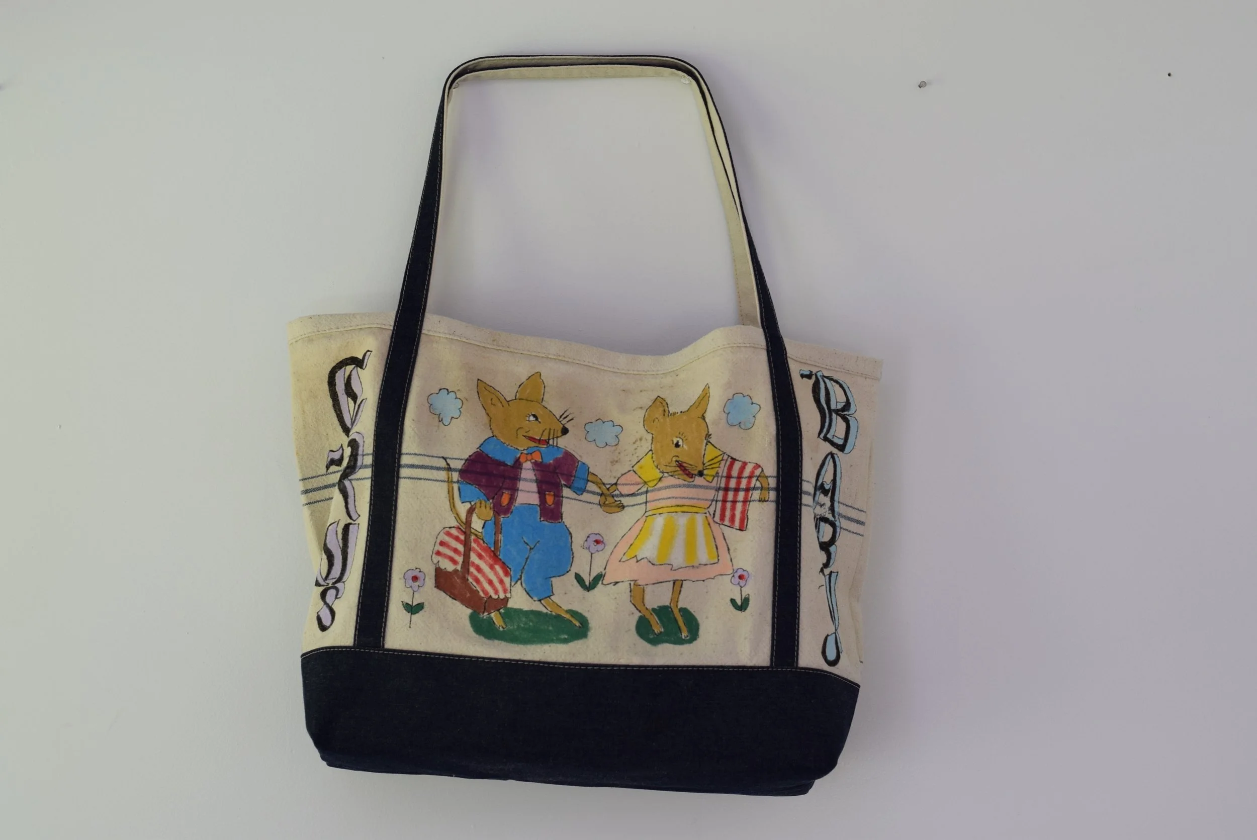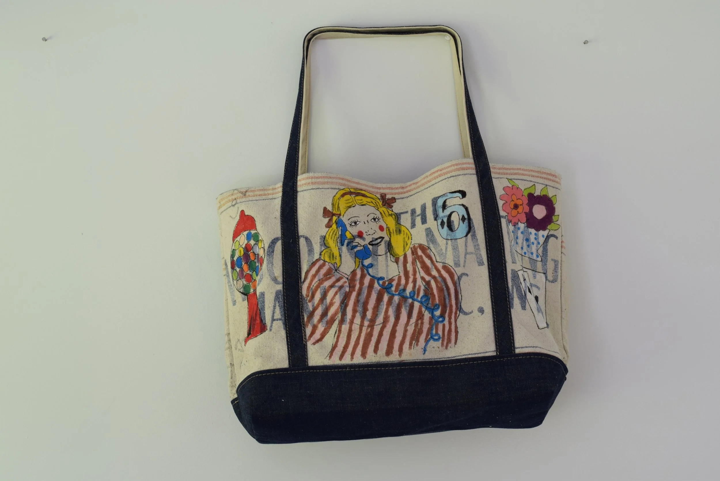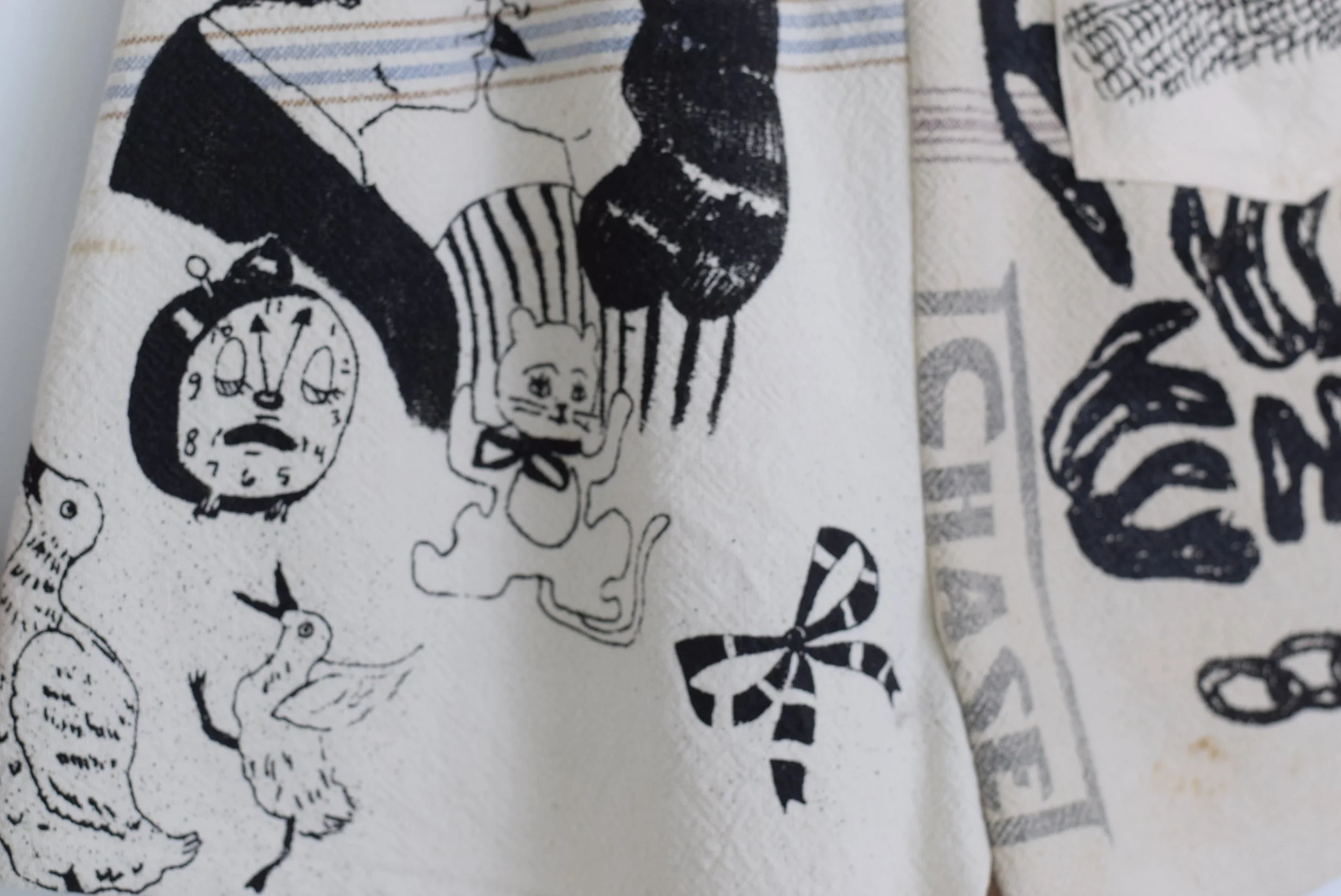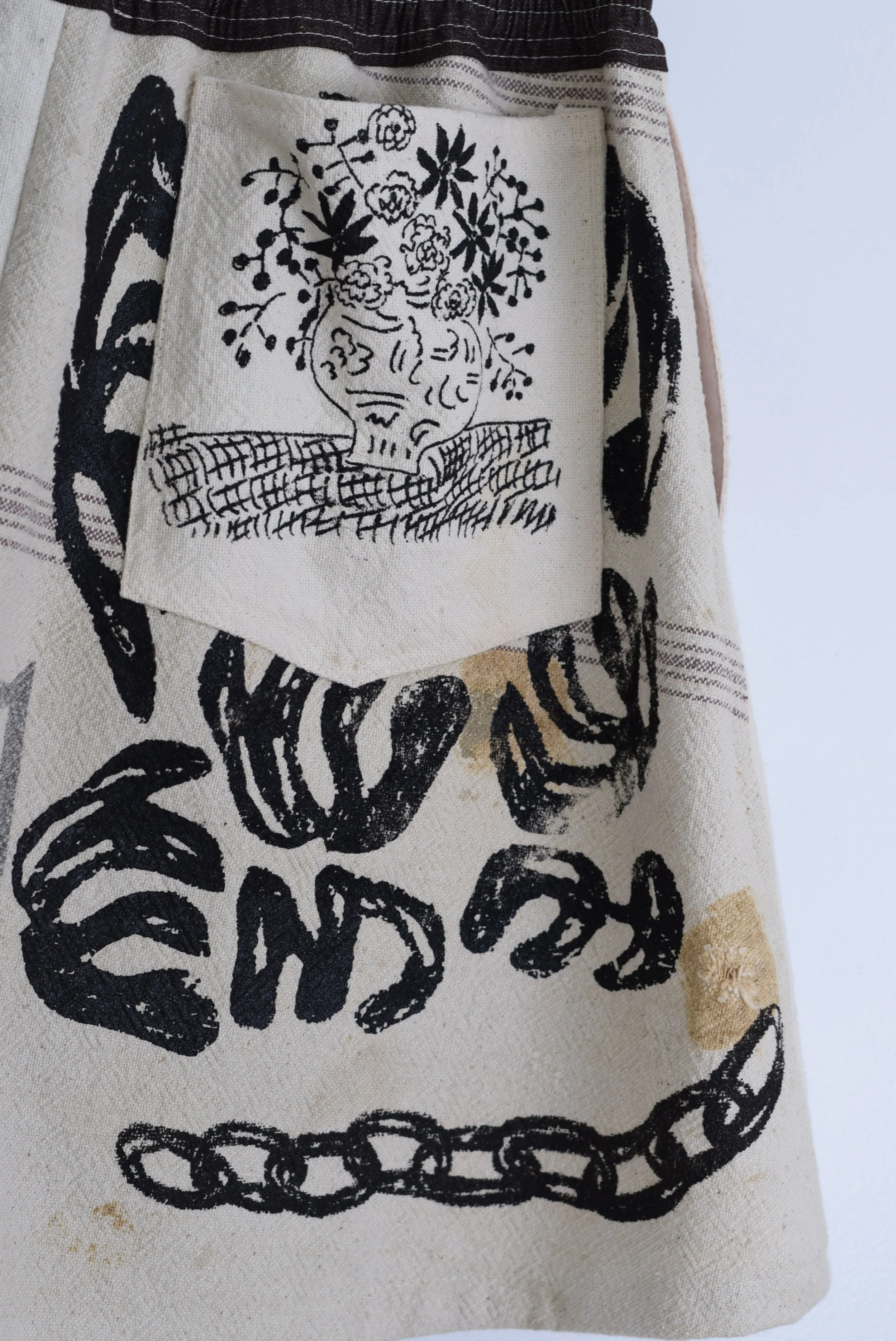 "yearning for yesterday" Hand Drawn Cotton Feedsack Shorts size M/L