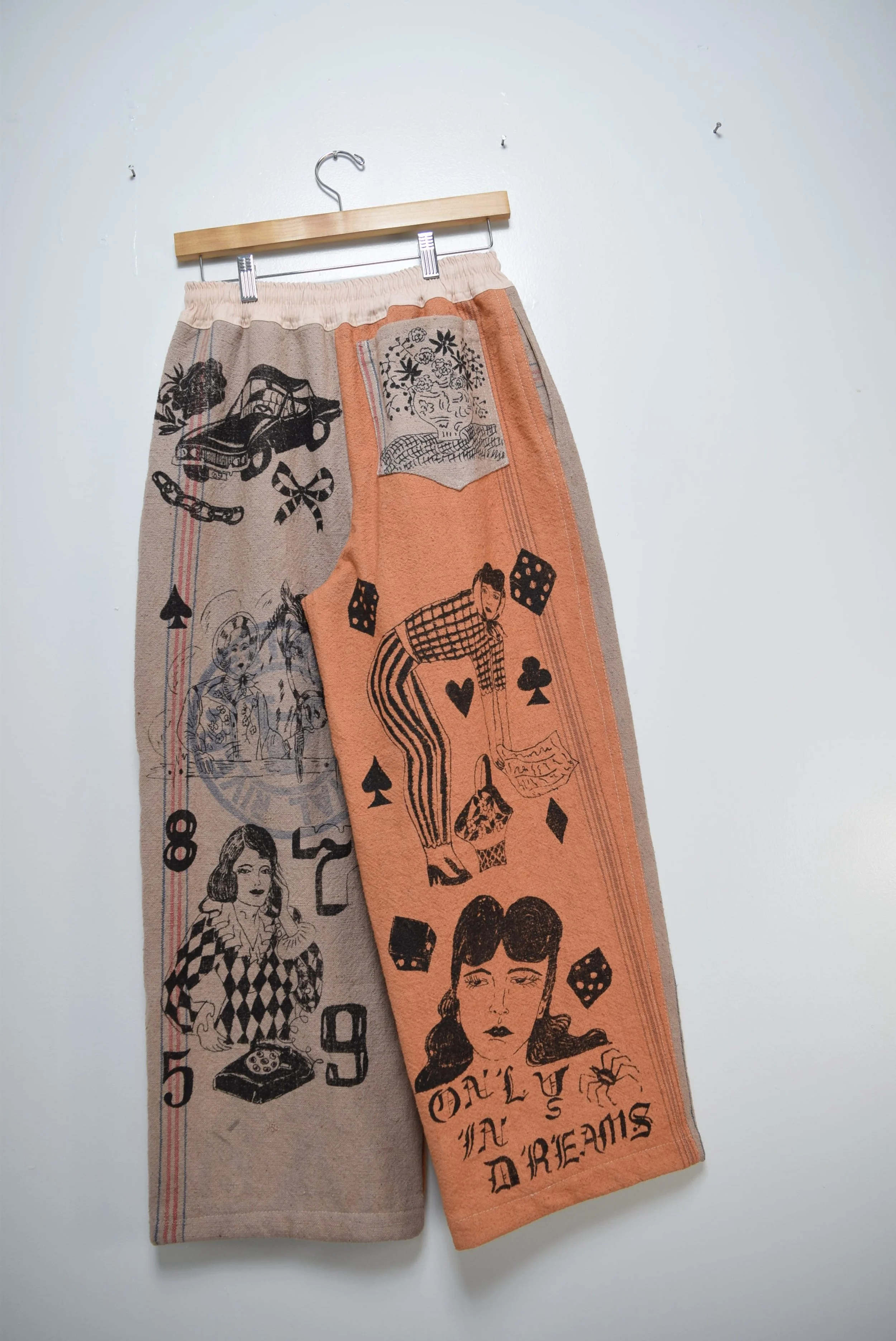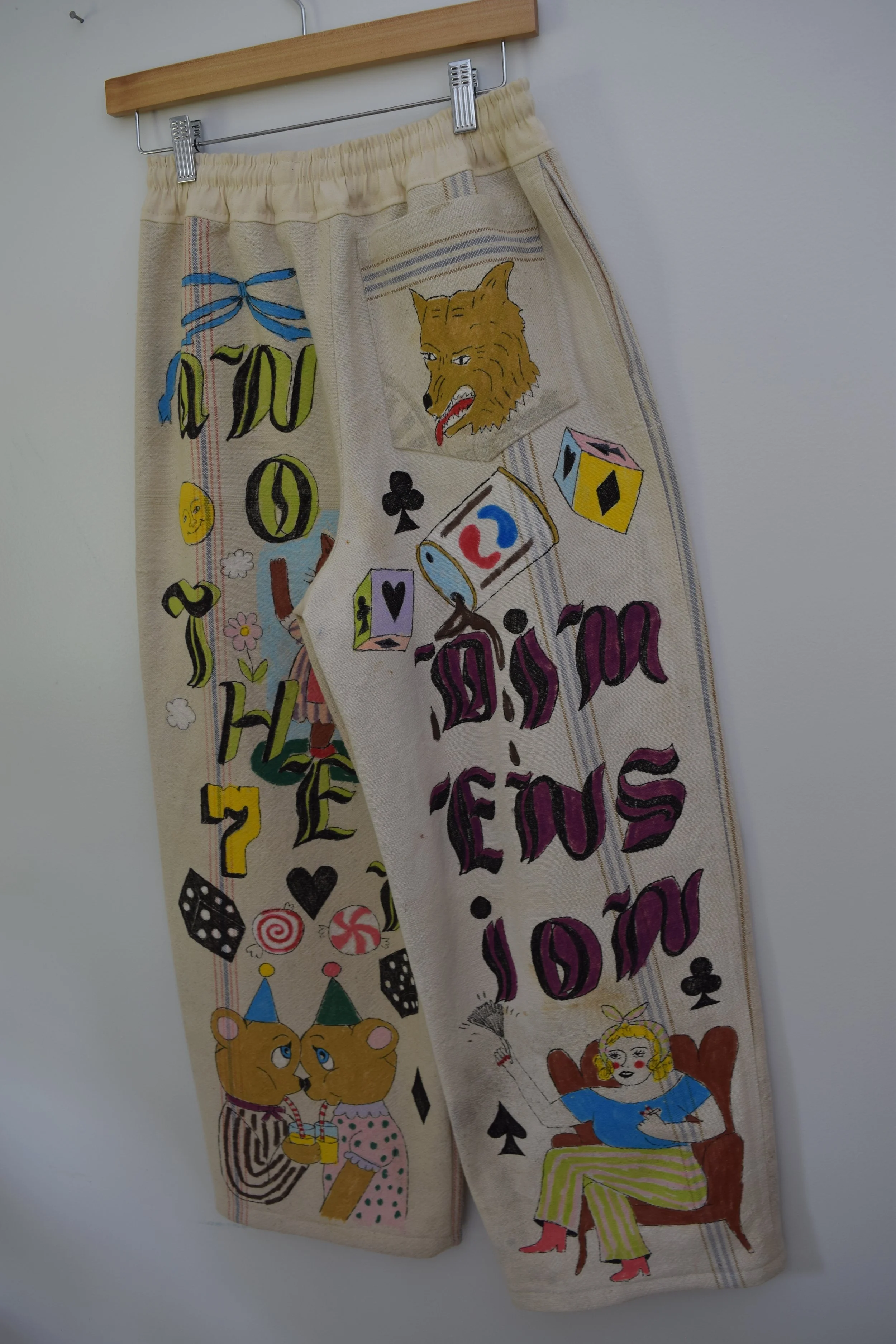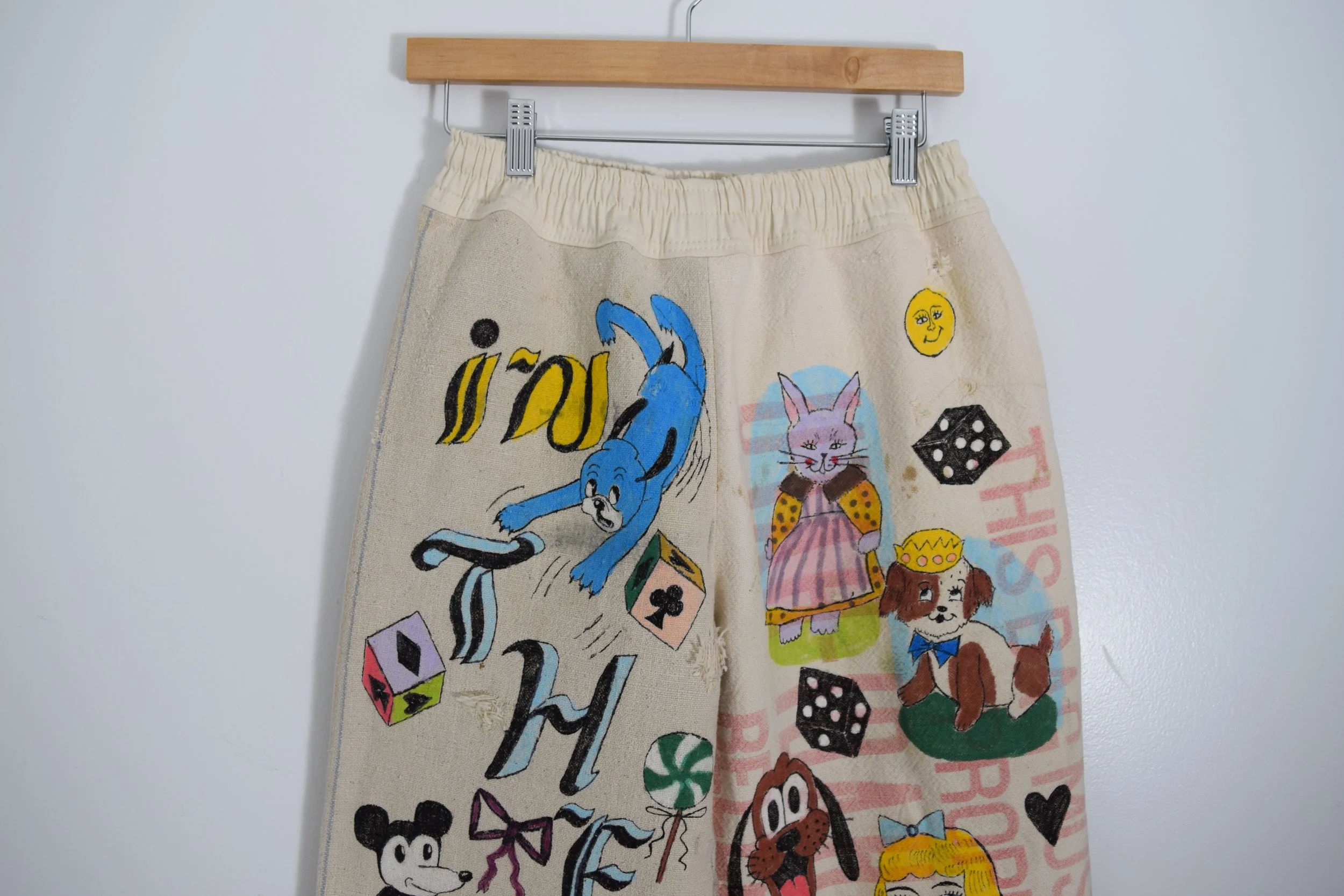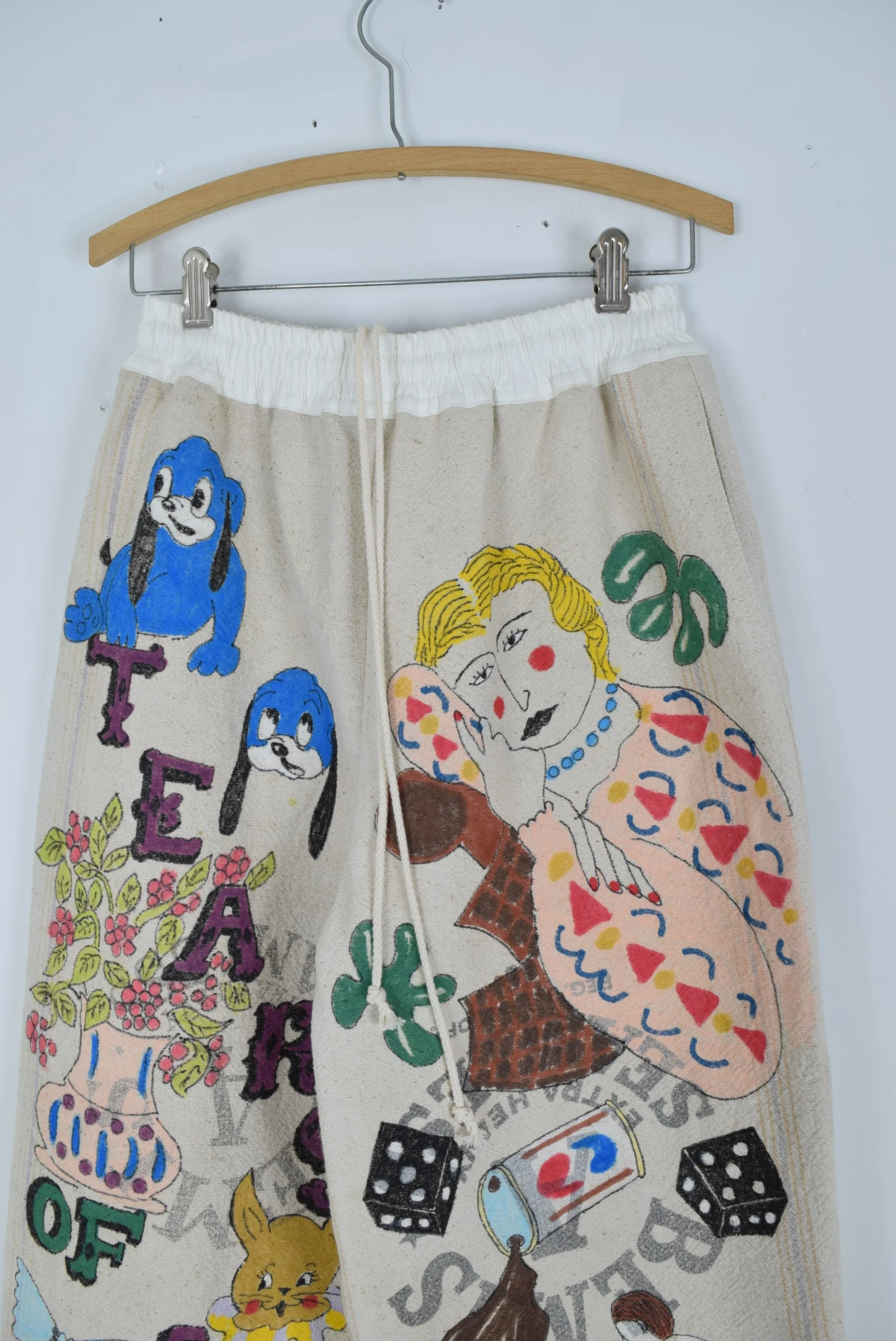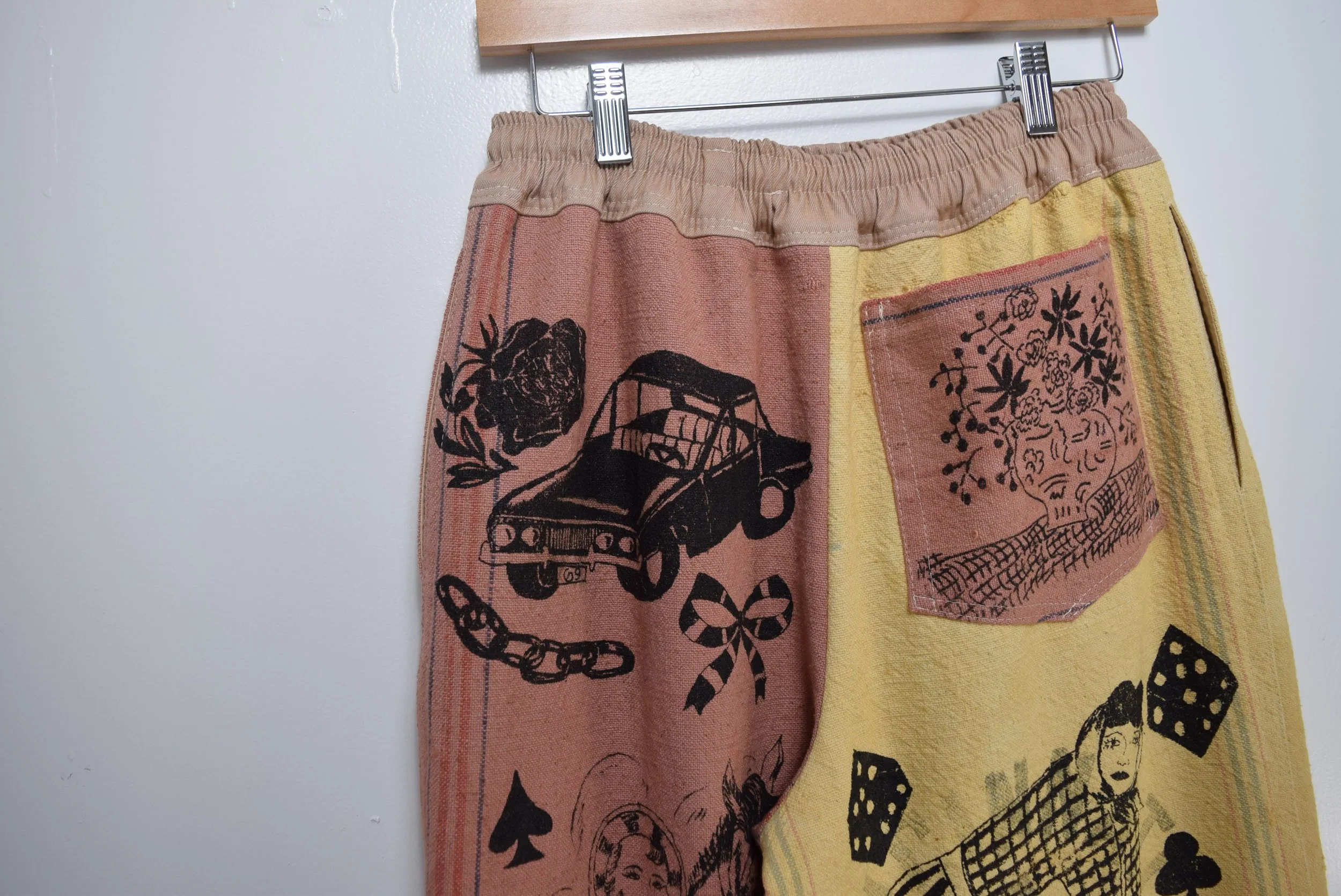 "in the realm of the unreal" Cotton Feedsack Pants size XS
