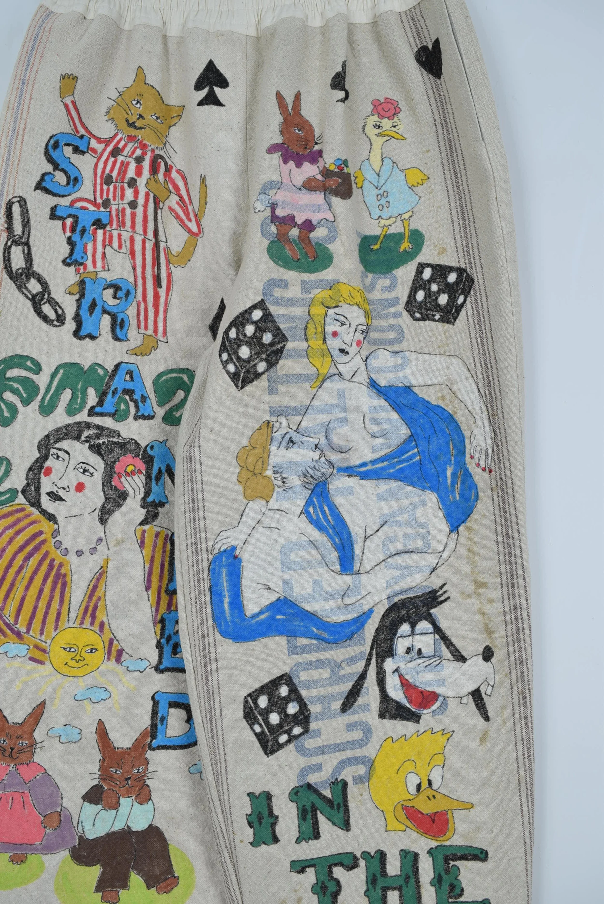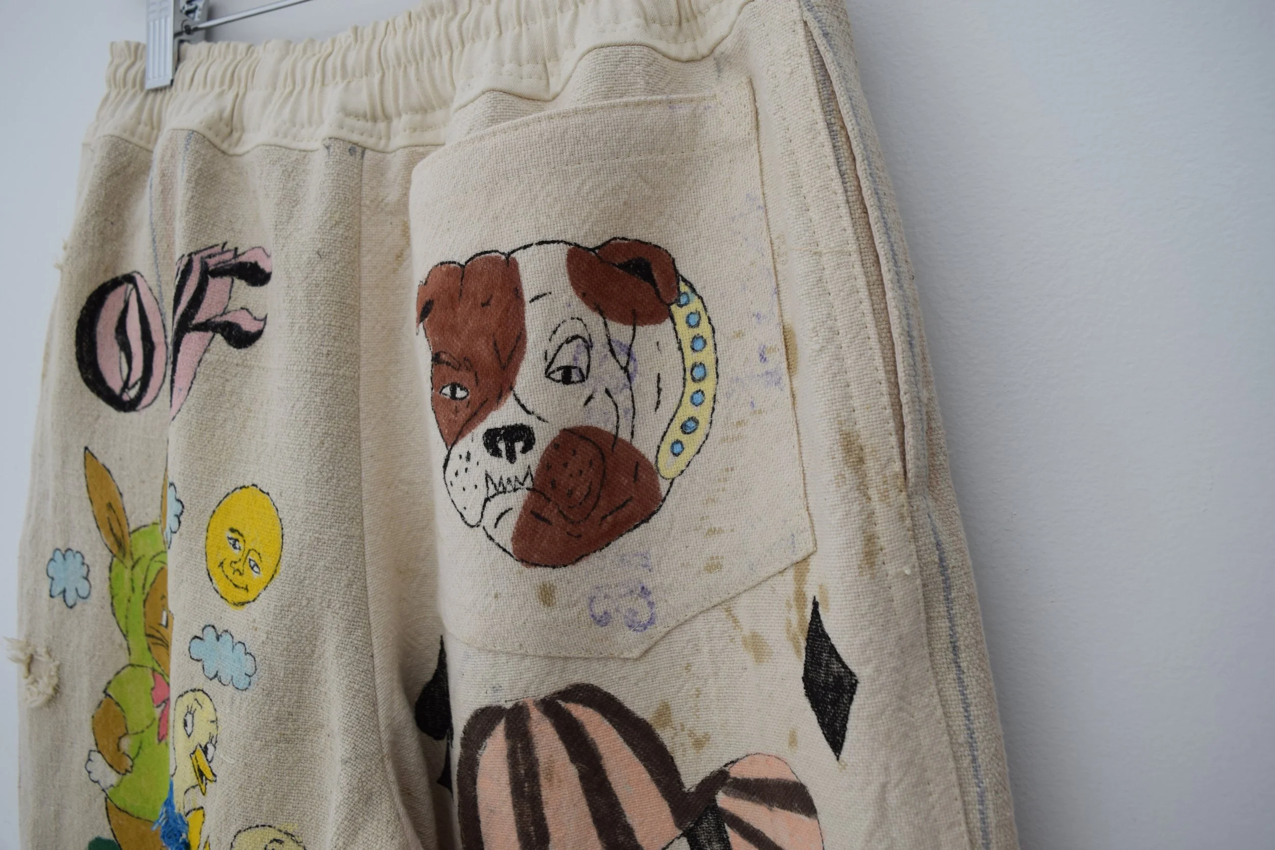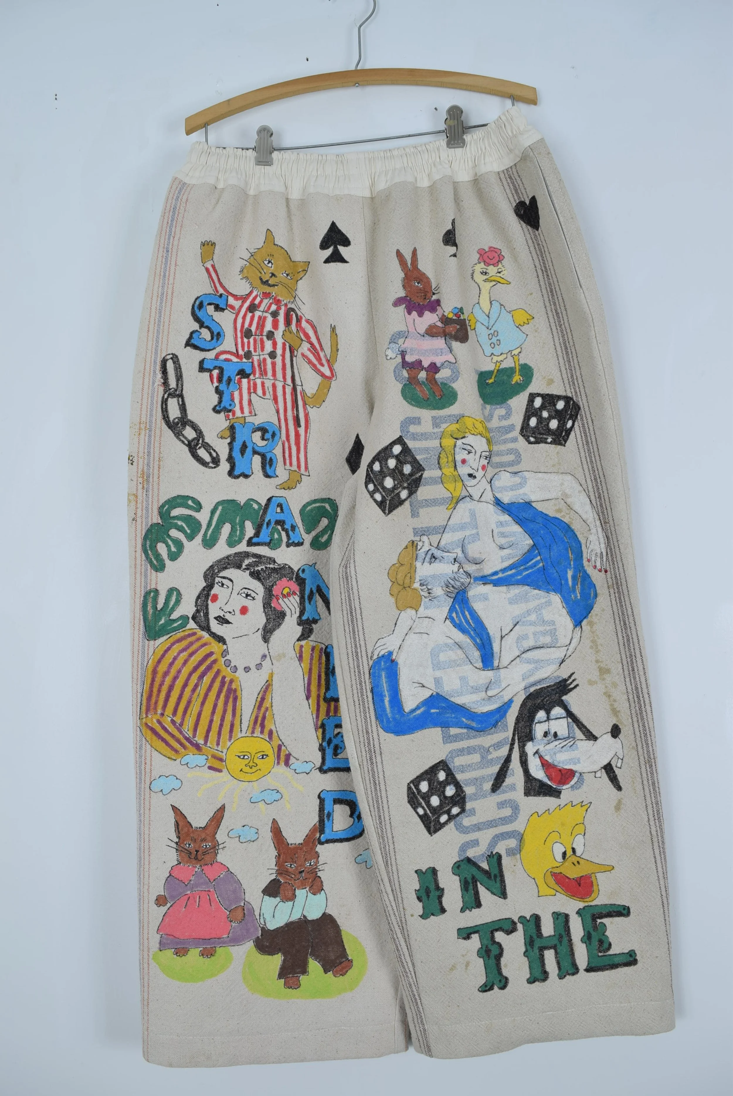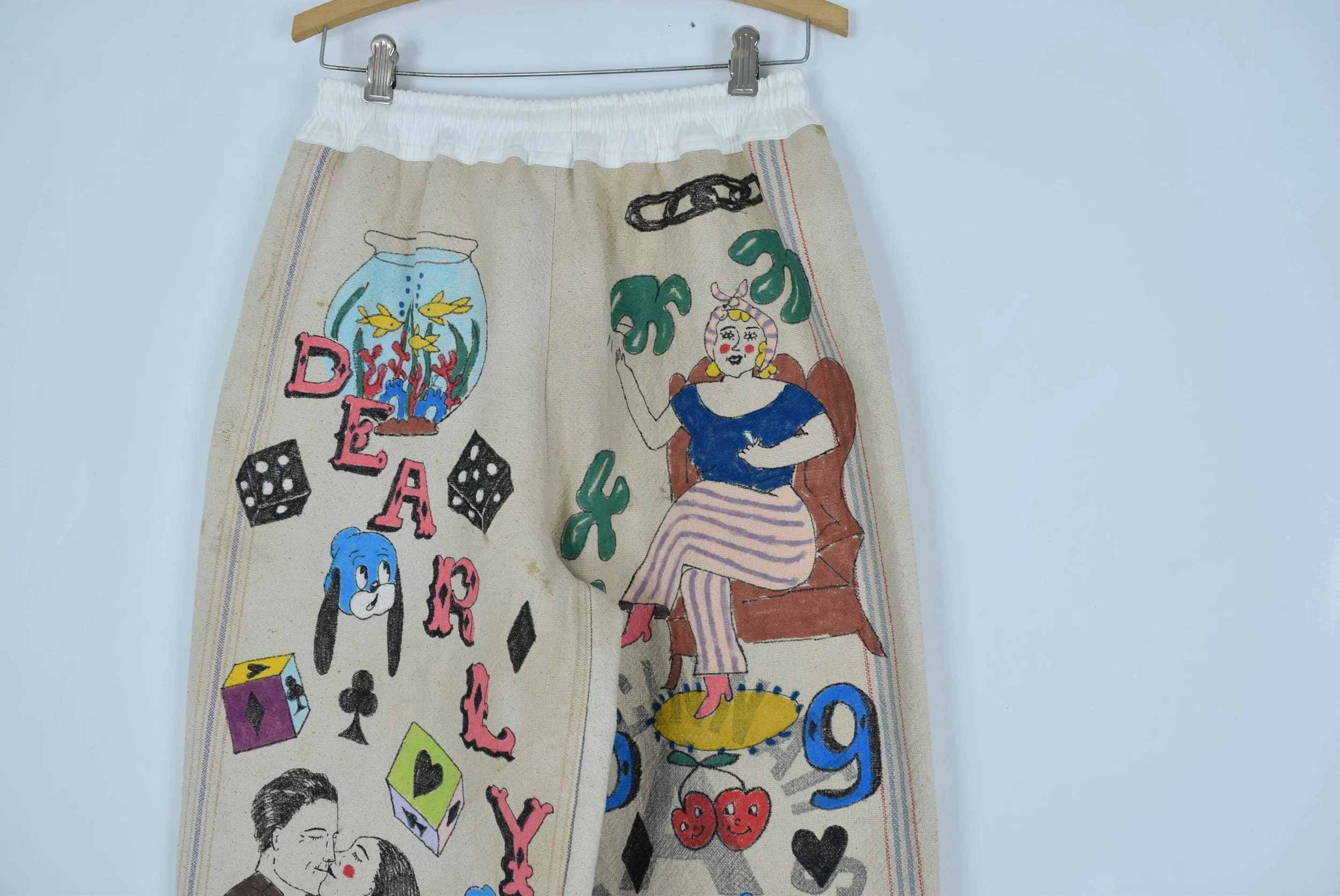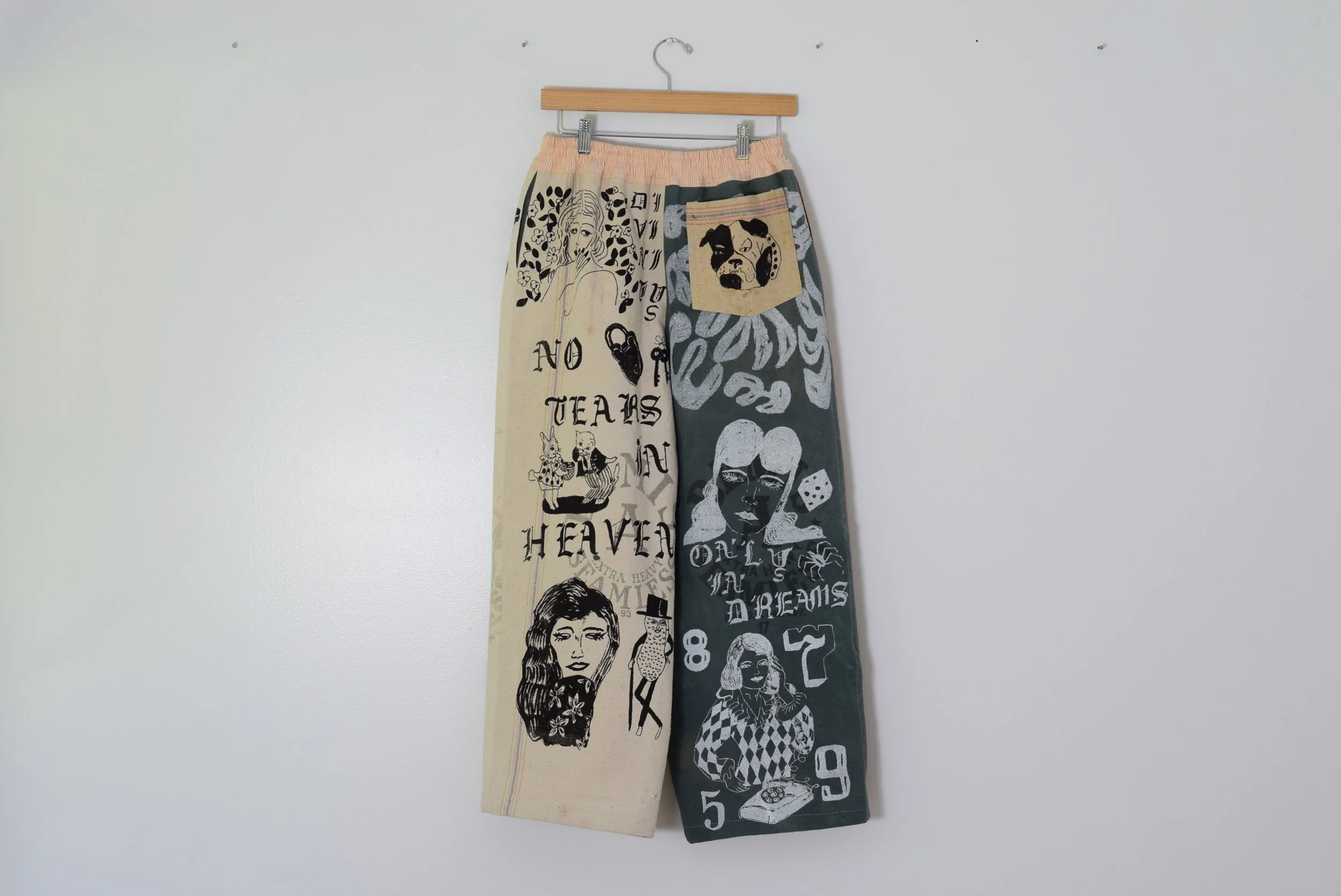 "in the realm of the unreal" Cotton Feedsack Pants size XS