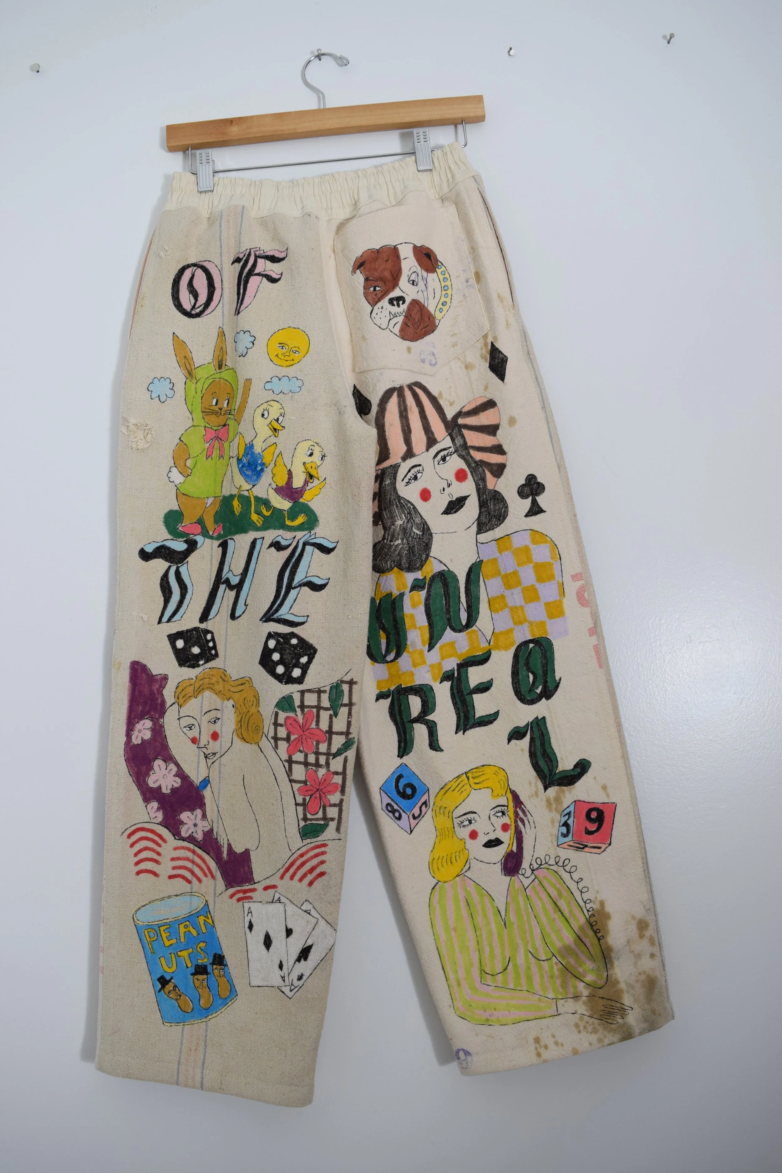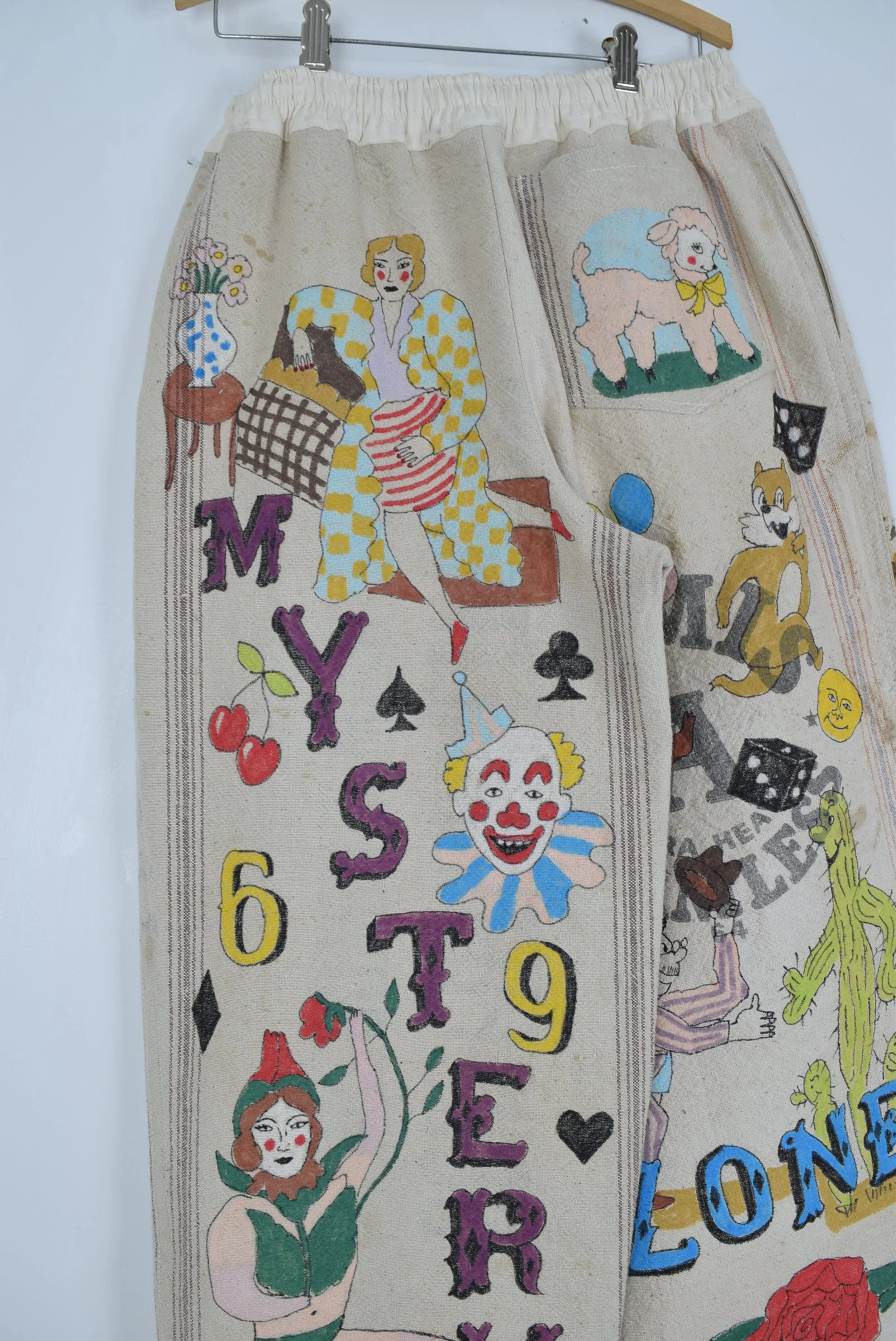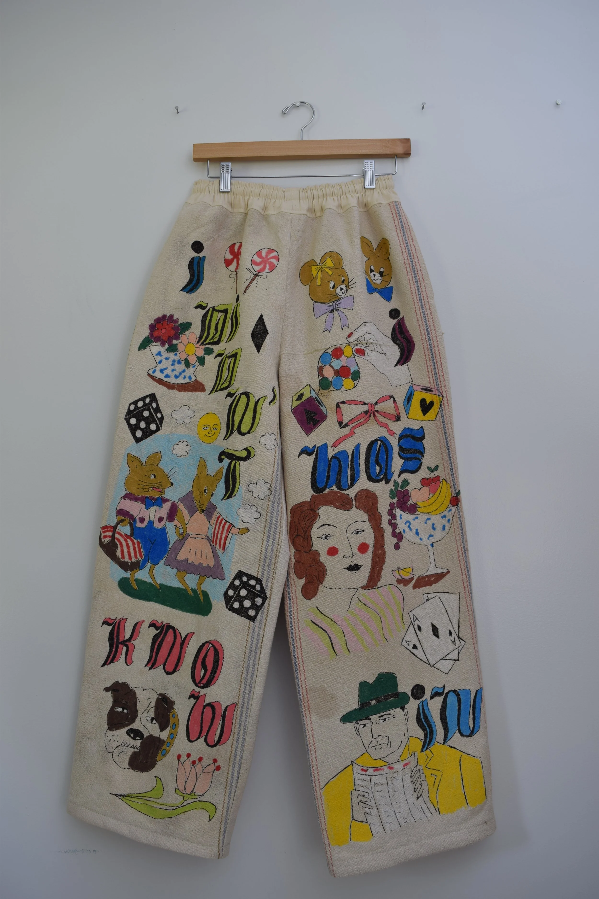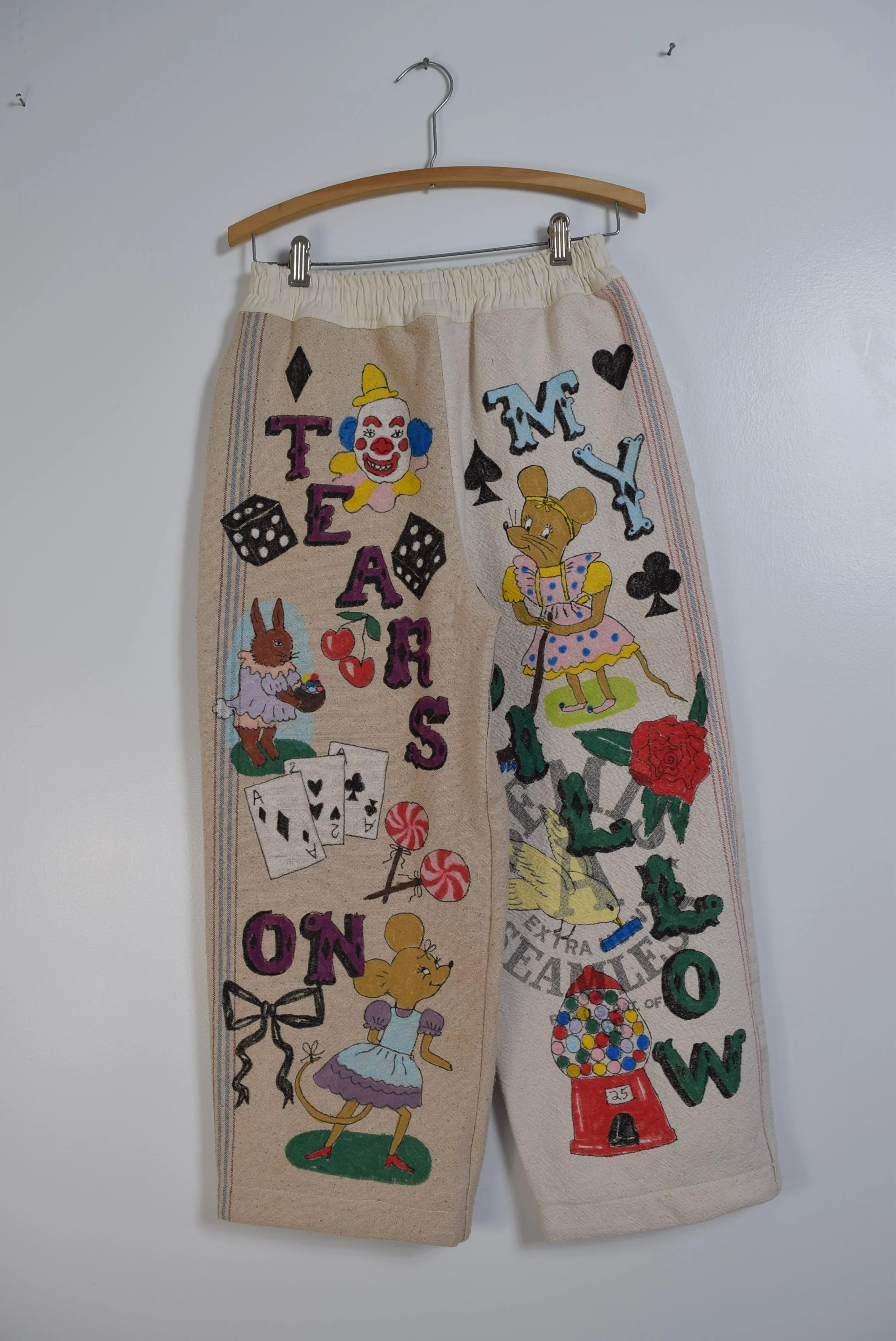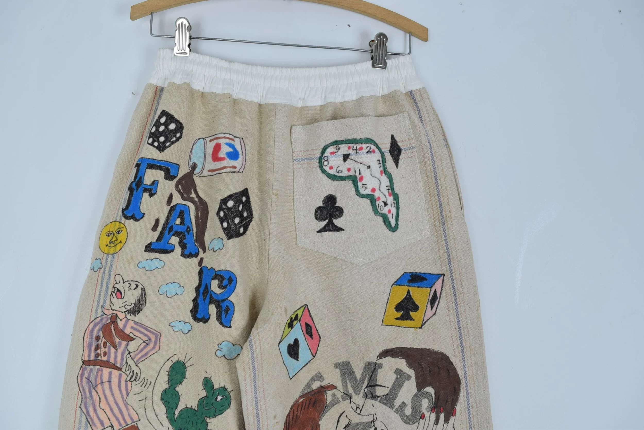 "in the realm of the unreal" Cotton Feedsack Pants size XS