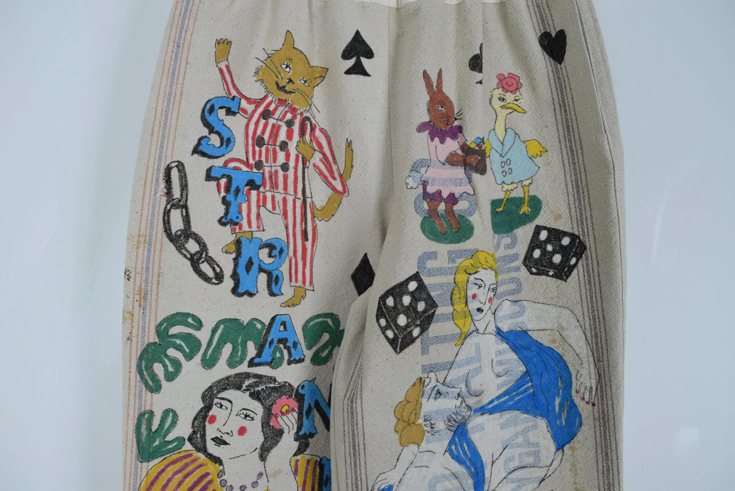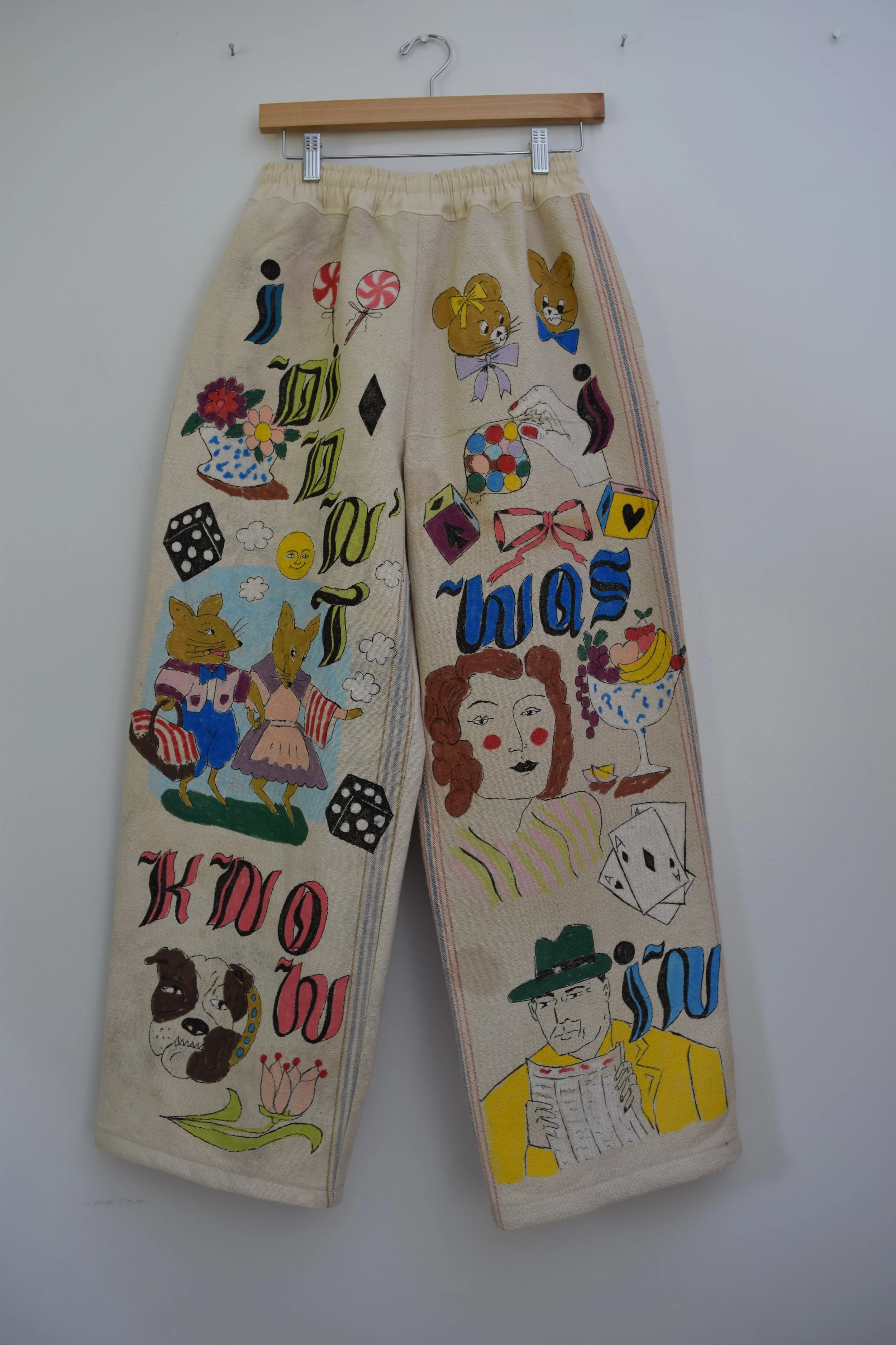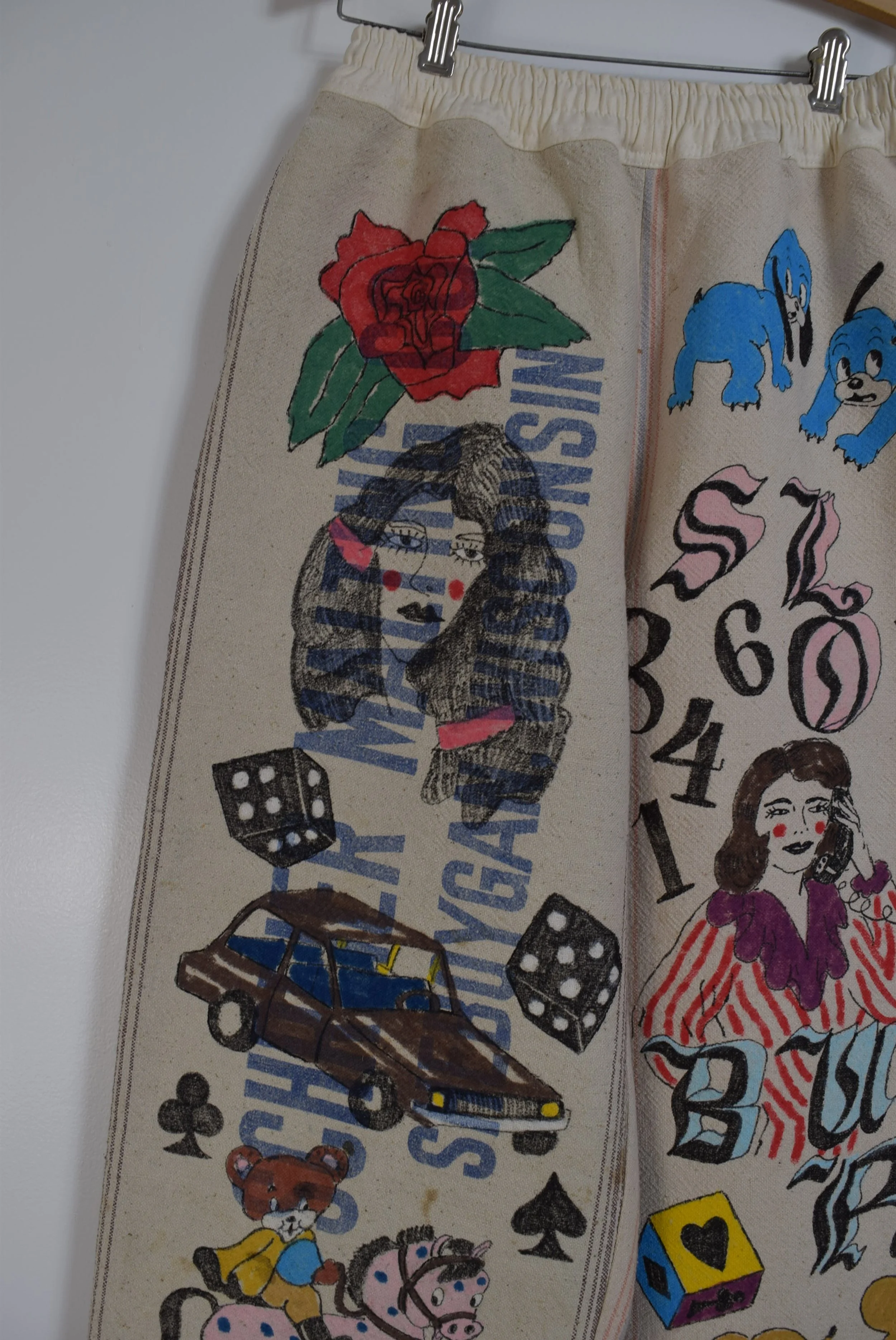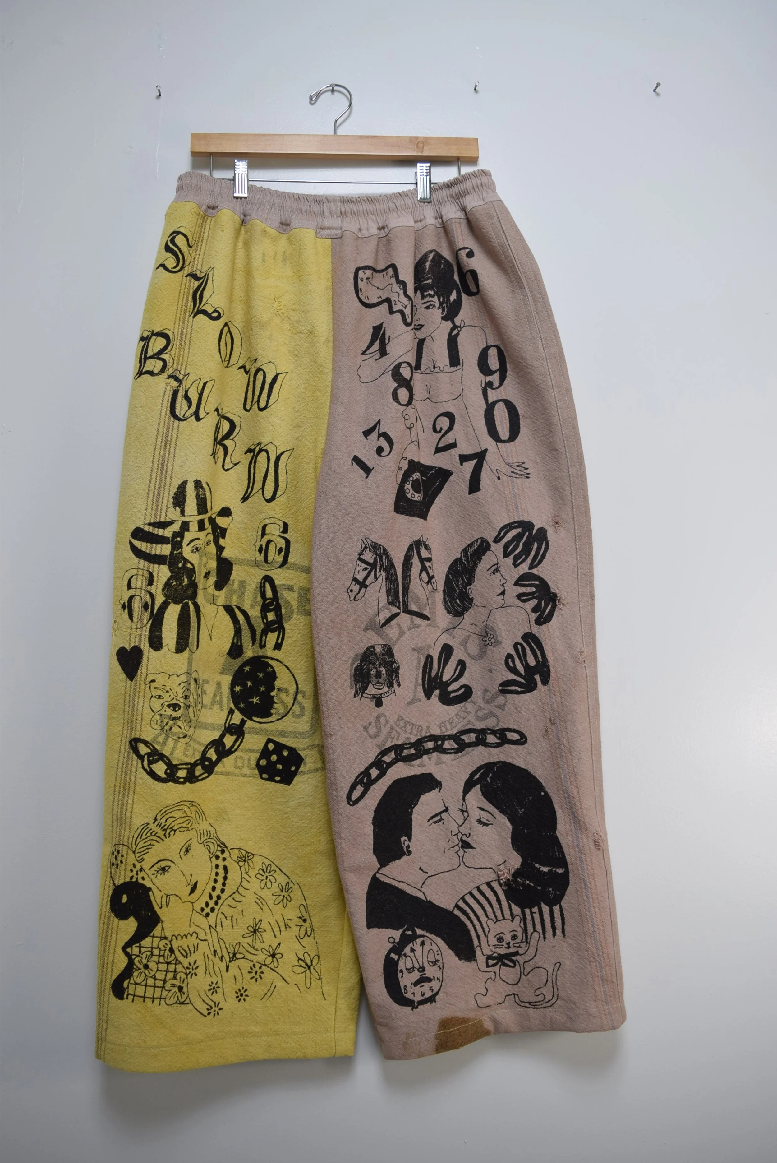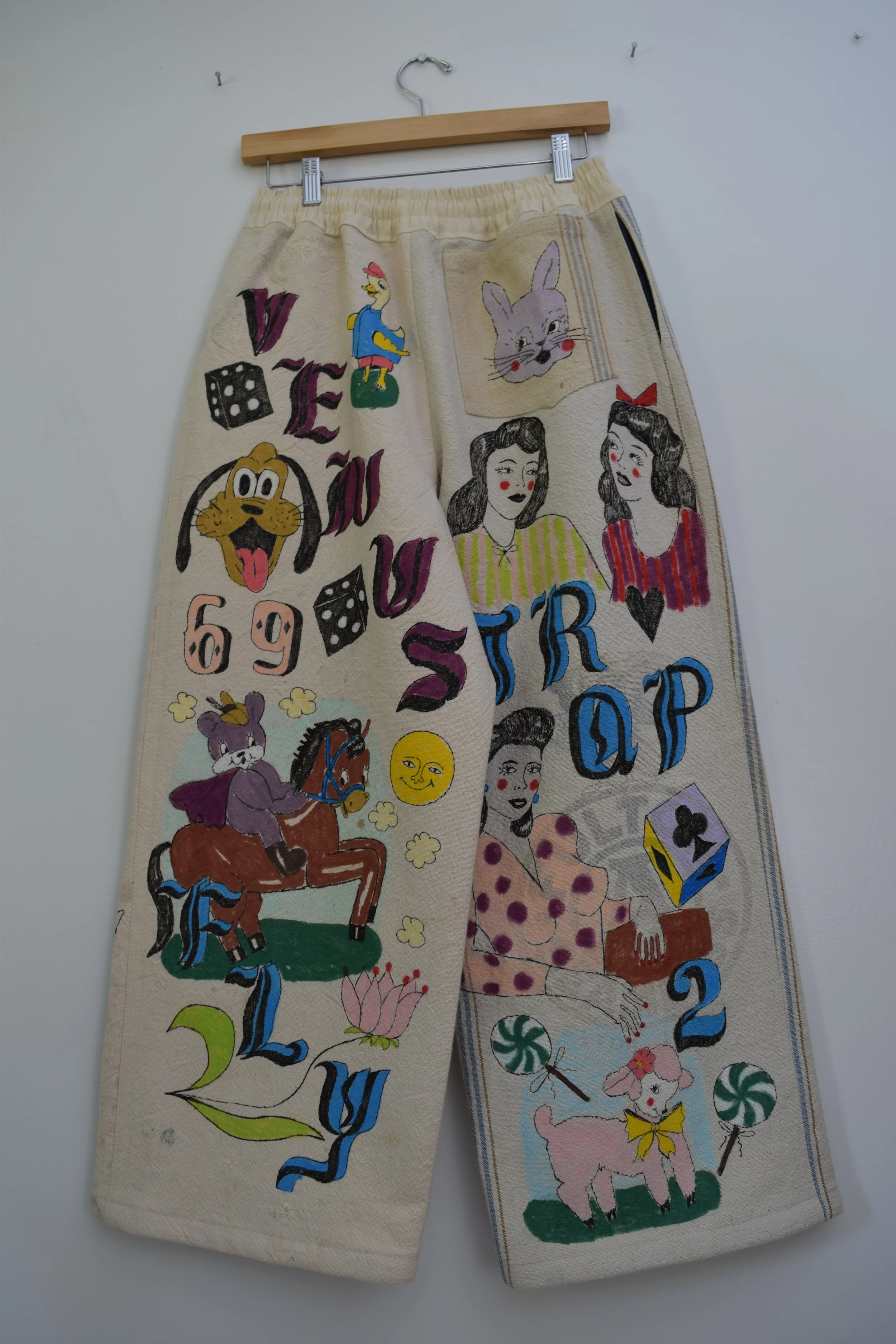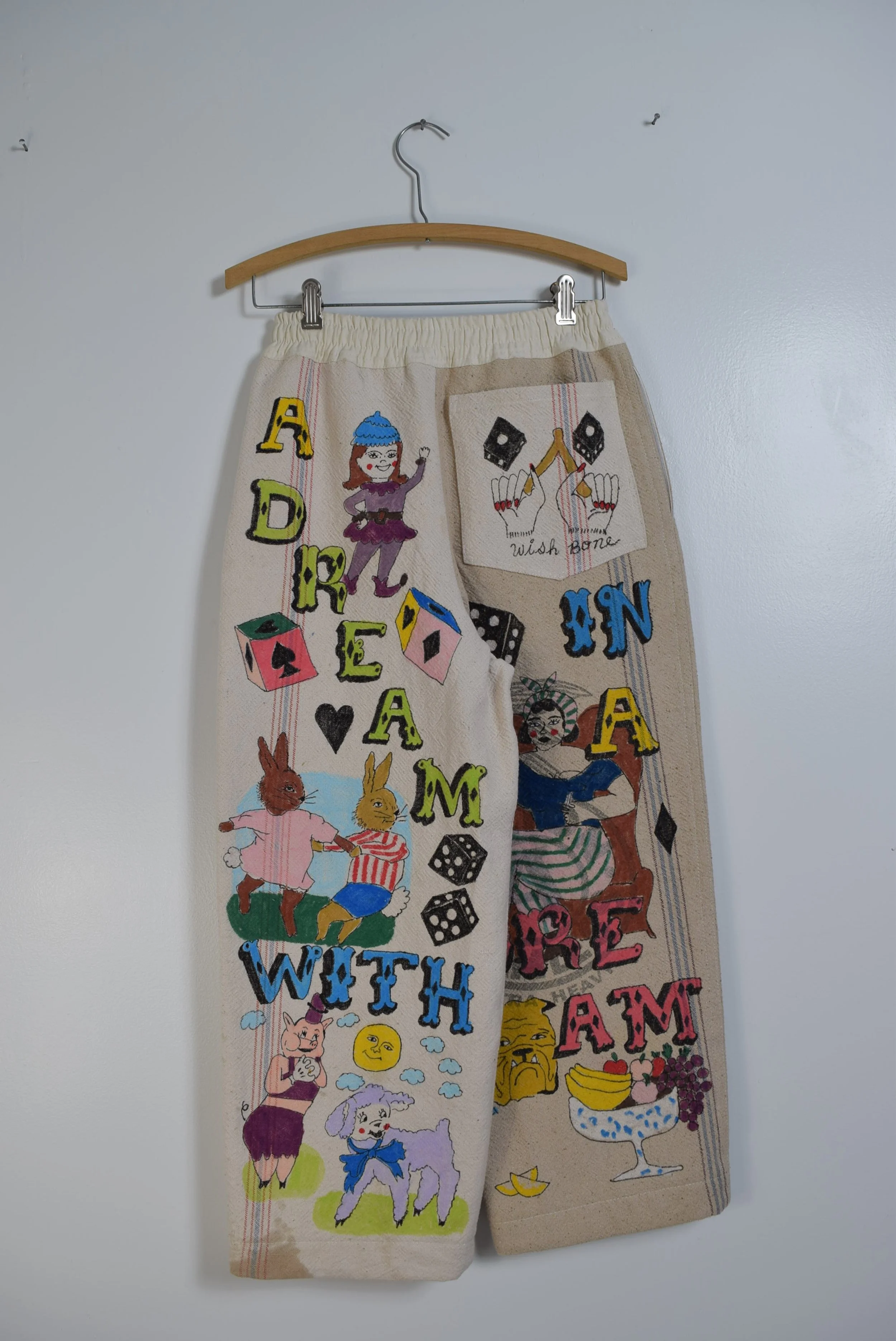 "in the realm of the unreal" Cotton Feedsack Pants size XS