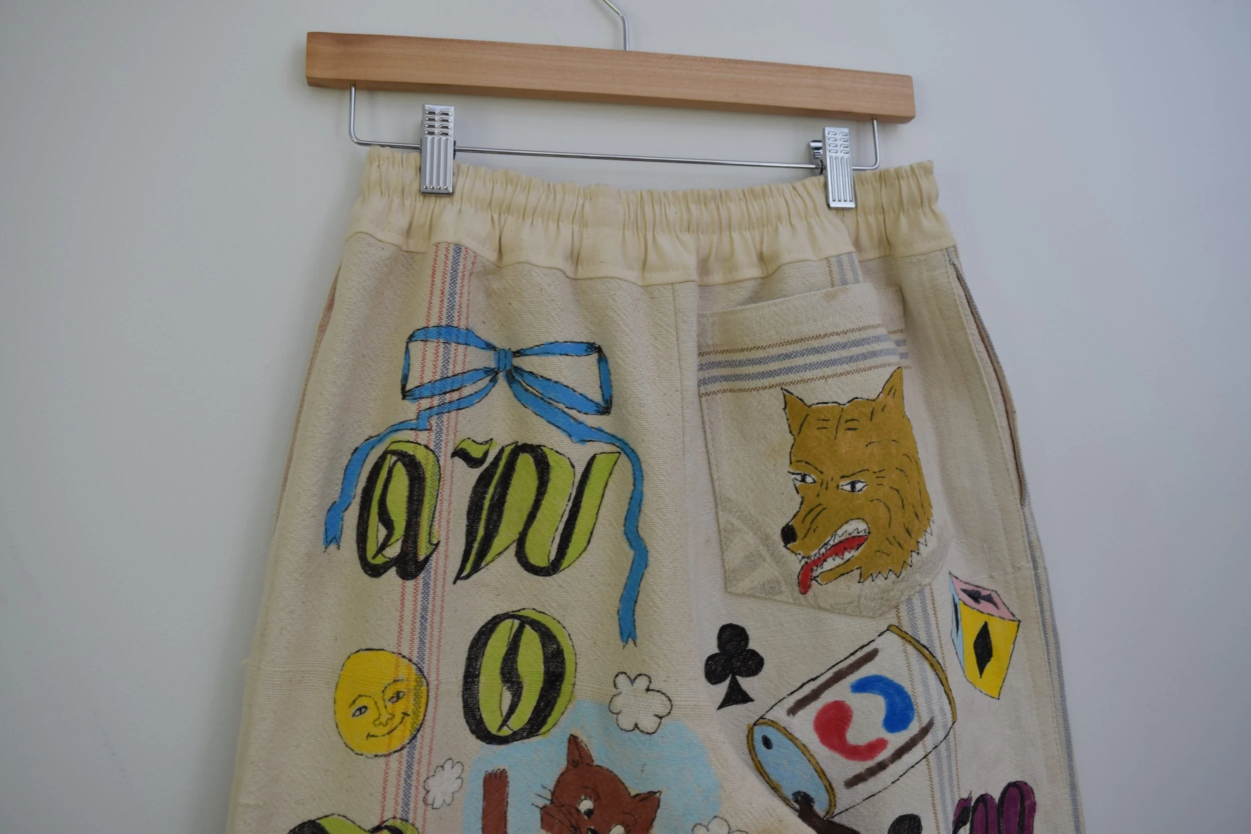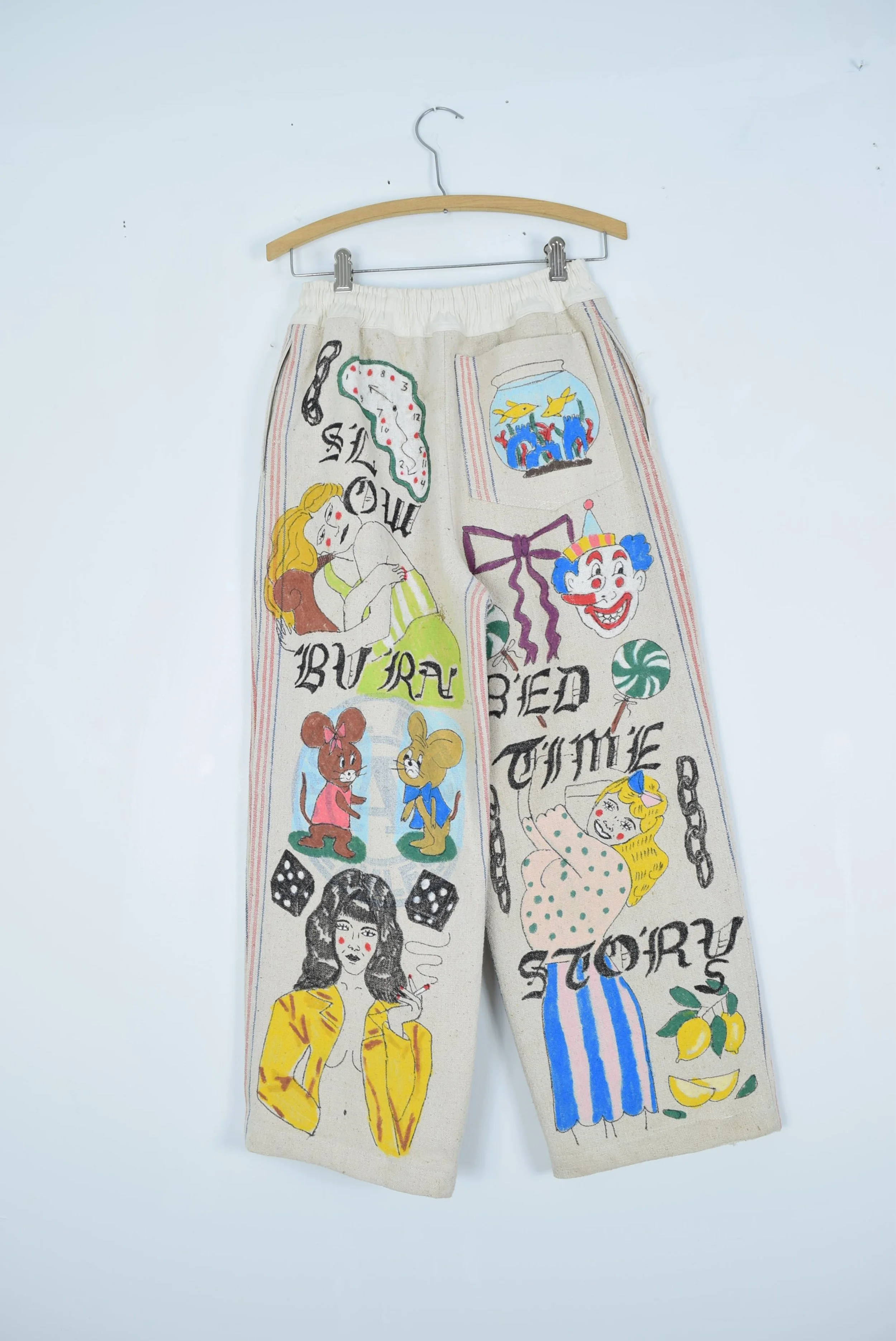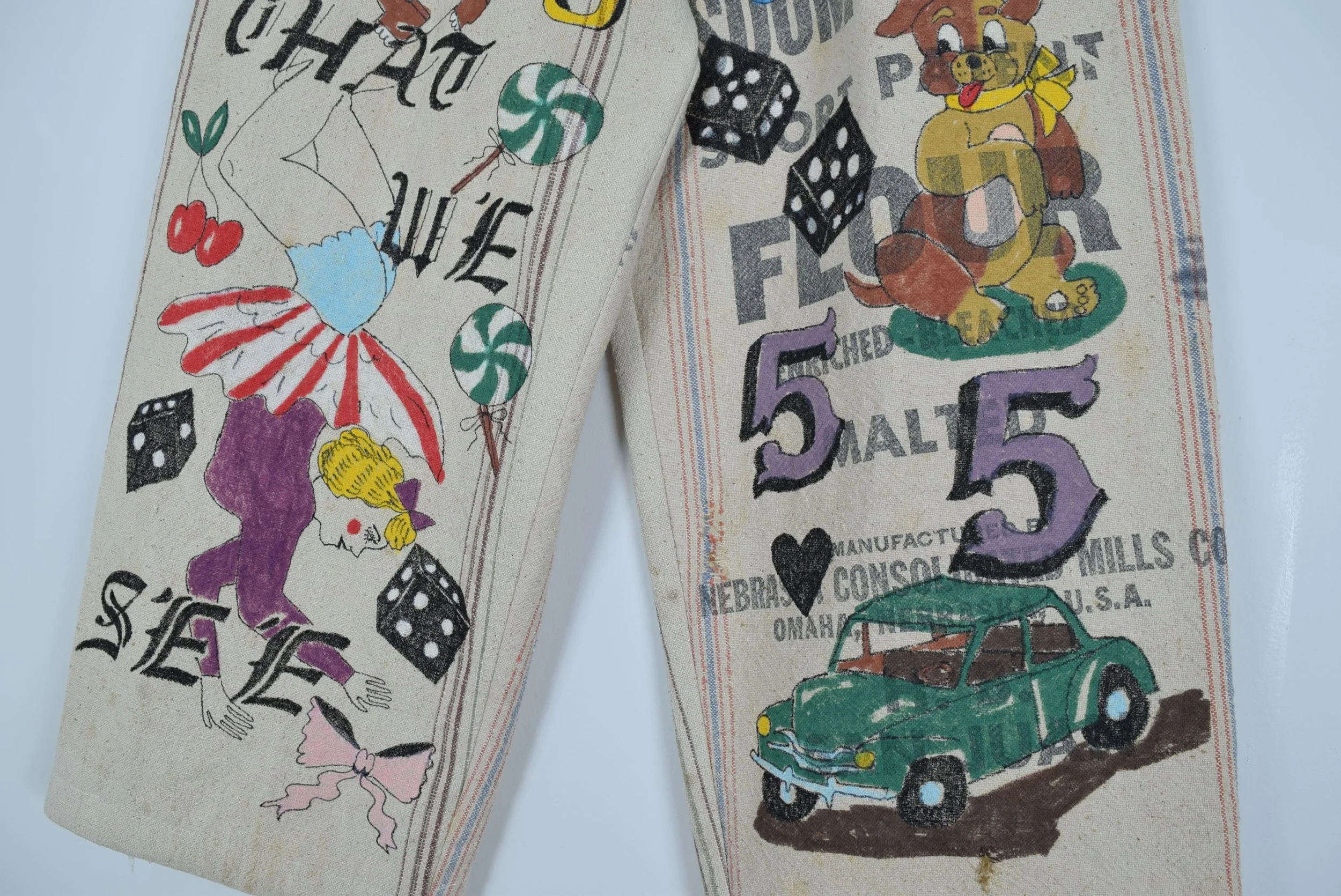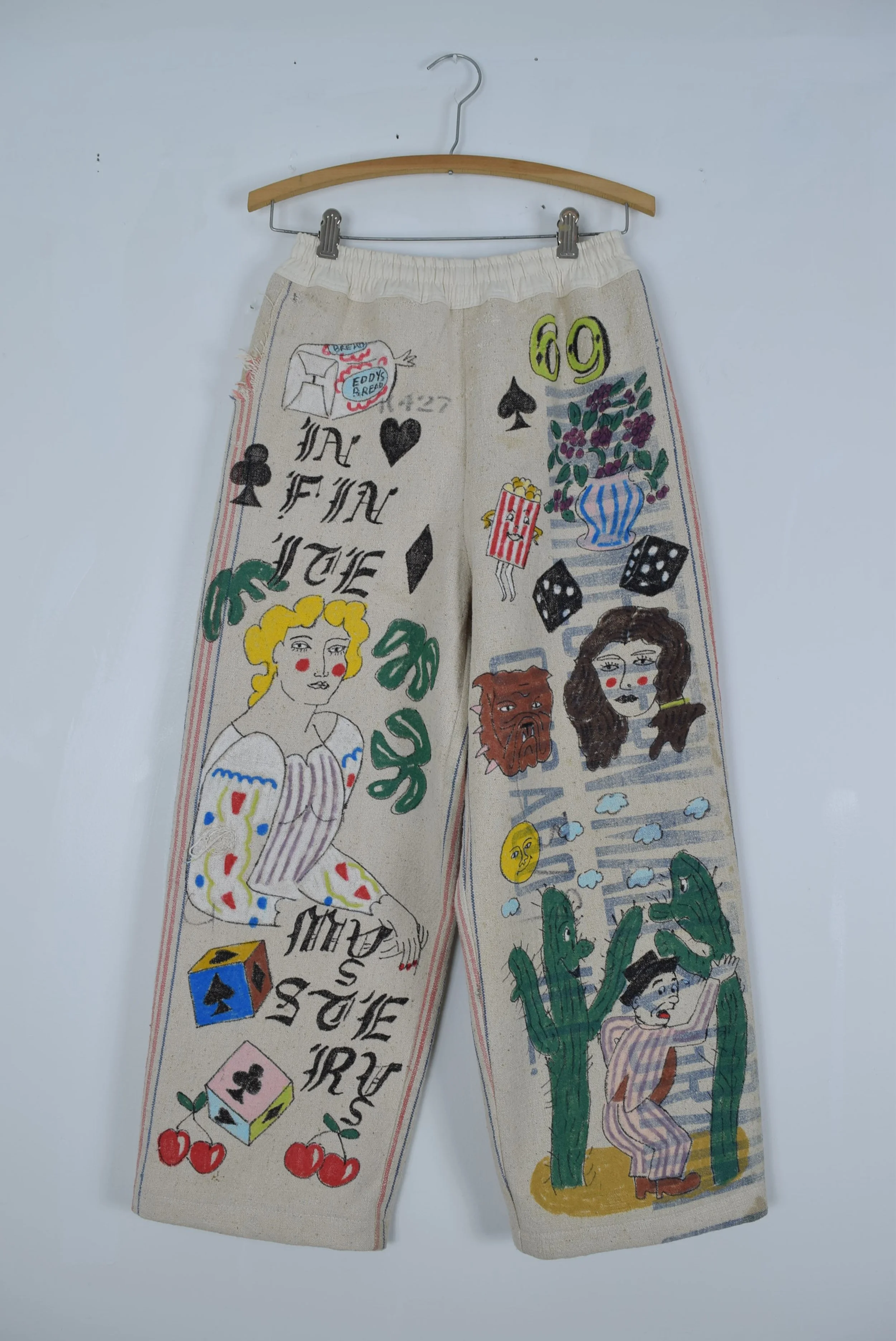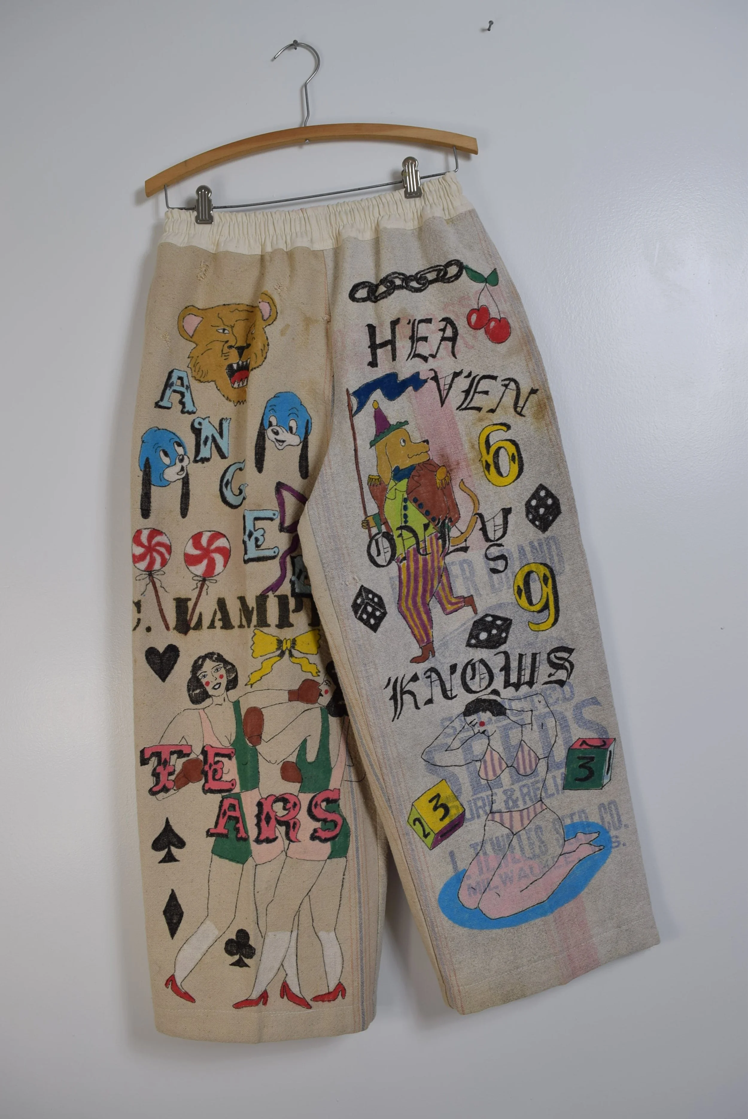 "in the realm of the unreal" Cotton Feedsack Pants size XS