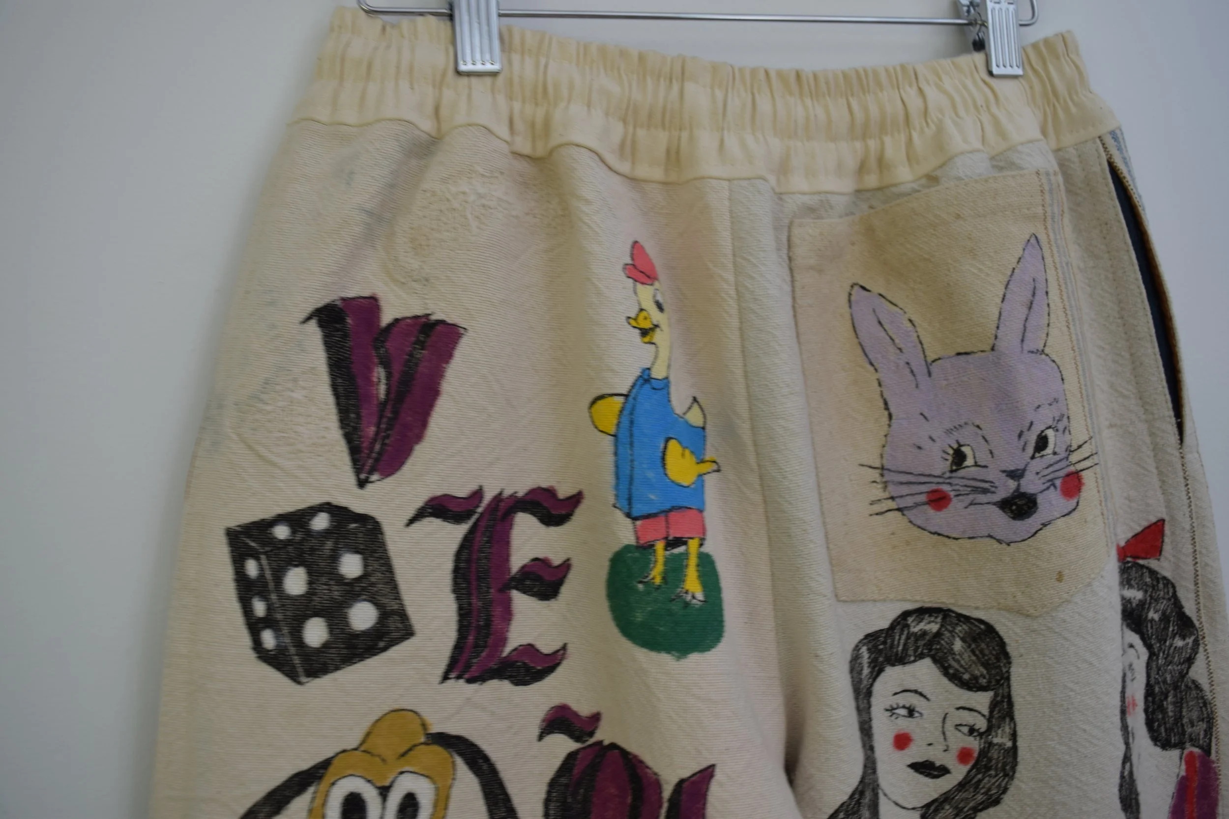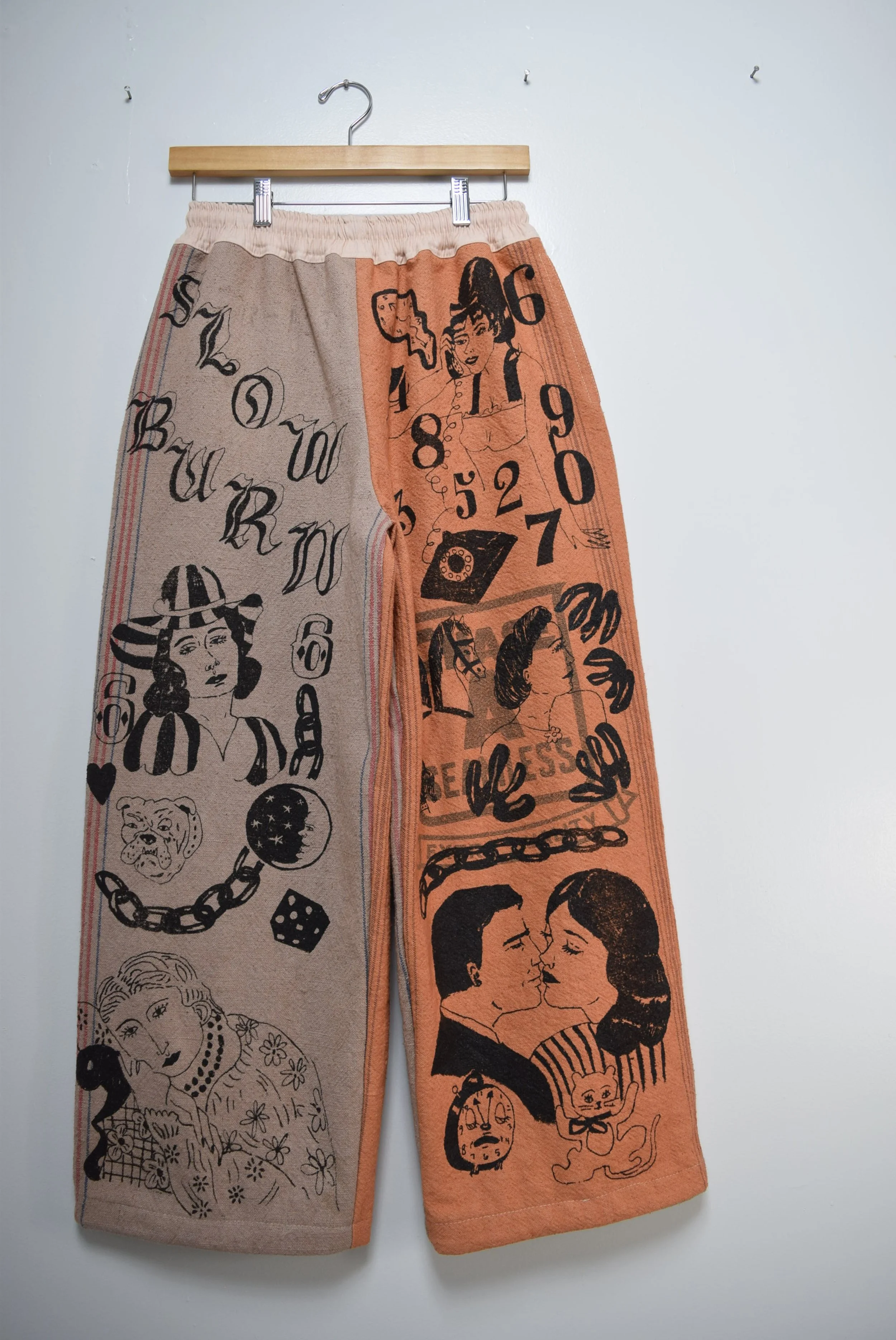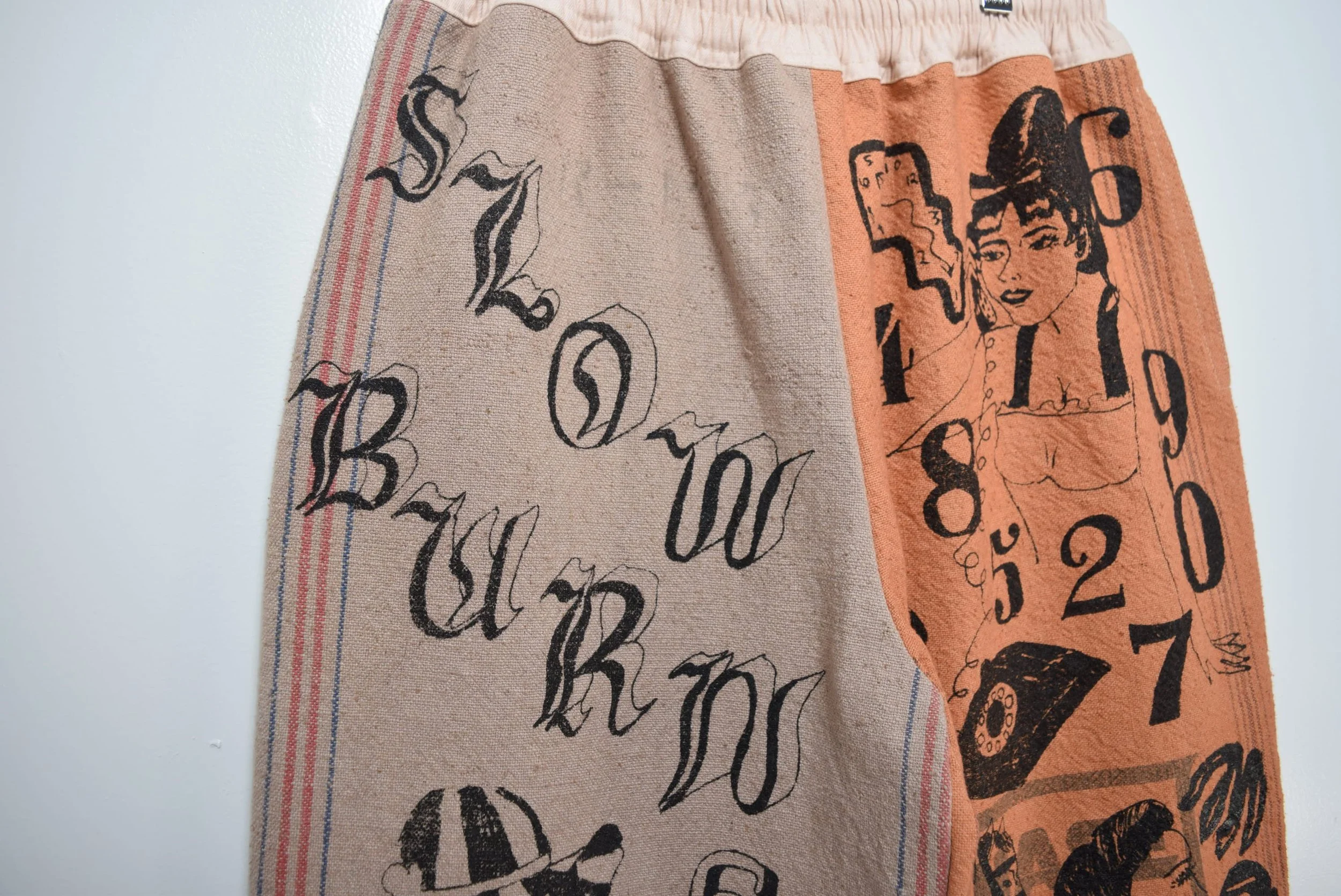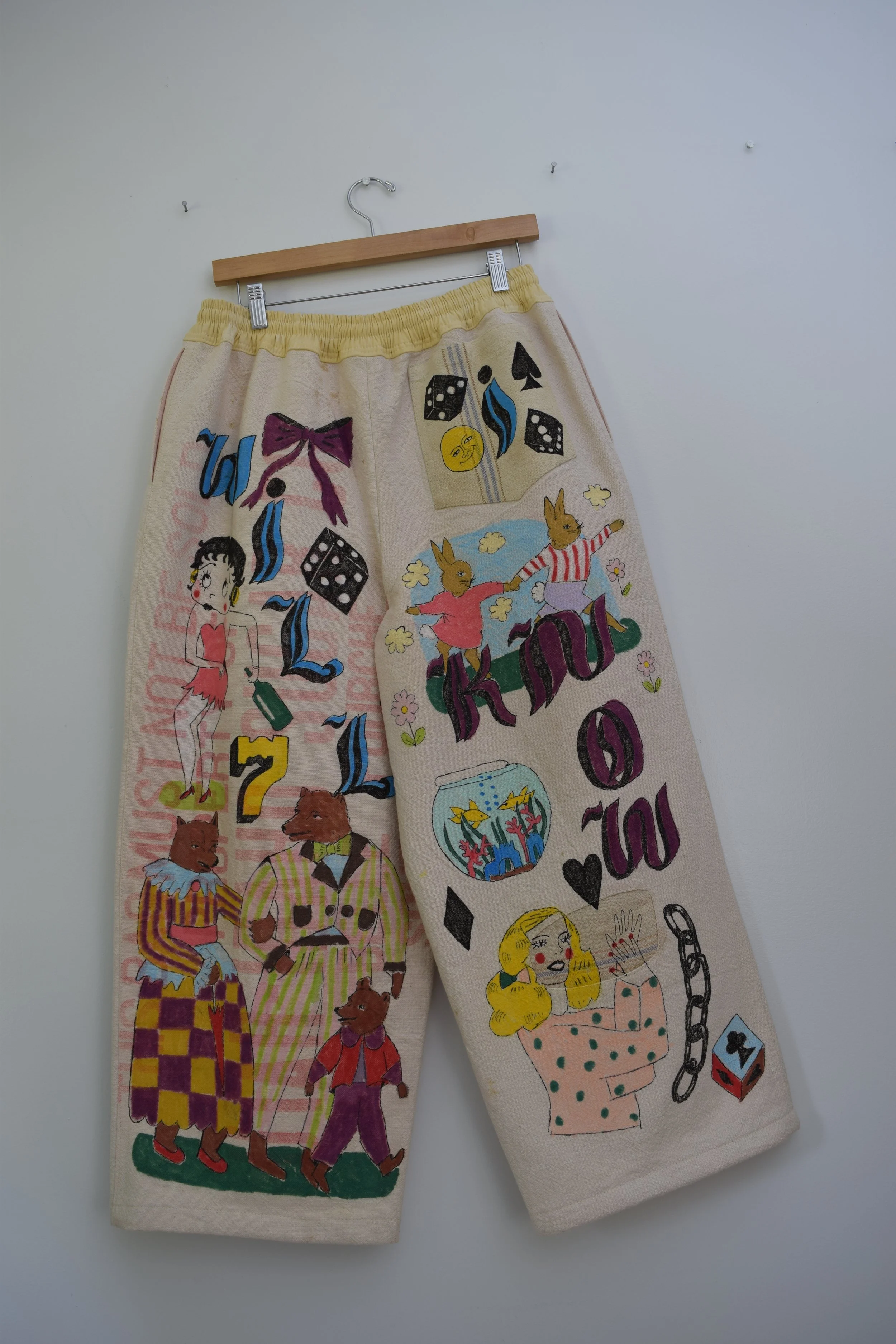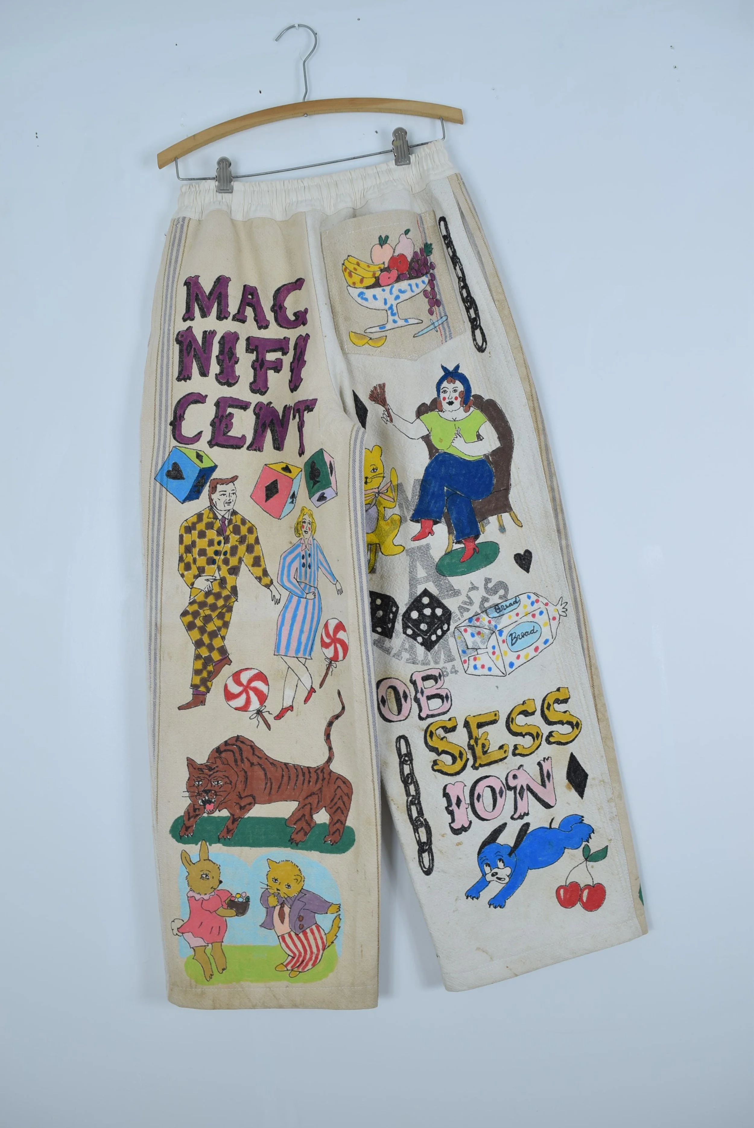 "in the realm of the unreal" Cotton Feedsack Pants size XS