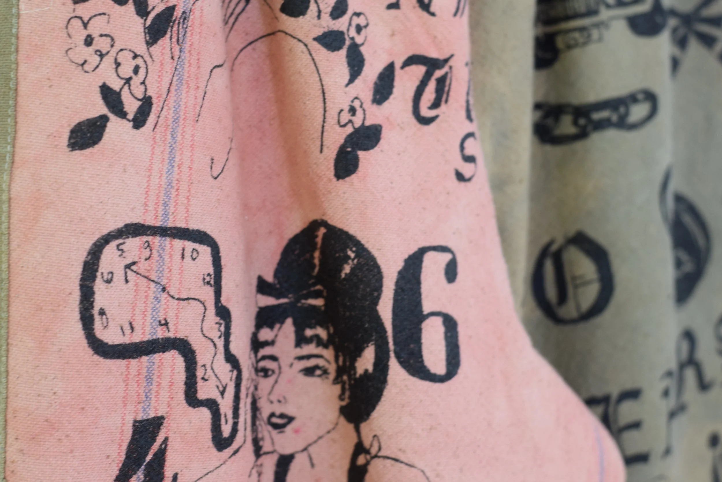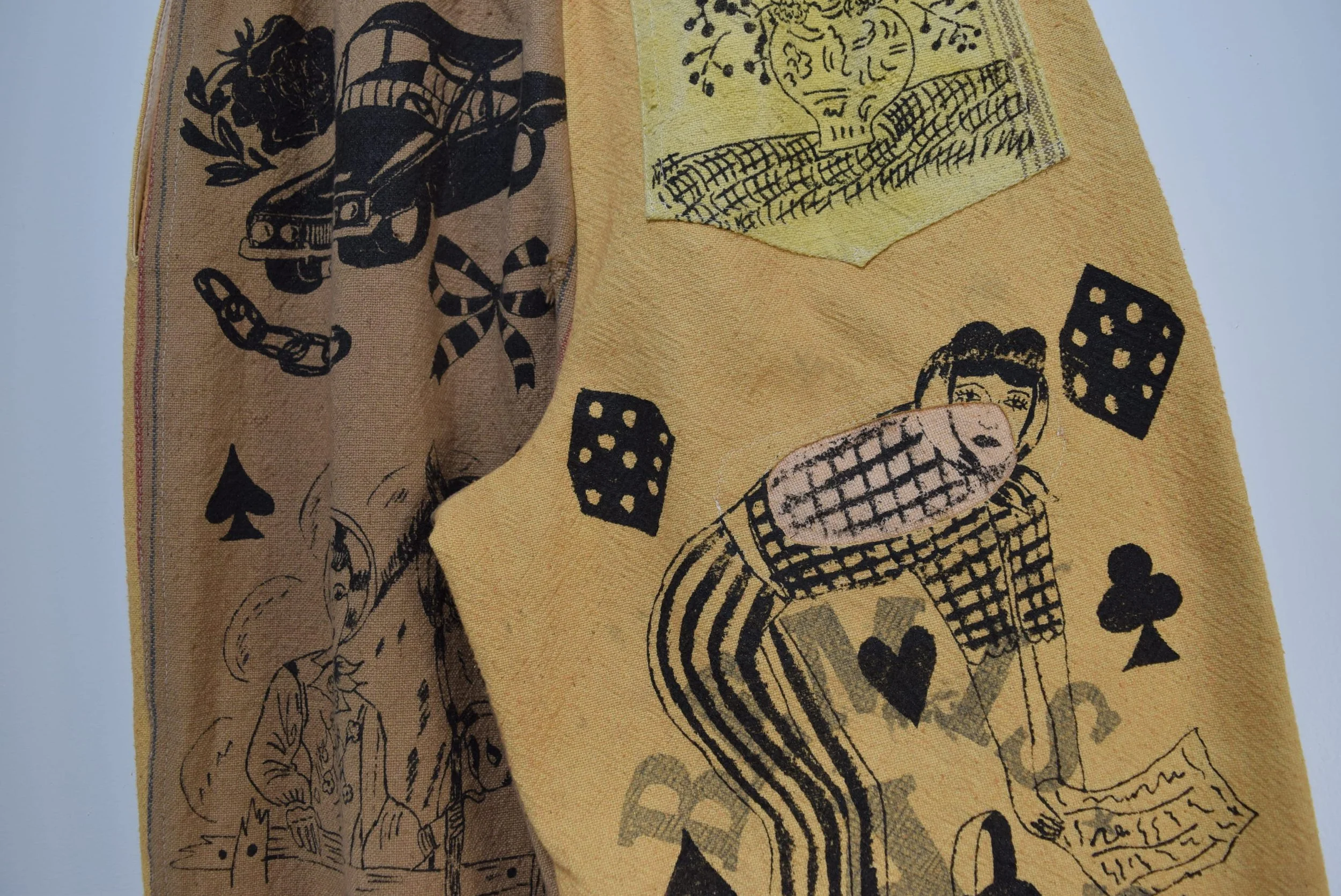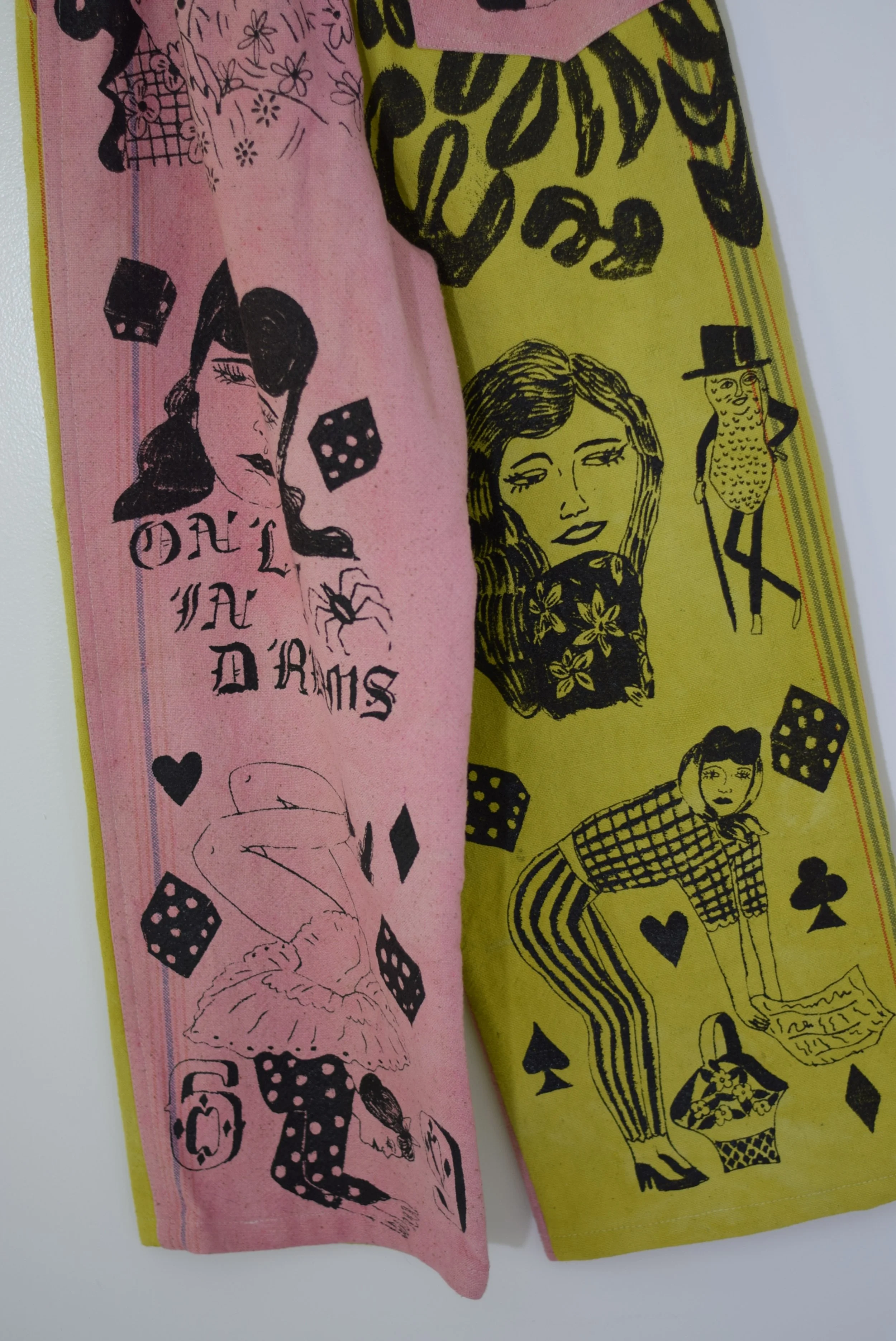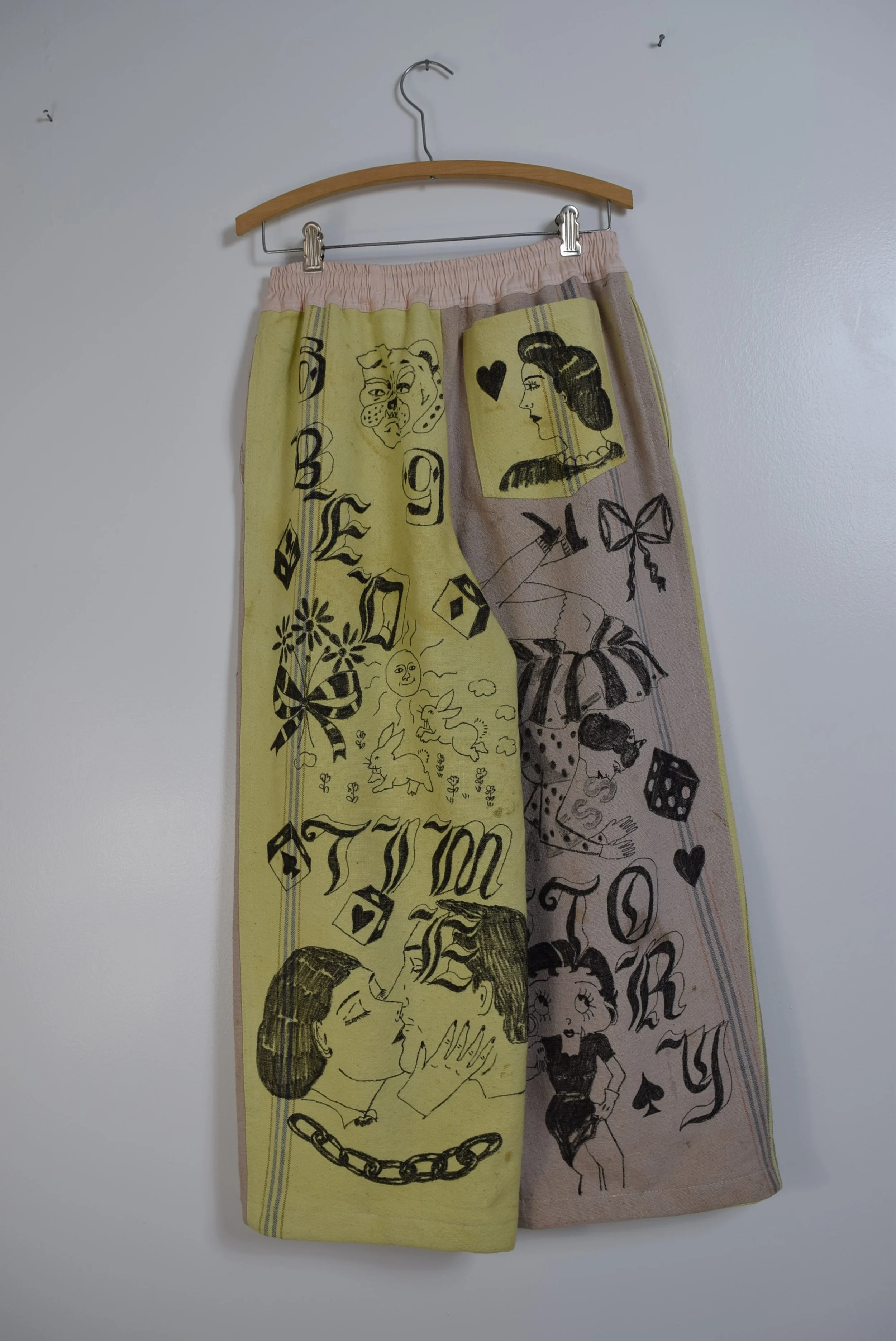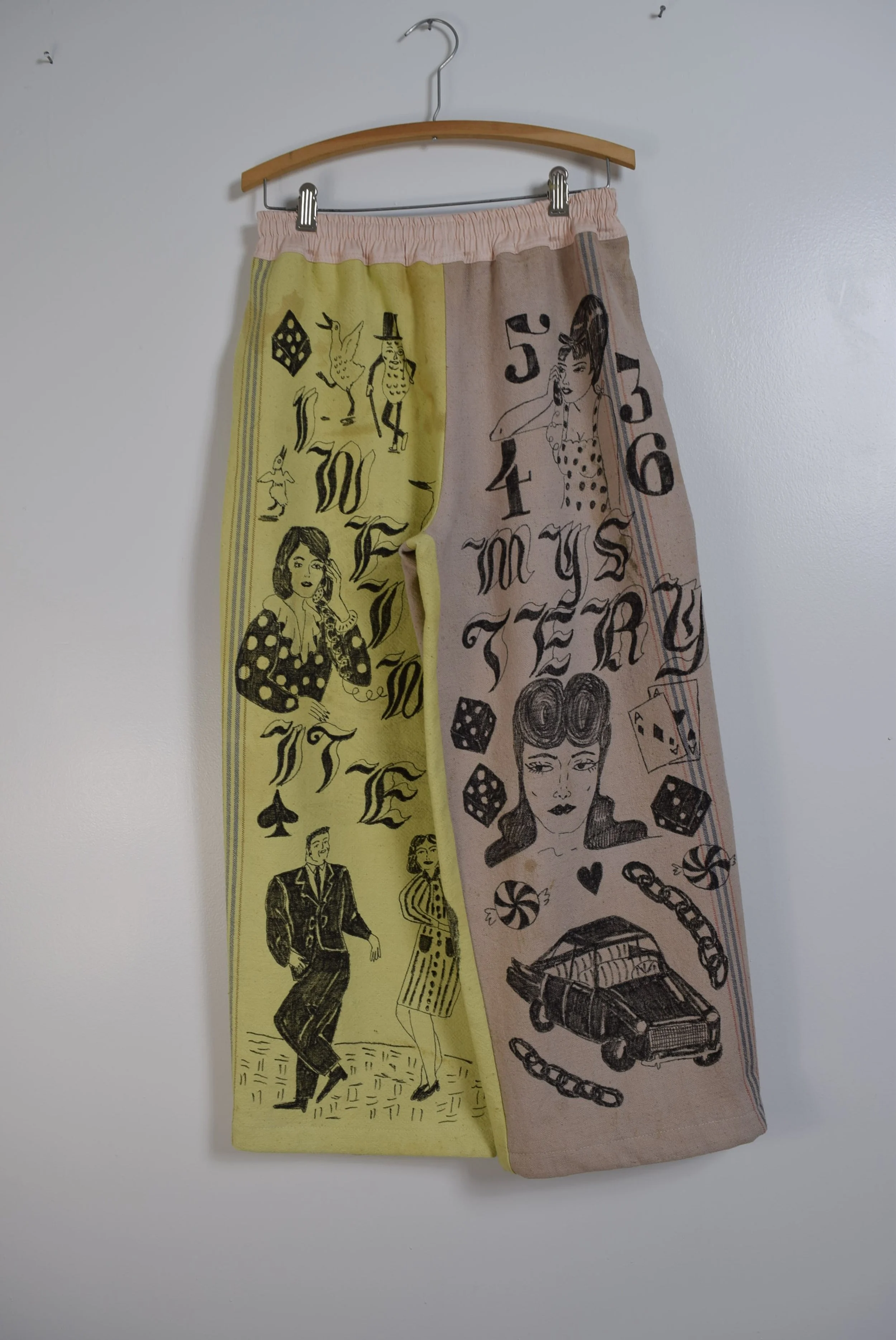 "in the realm of the unreal" Cotton Feedsack Pants size XS