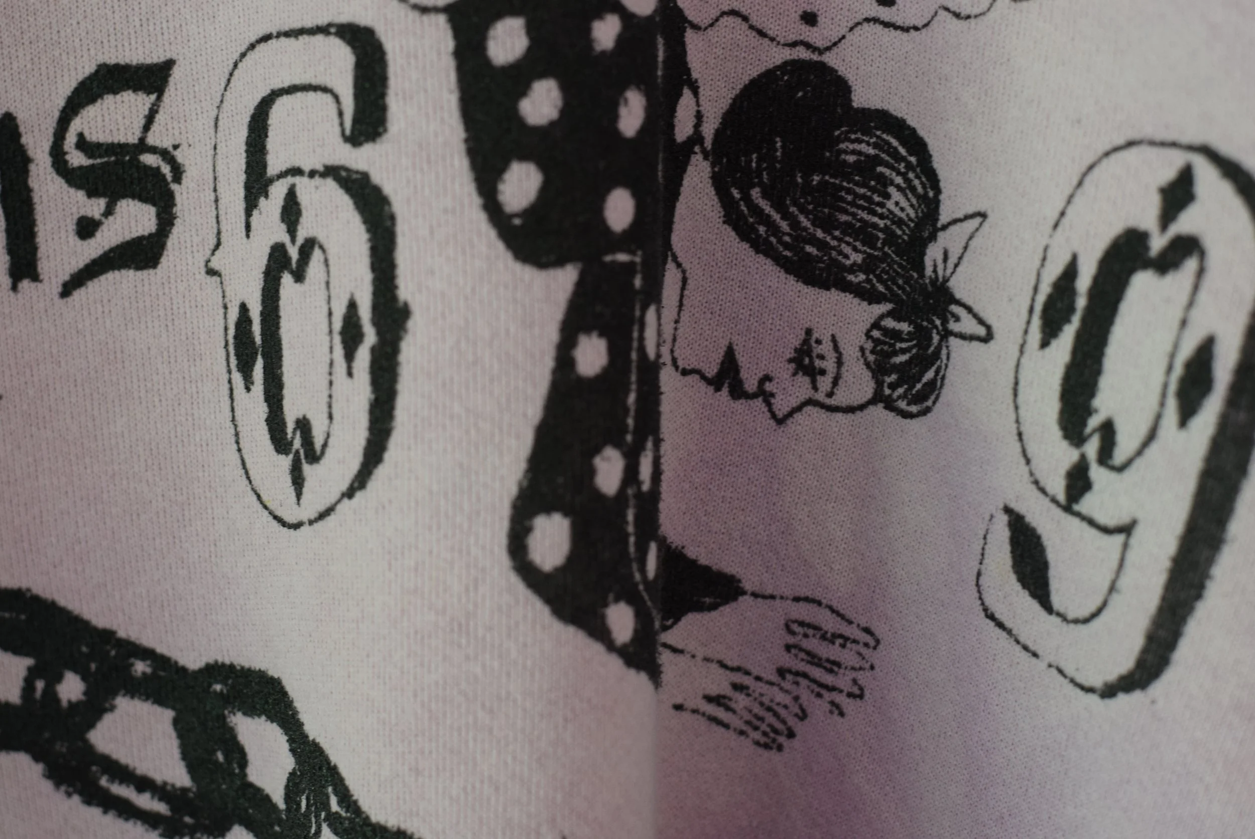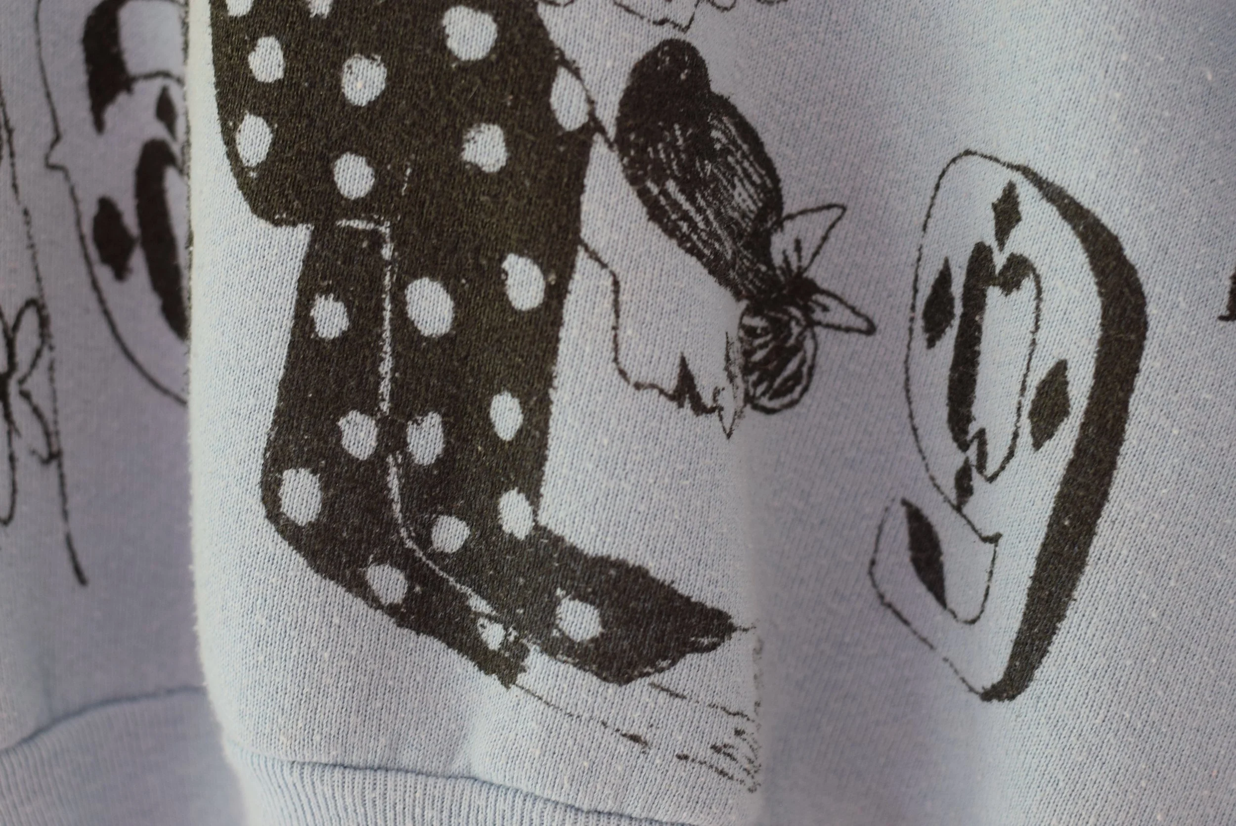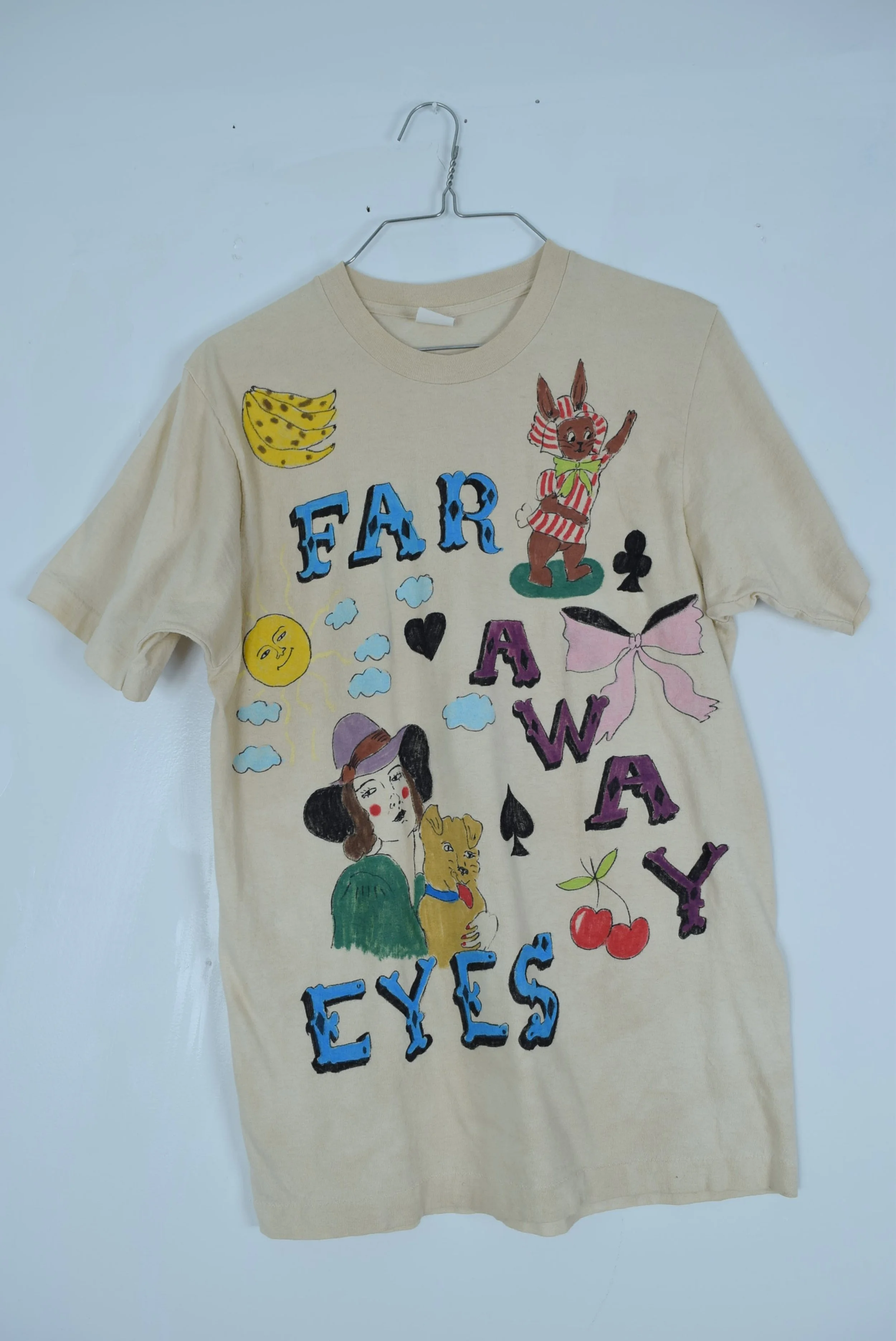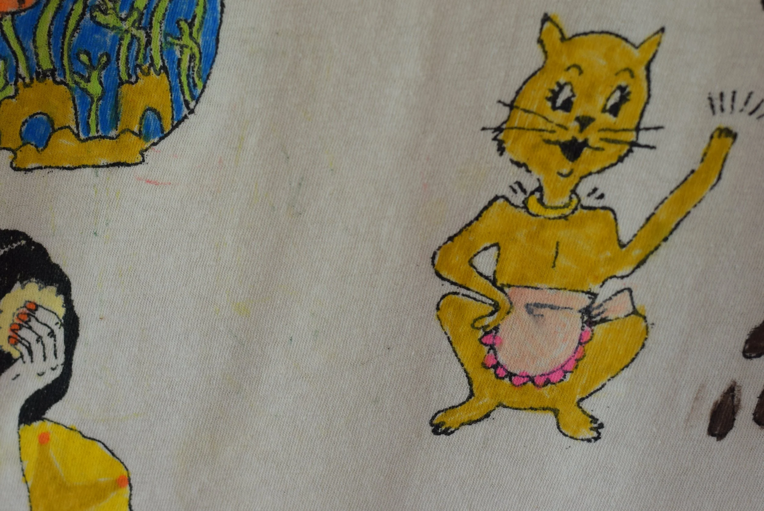 hand drawn + screen printed all over print off white vintage Tee M/L LONG