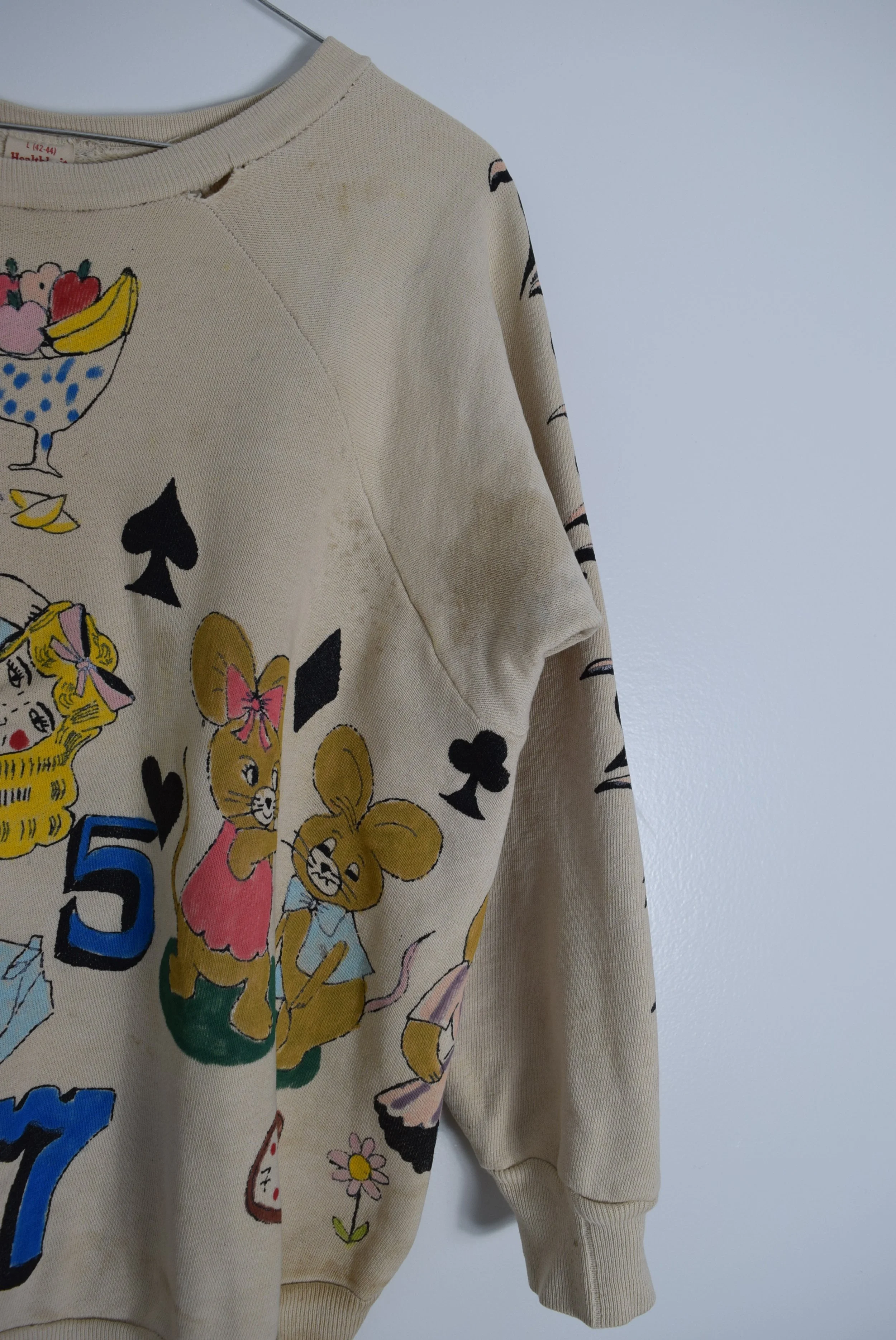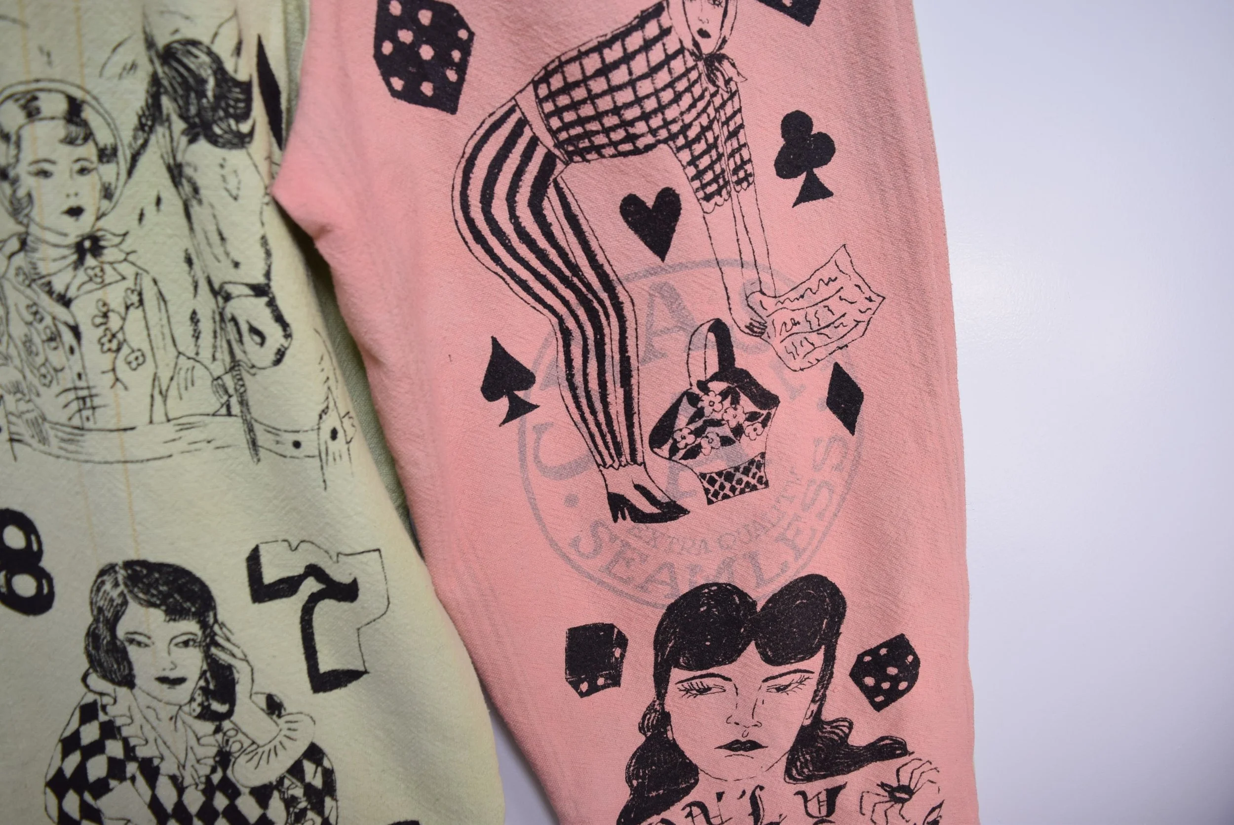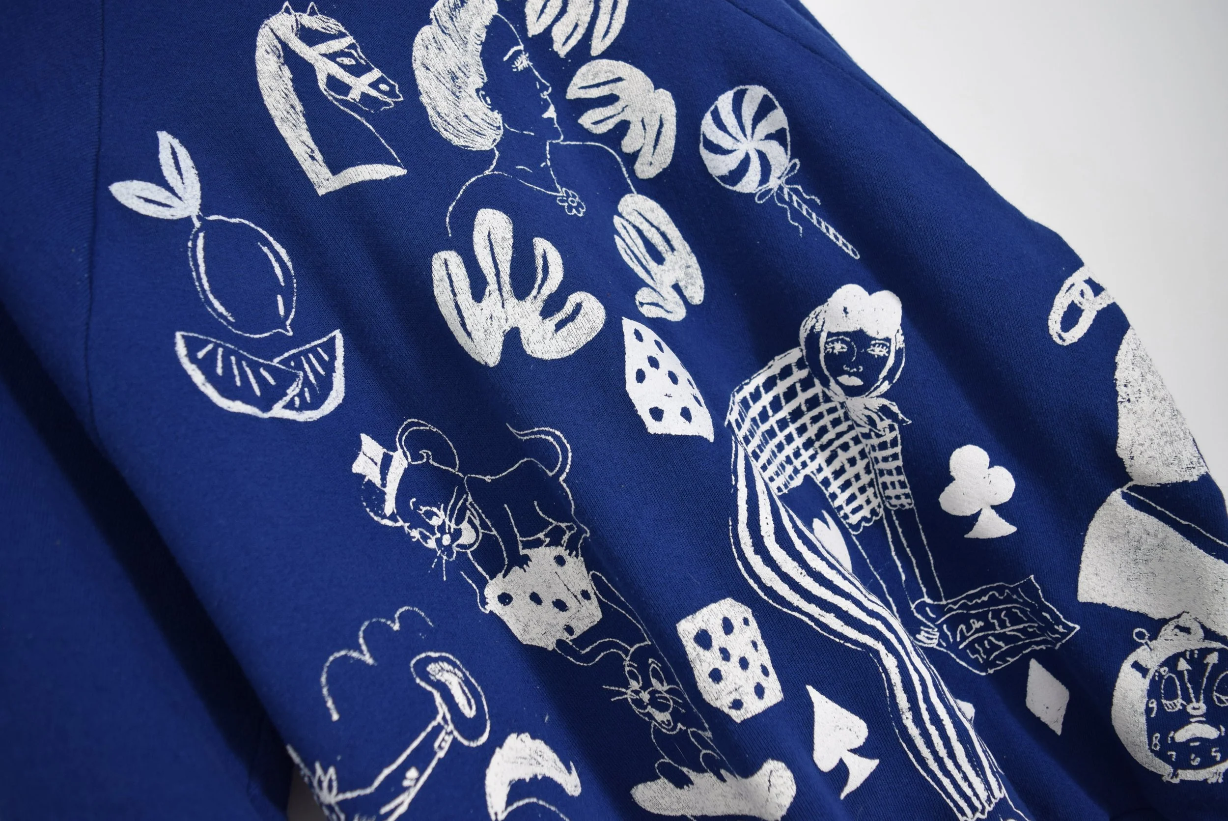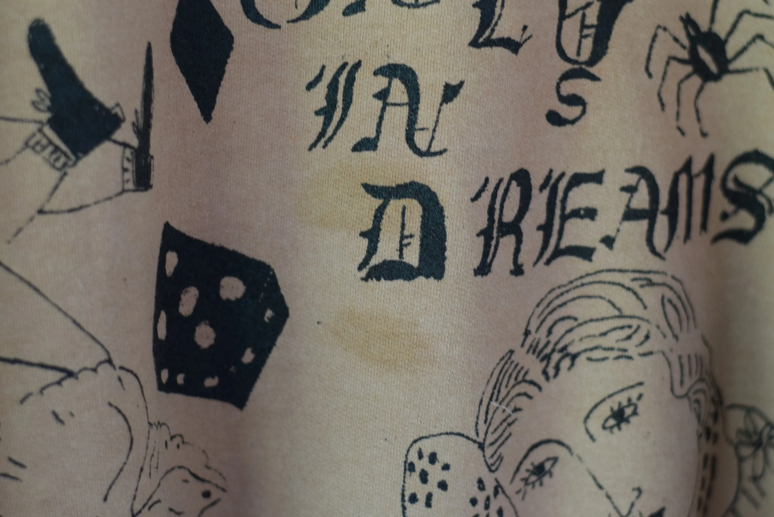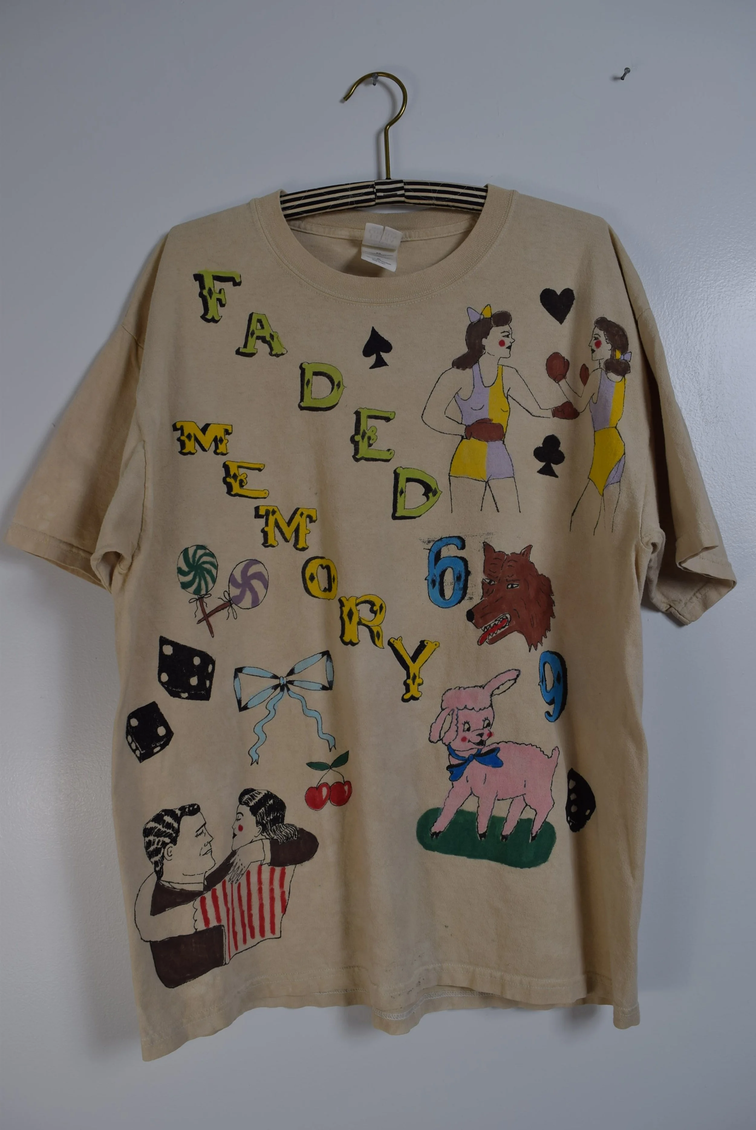 hand drawn + screen printed all over print off white vintage Tee M/L LONG