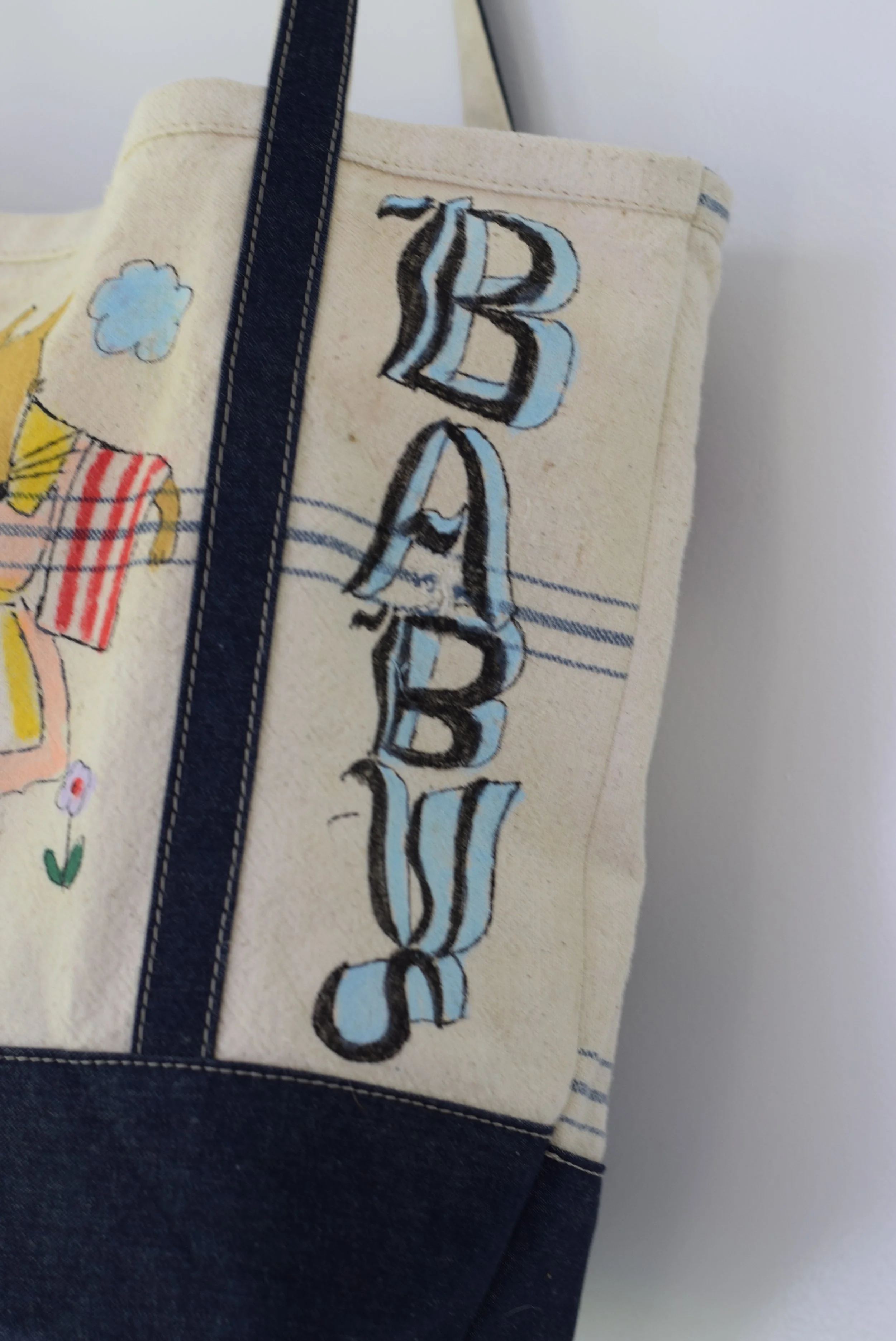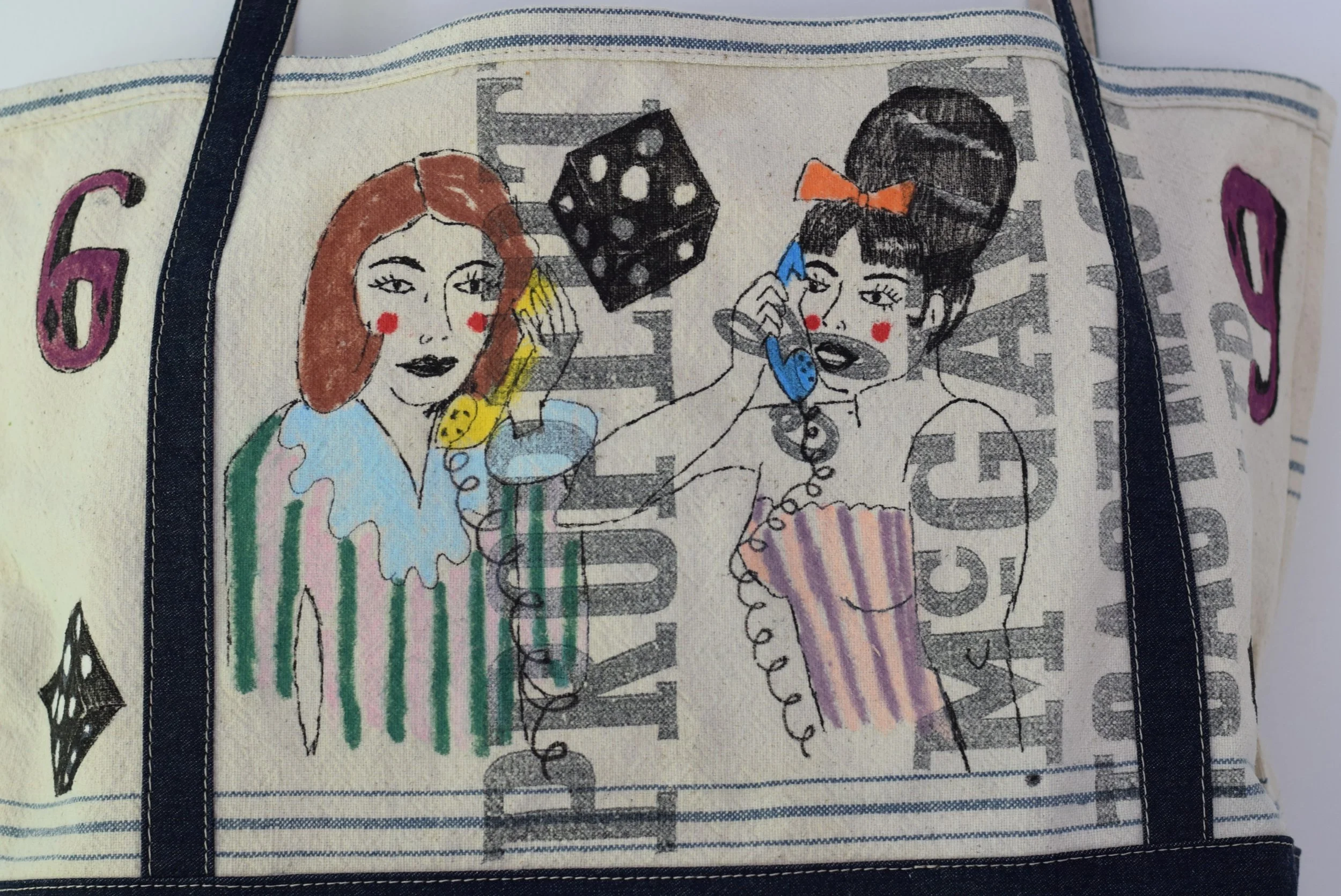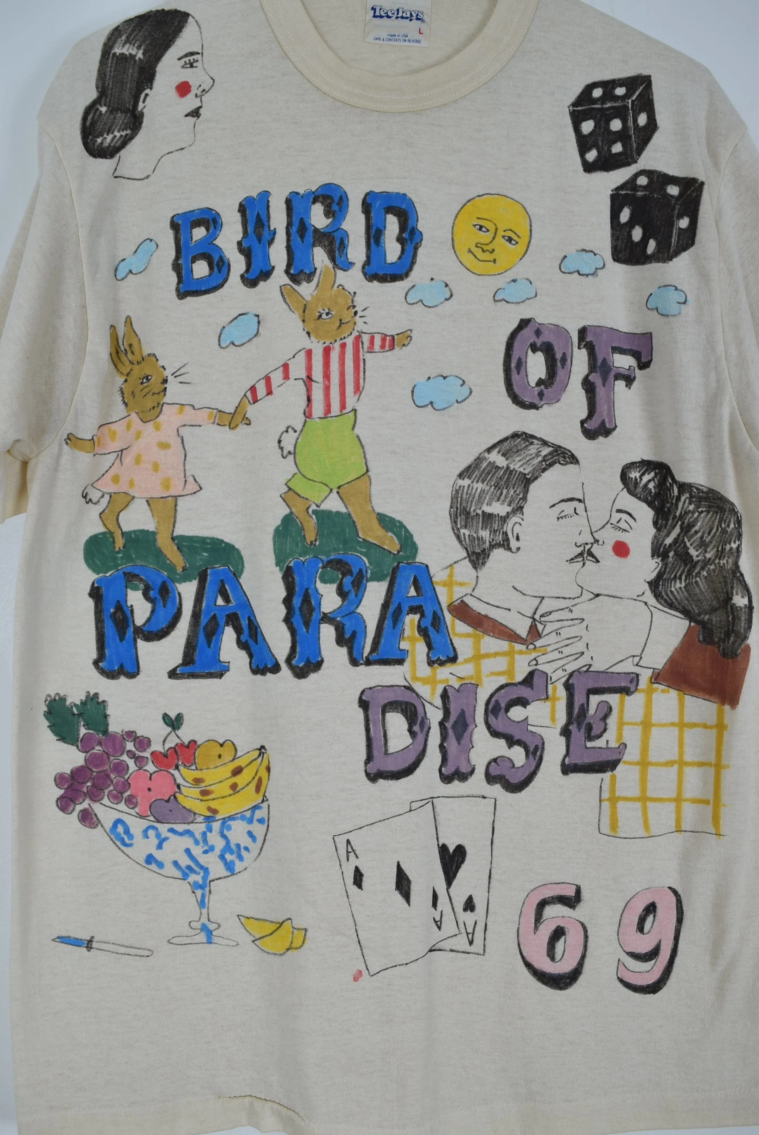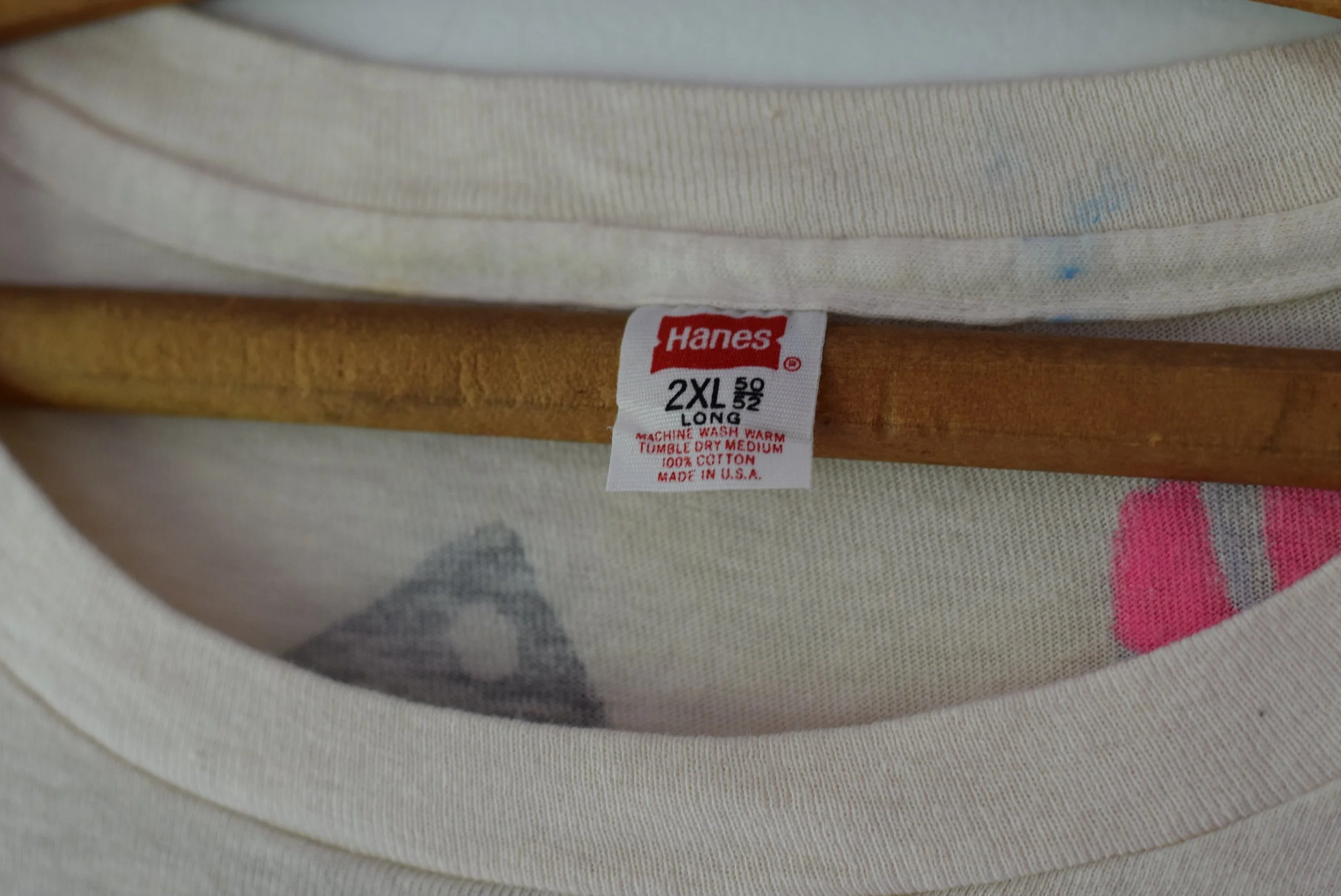 hand drawn + screen printed all over print off white vintage Tee M/L LONG