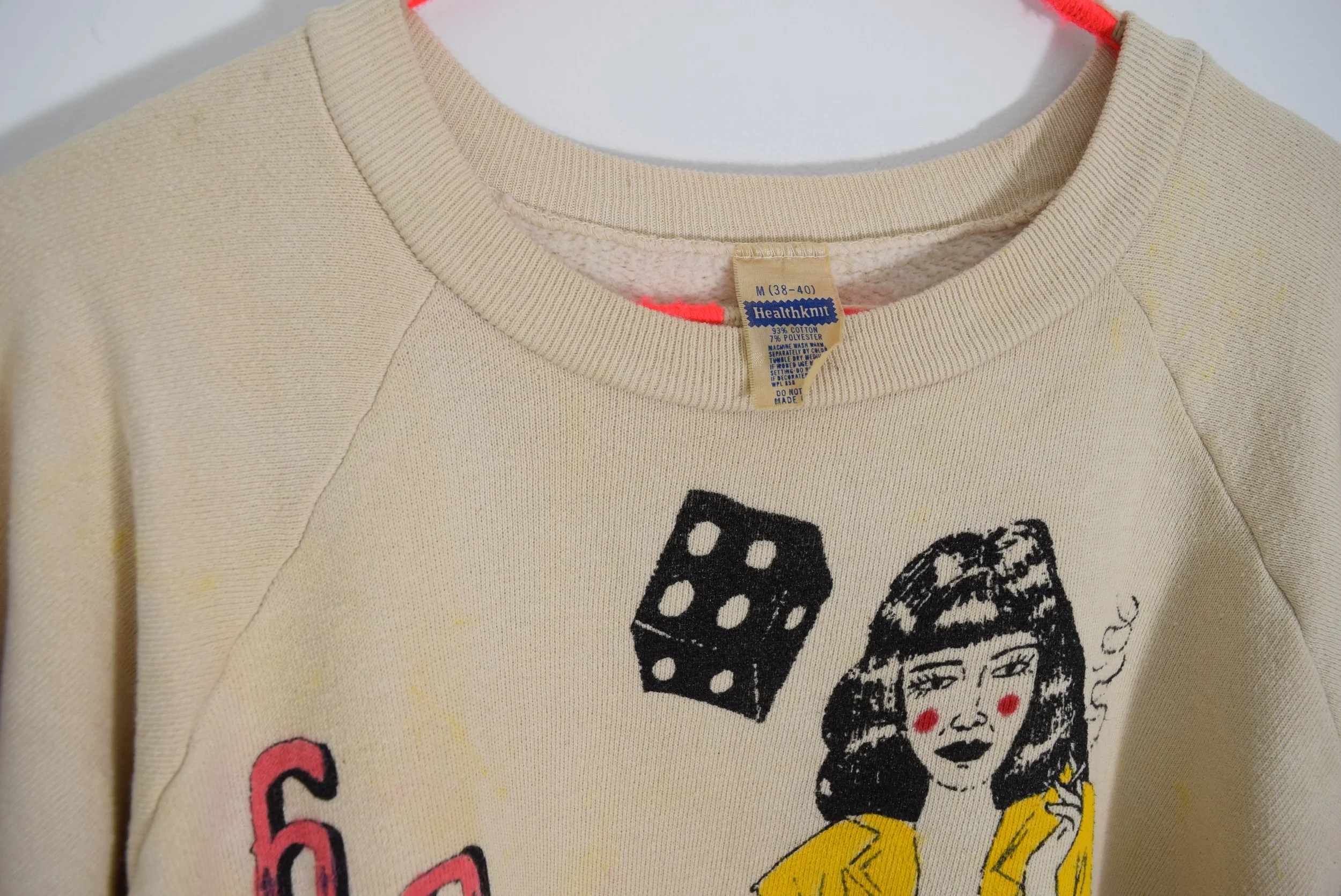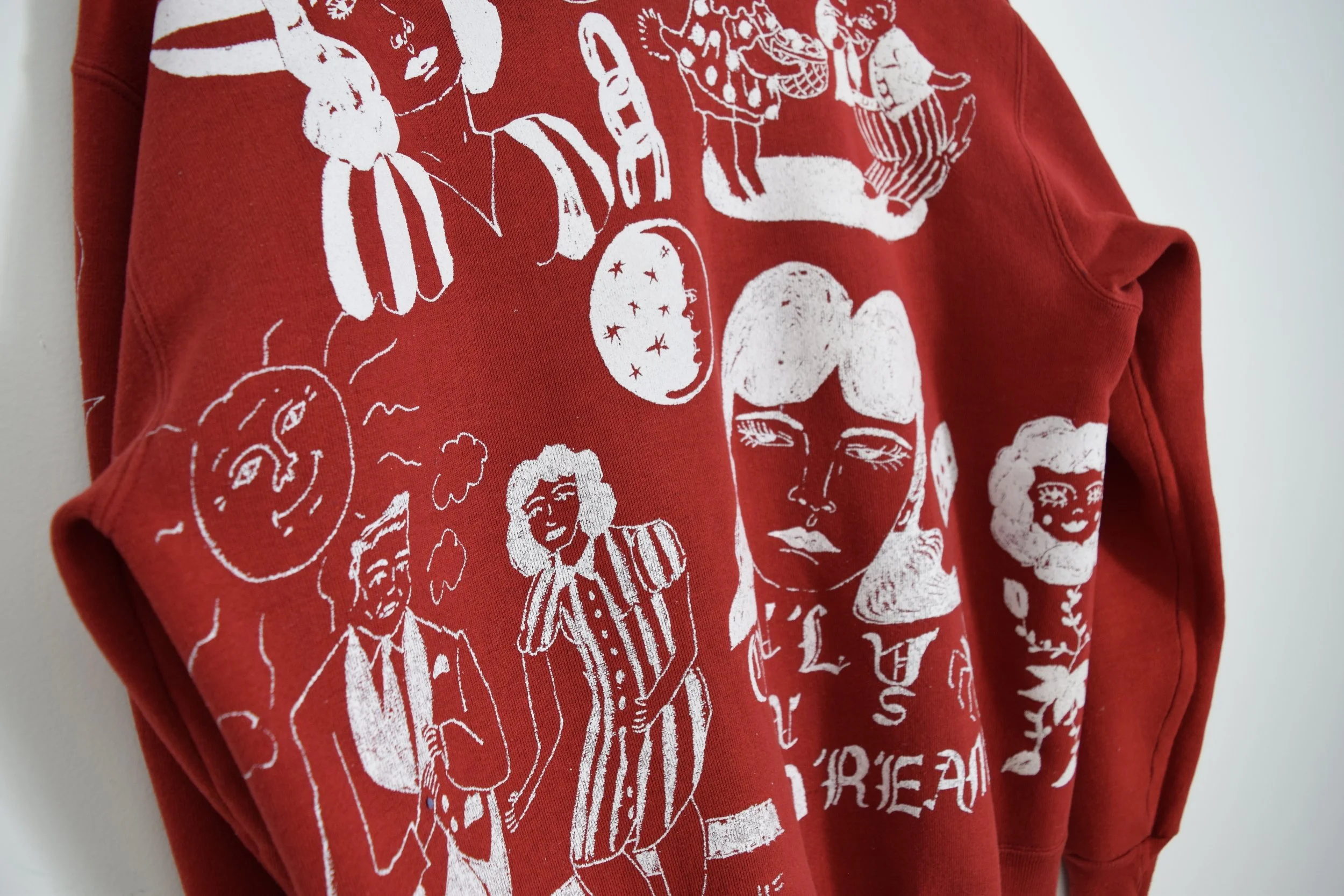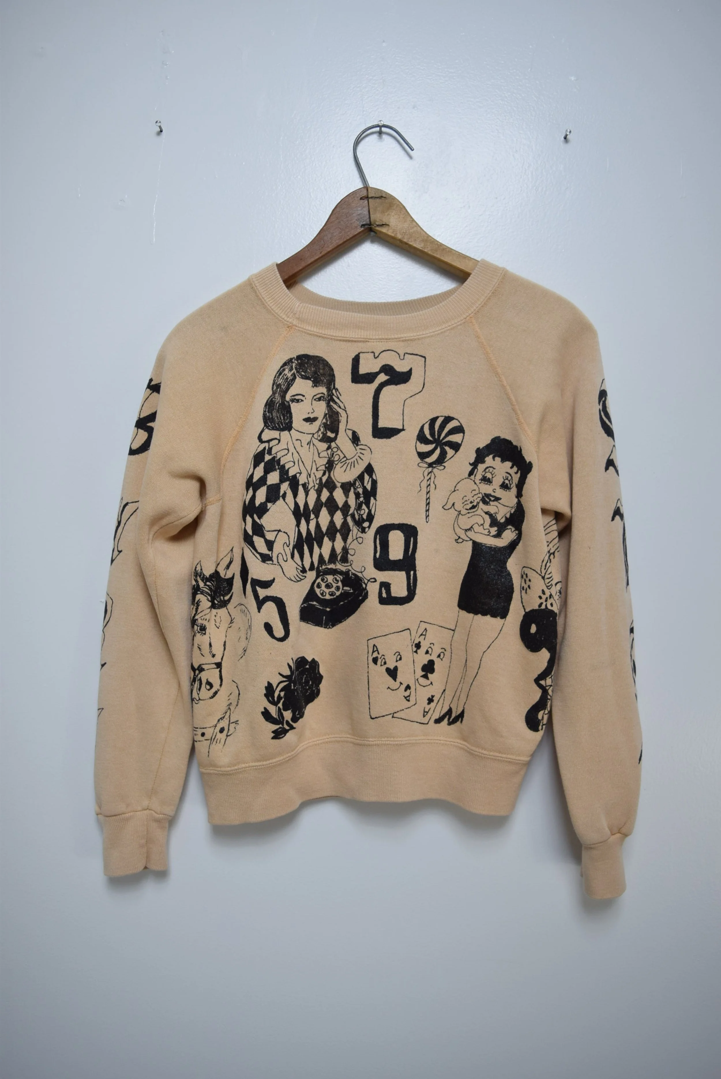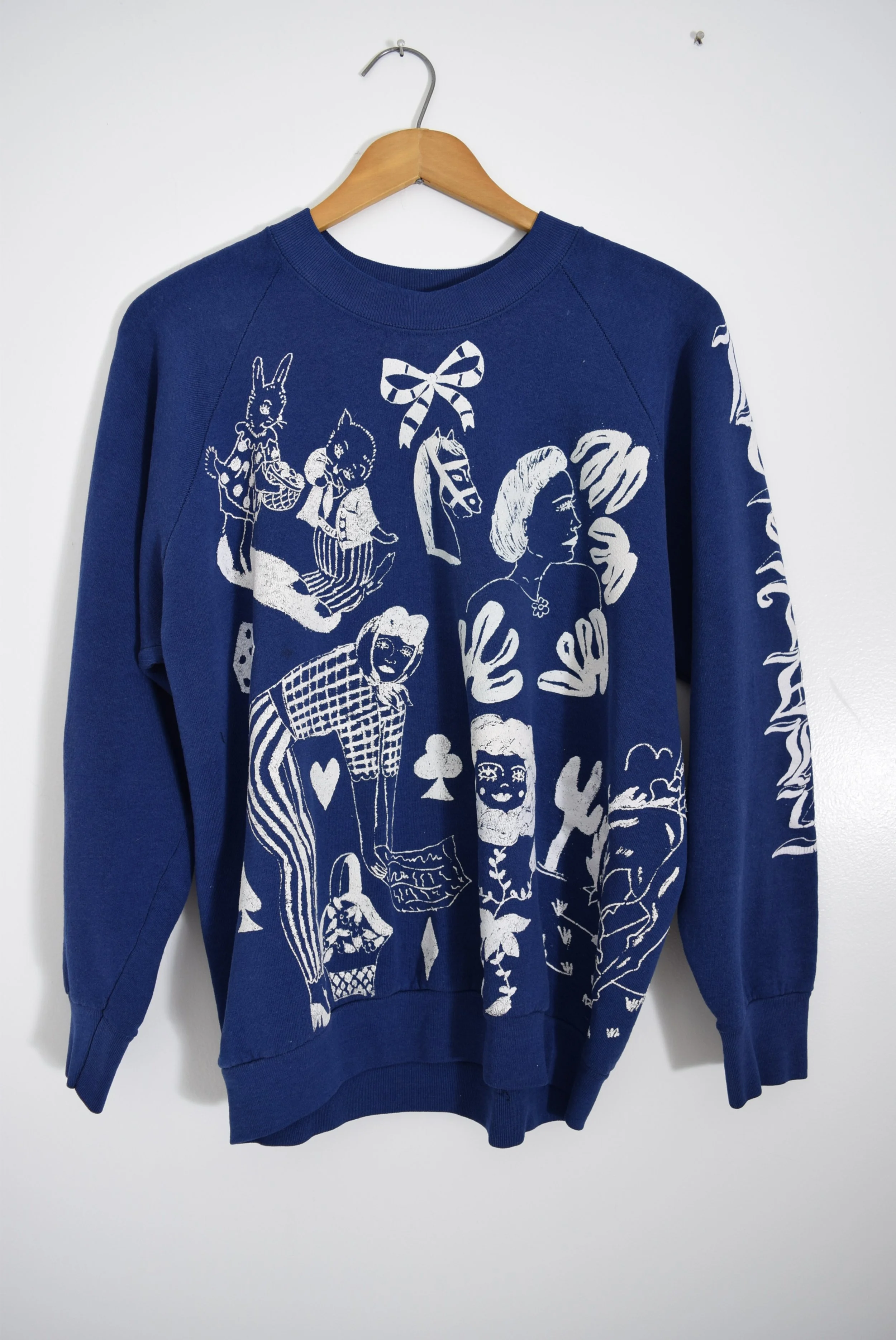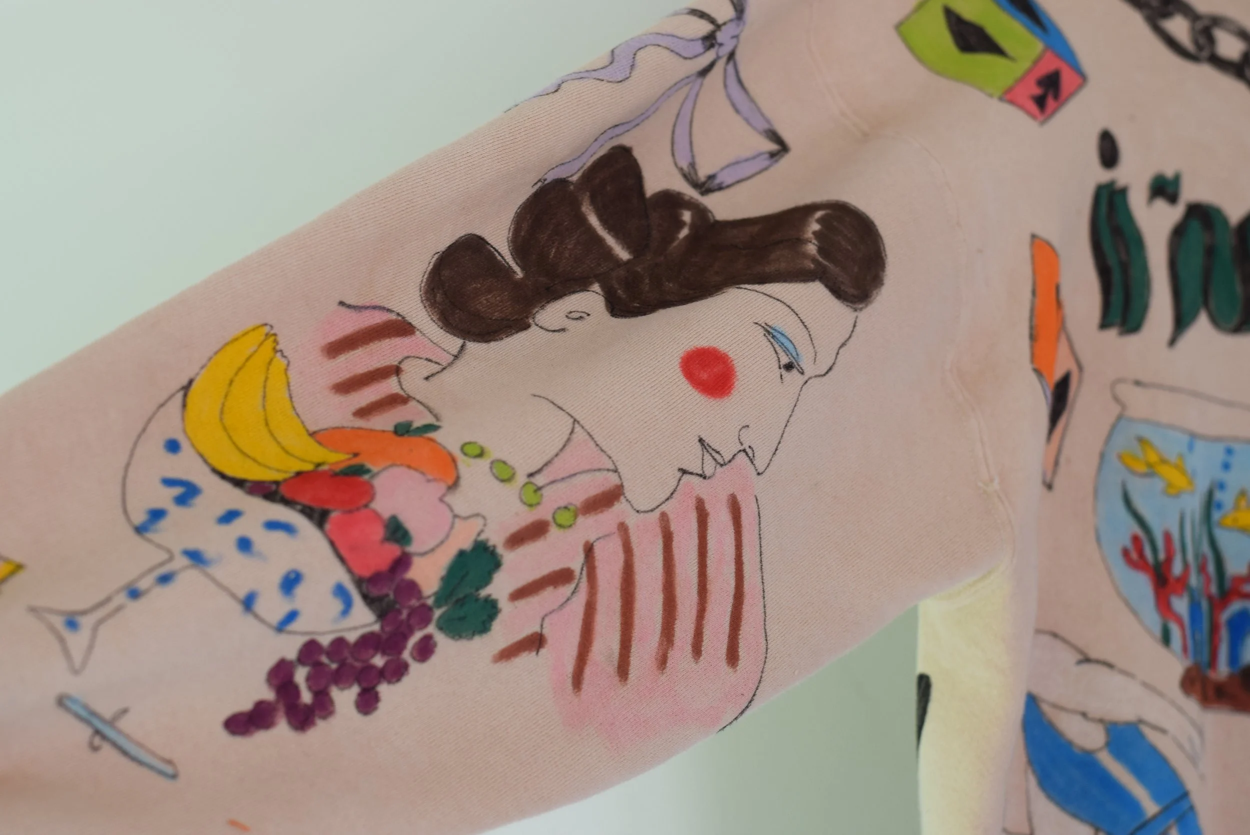 "Infinite Mystery" off white hand drawn + screen printed vintage sweatshirt L