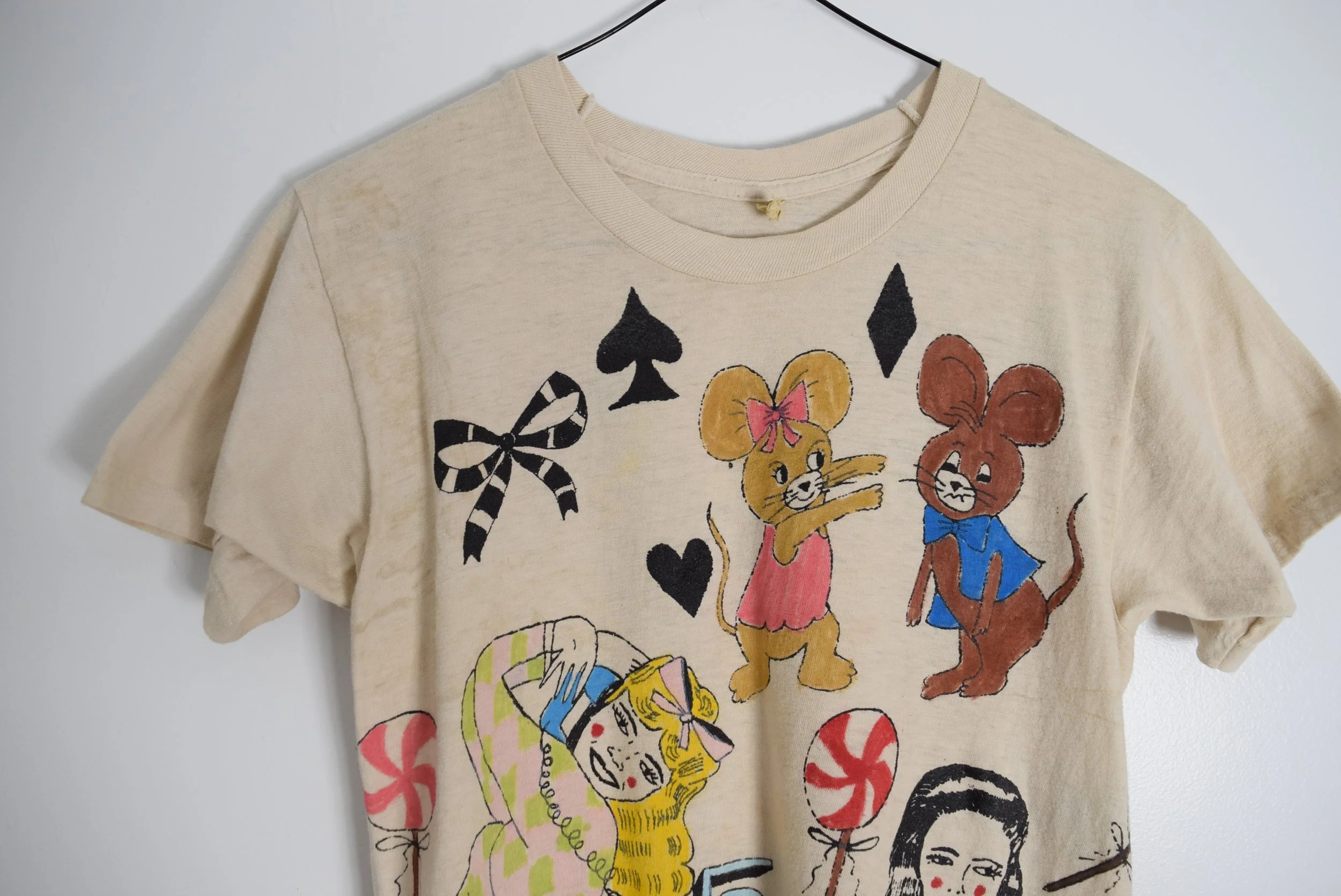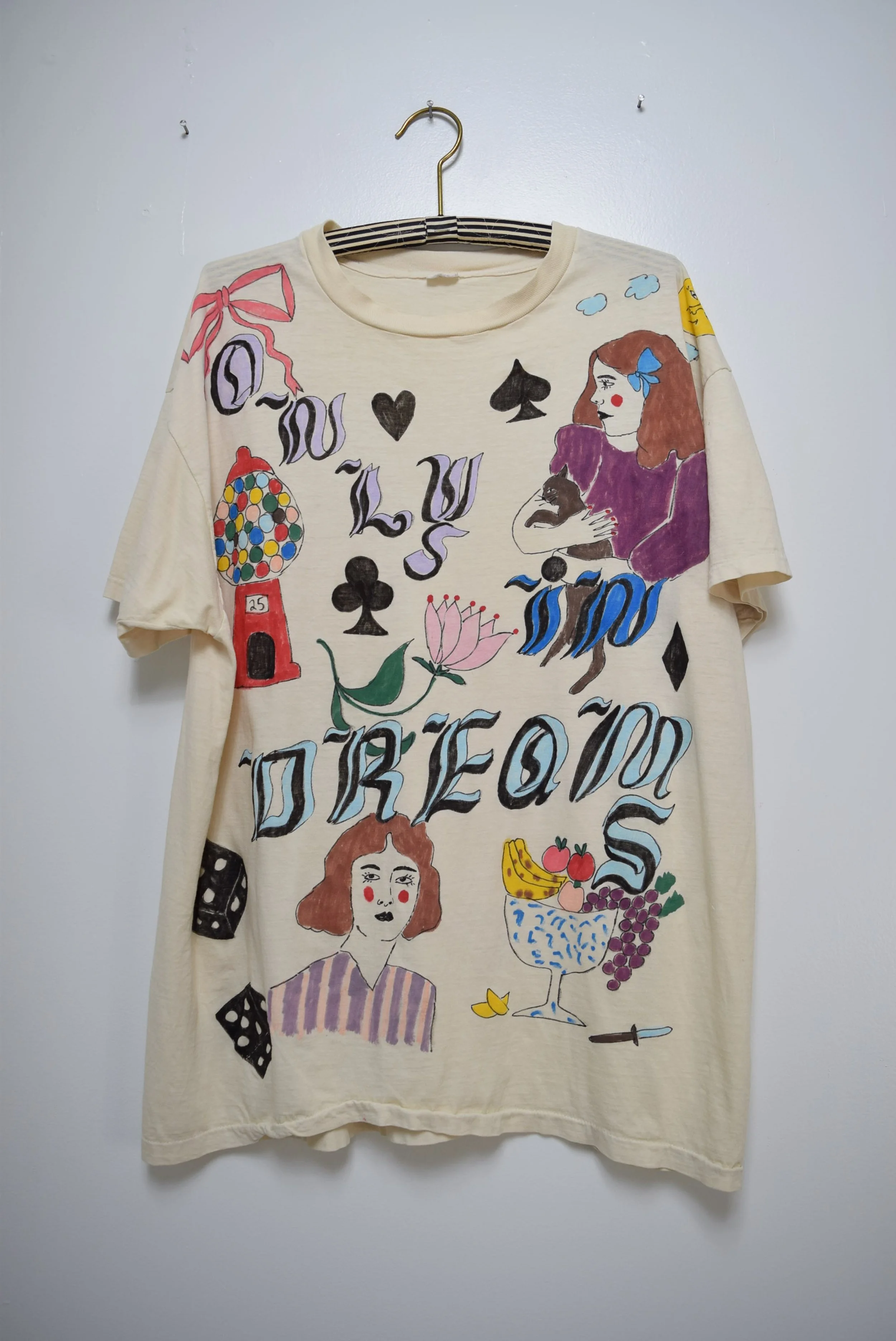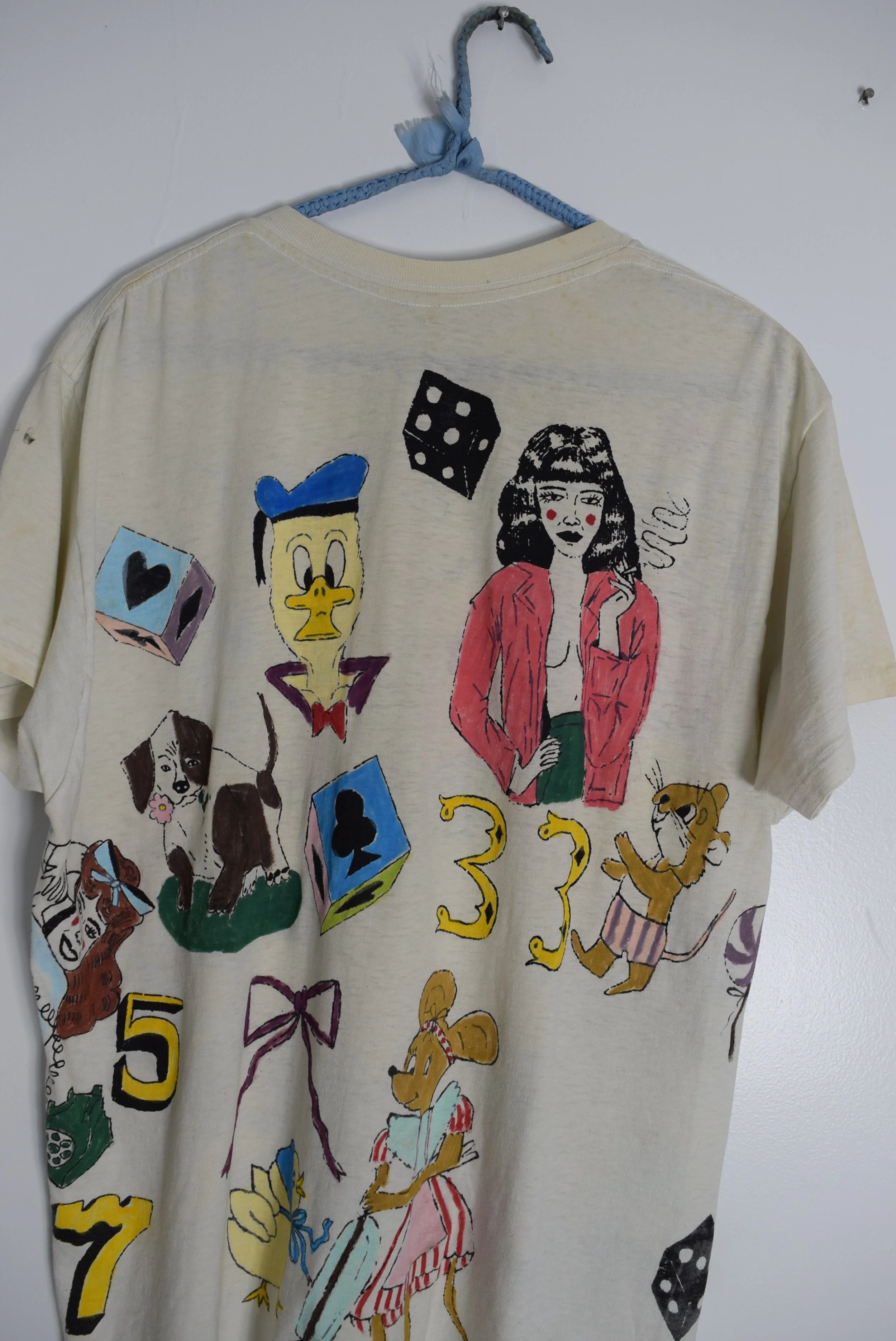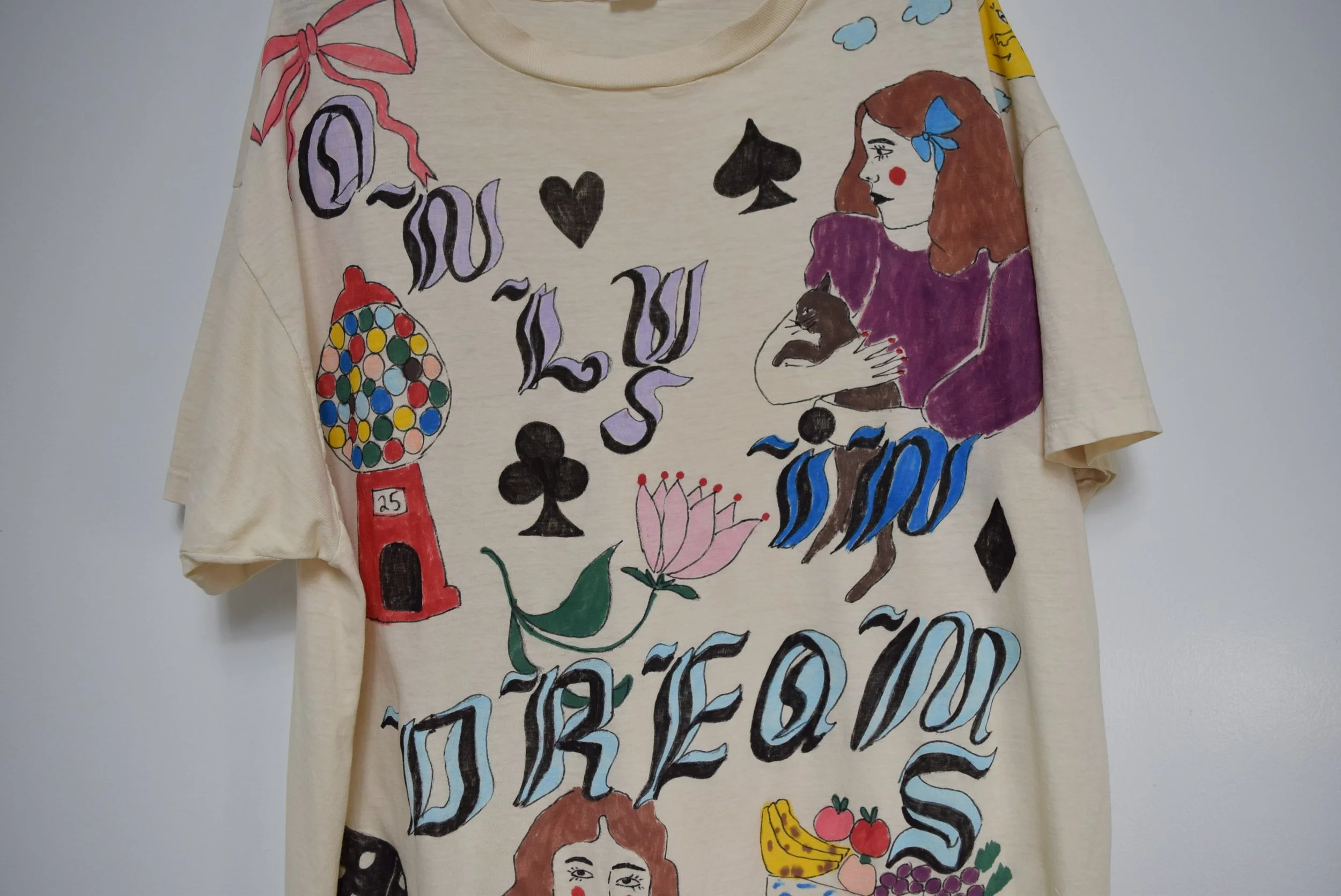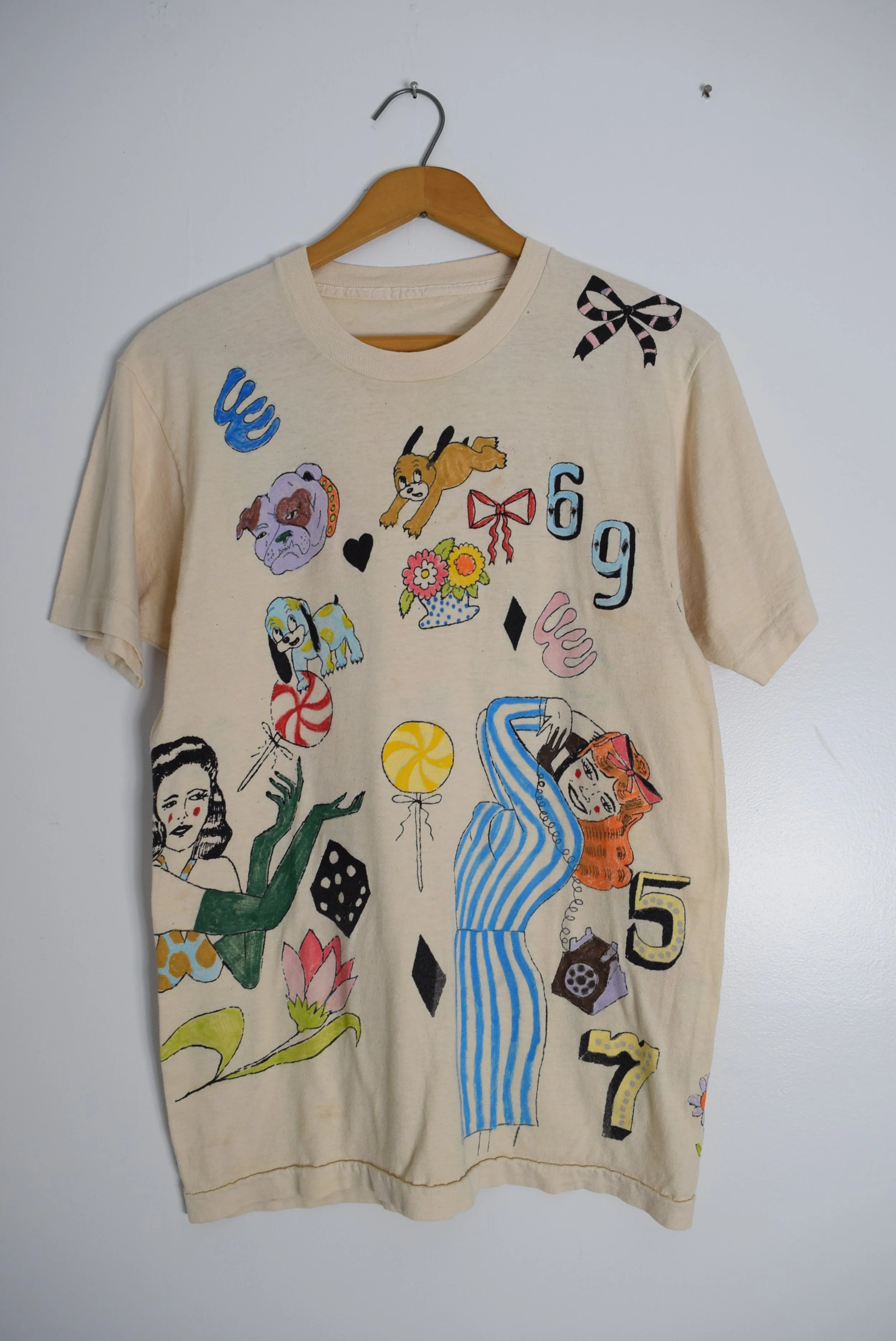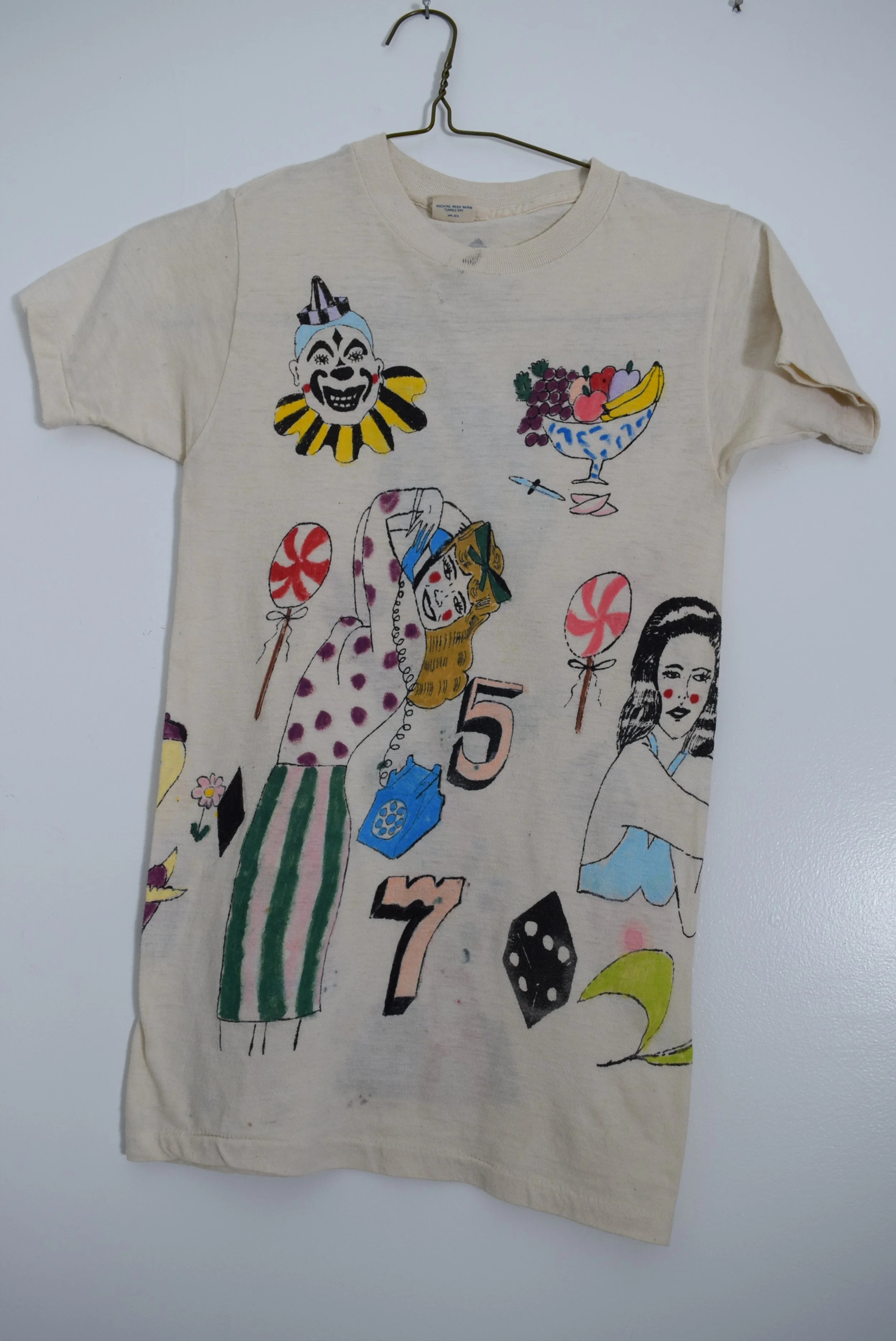 hand drawn + screen printed all over print off white vintage Tee S/M