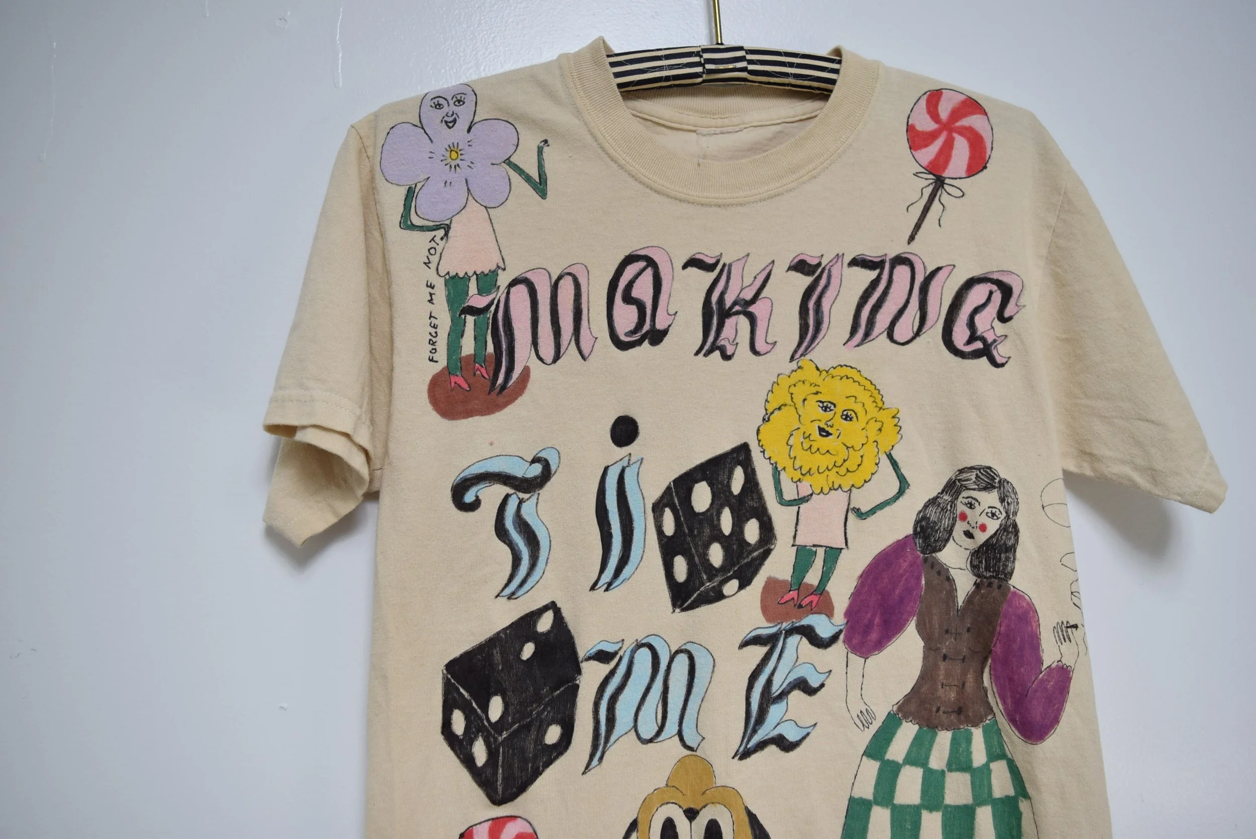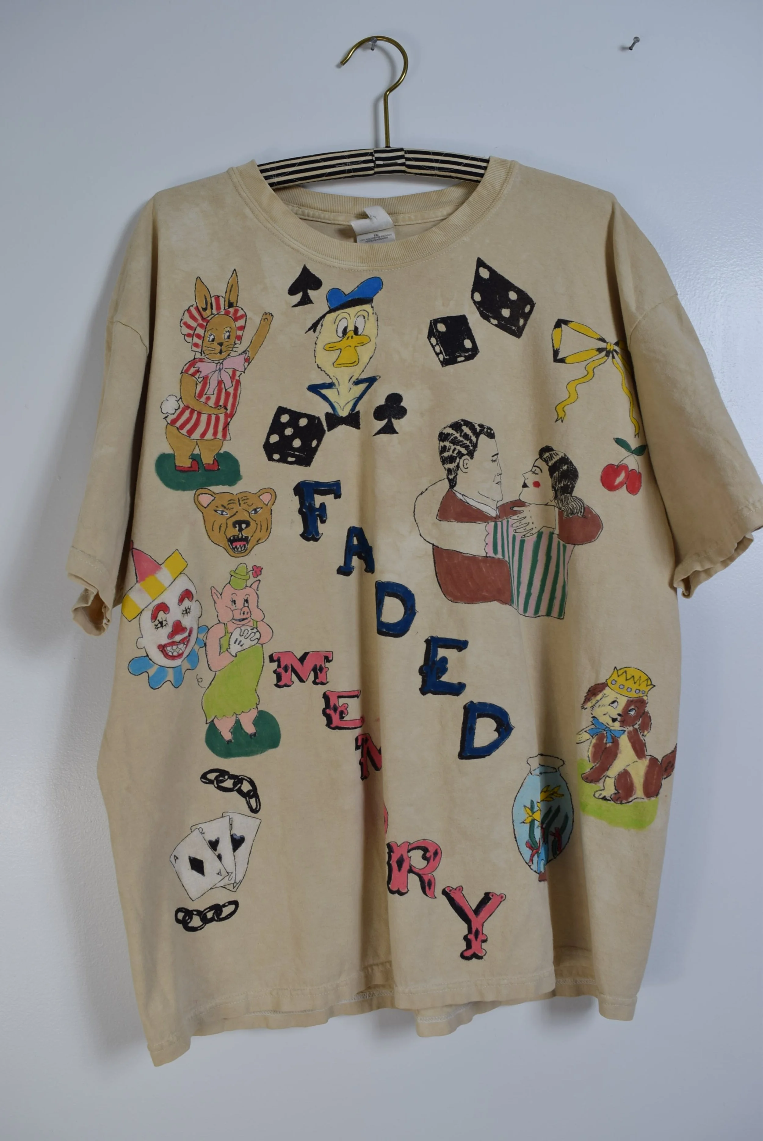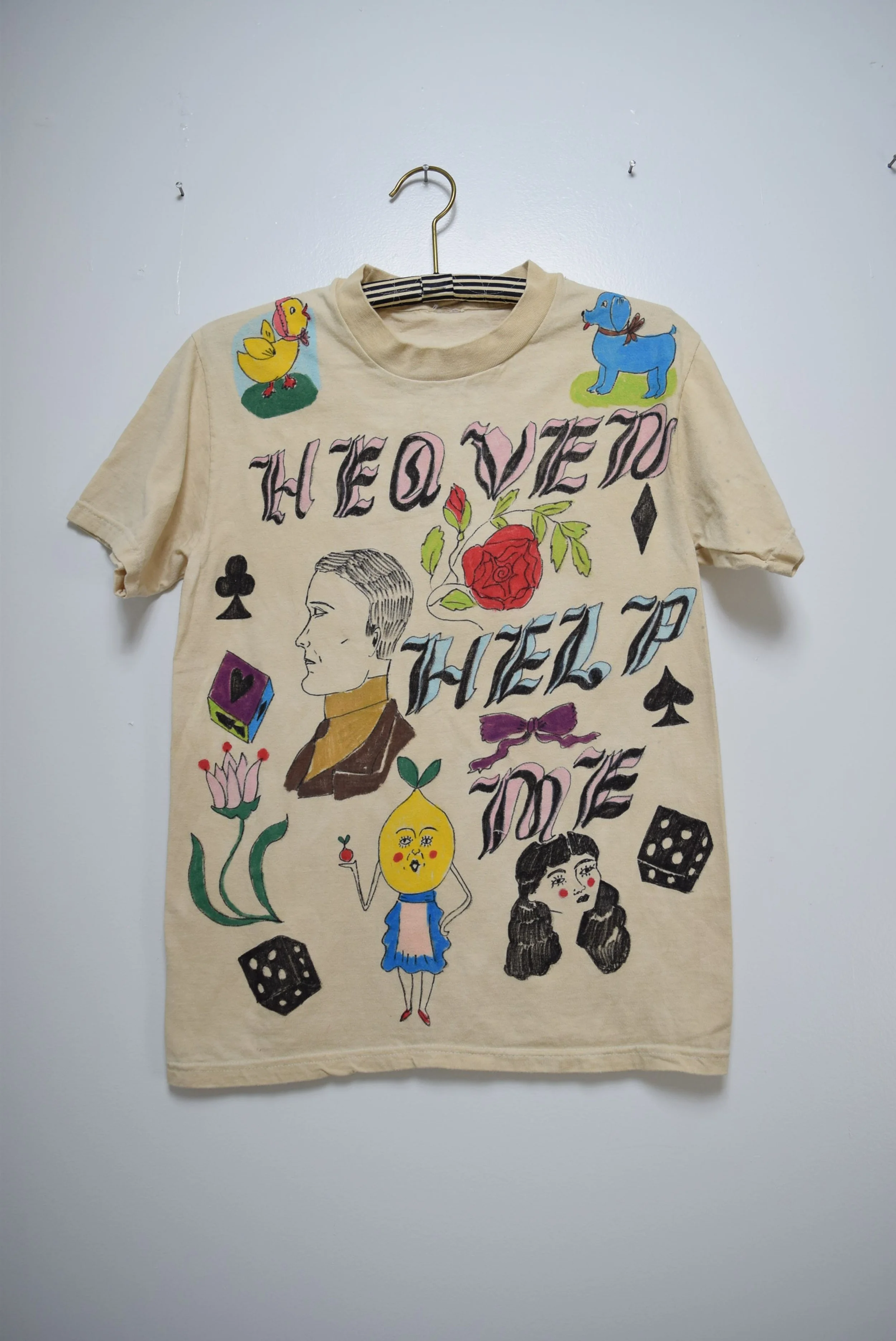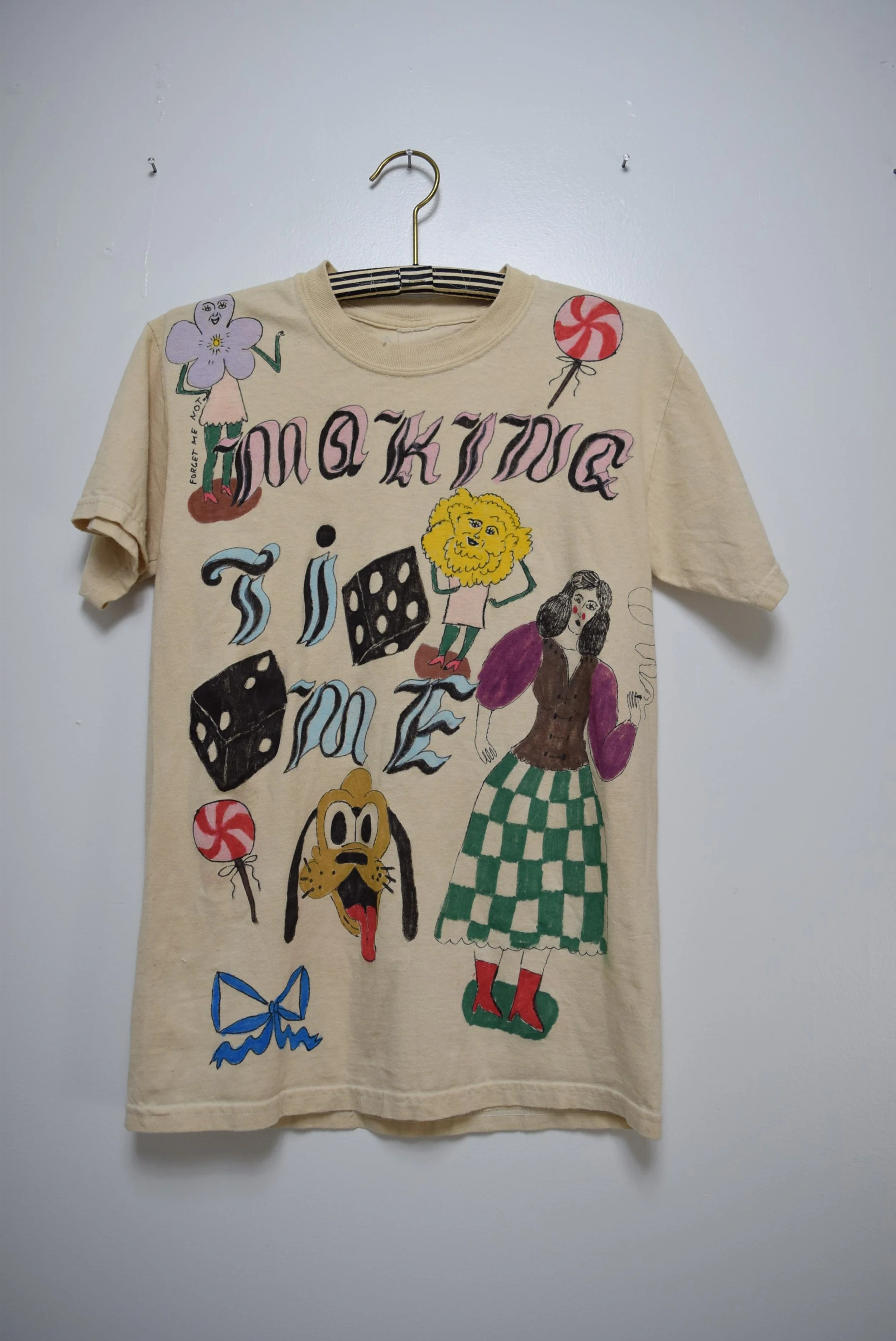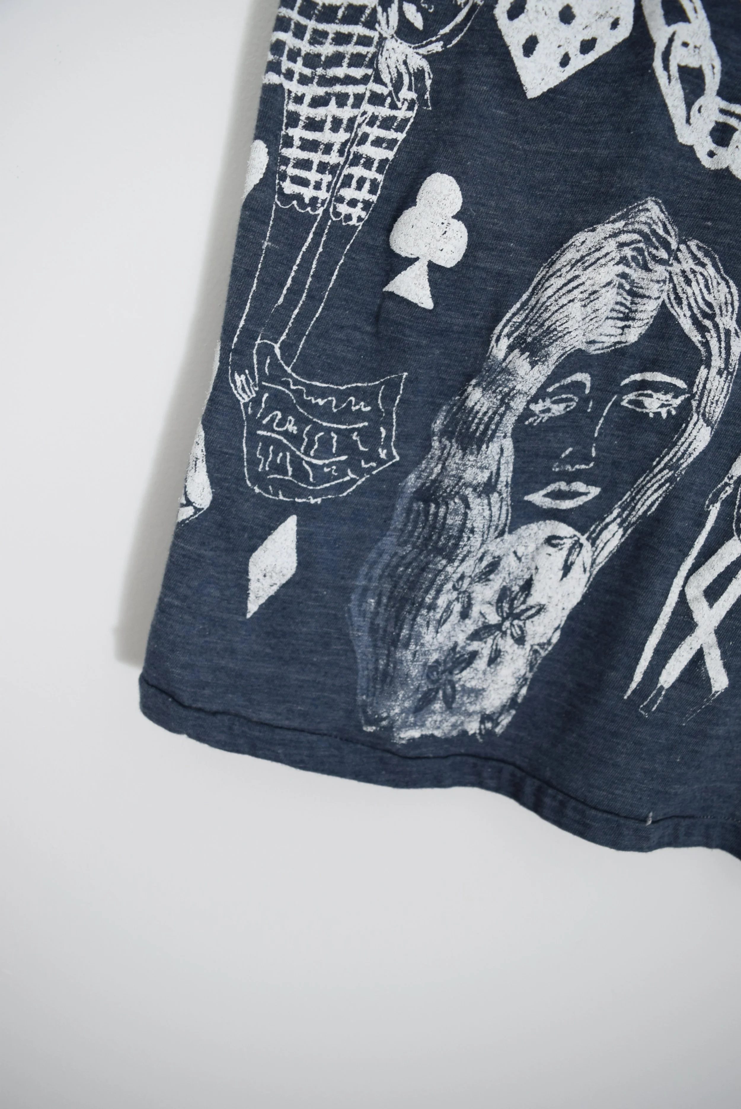 hand drawn + screen printed all over print off white vintage Tee S/M