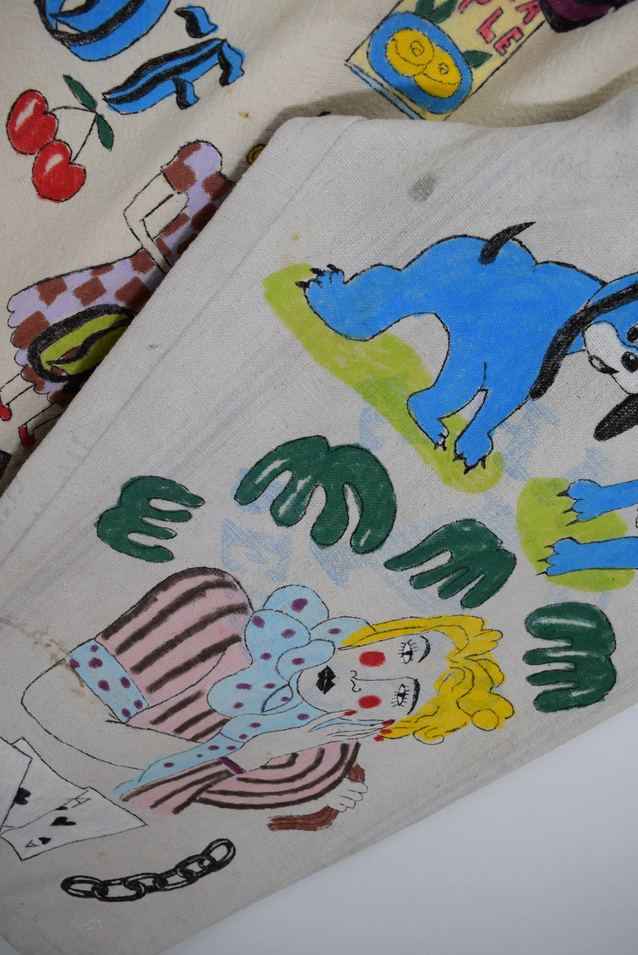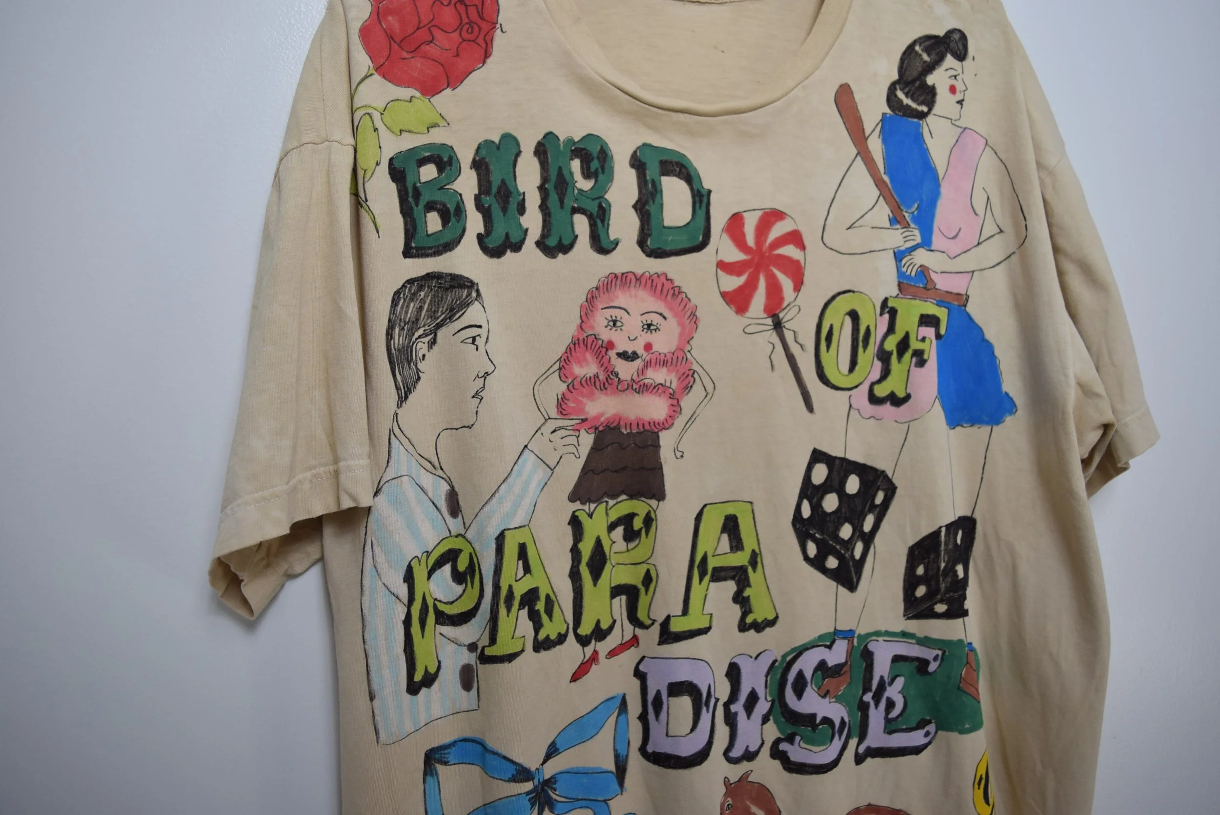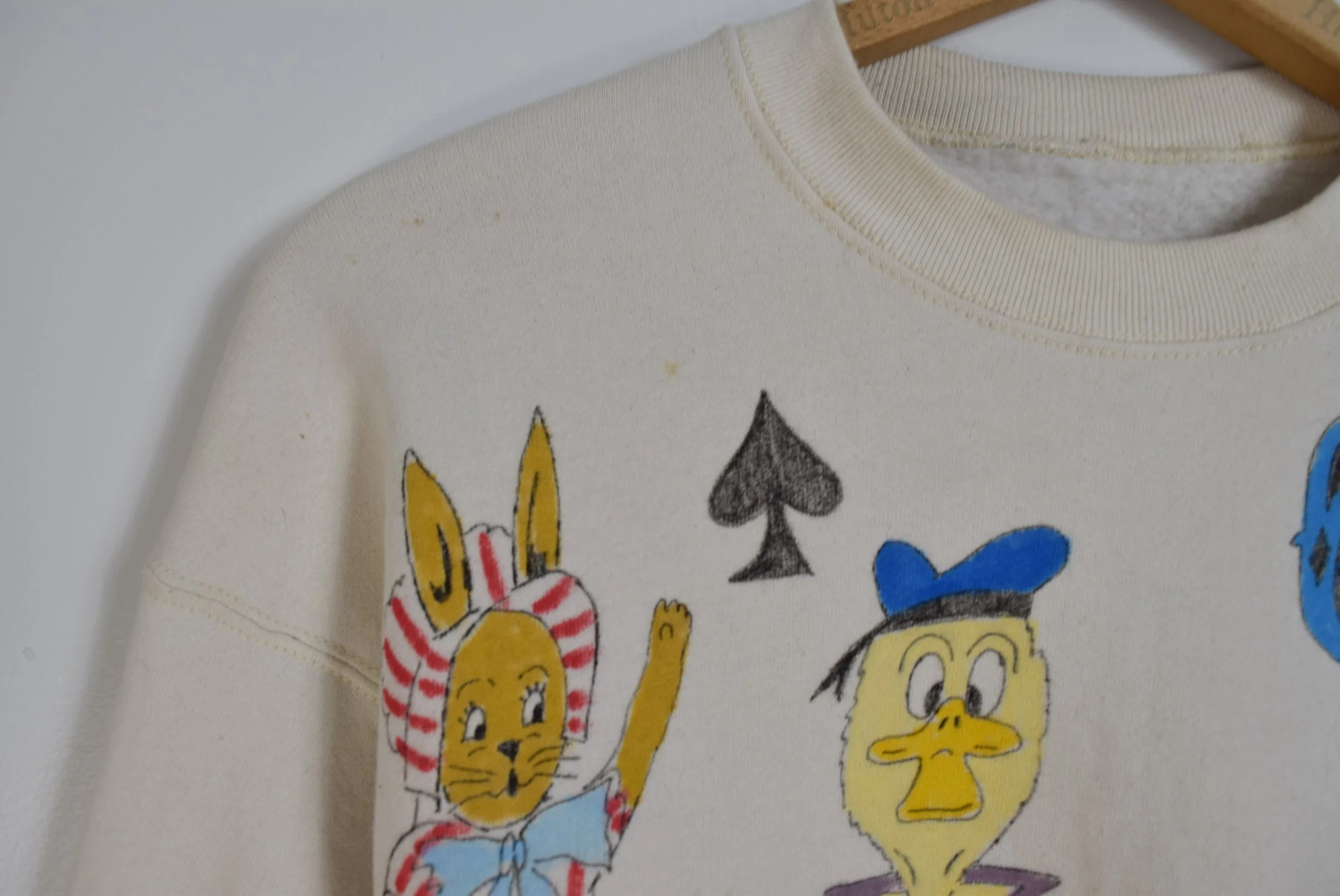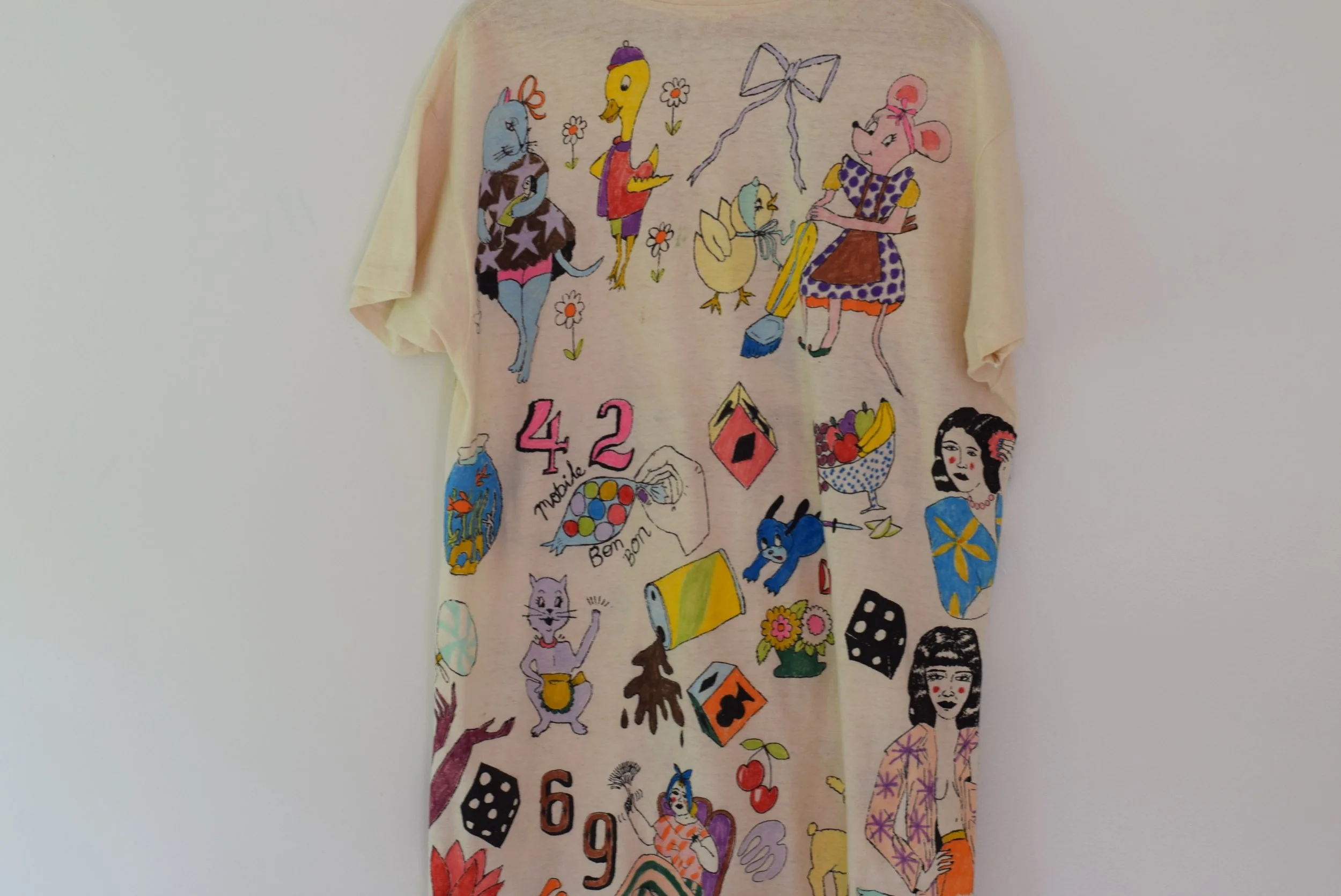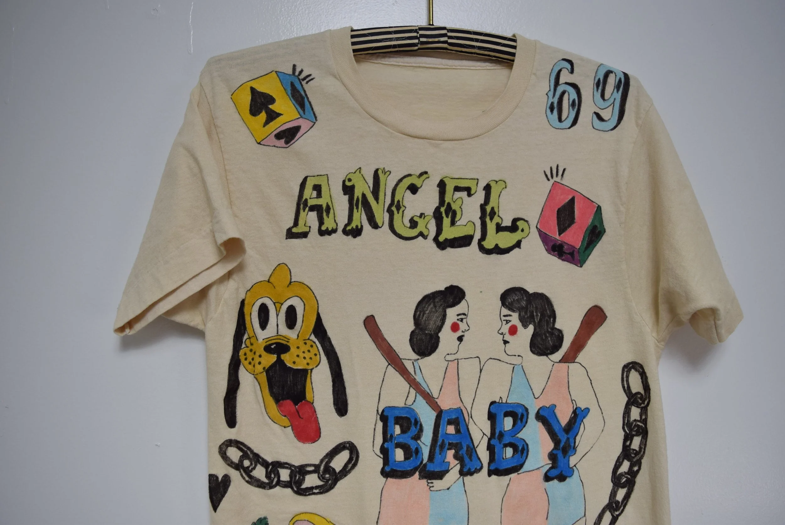 hand drawn + screen printed all over print off white vintage Tee S/M