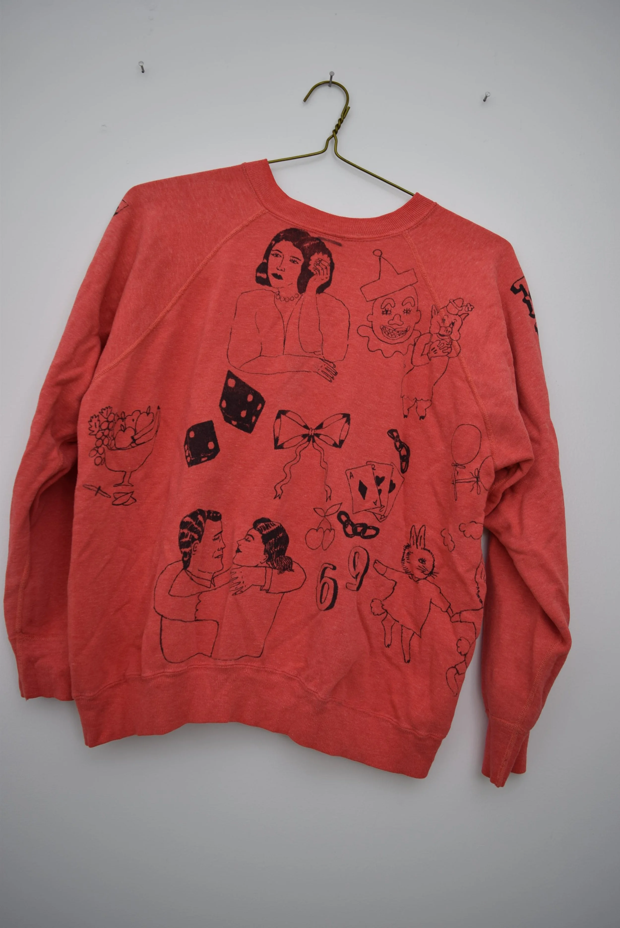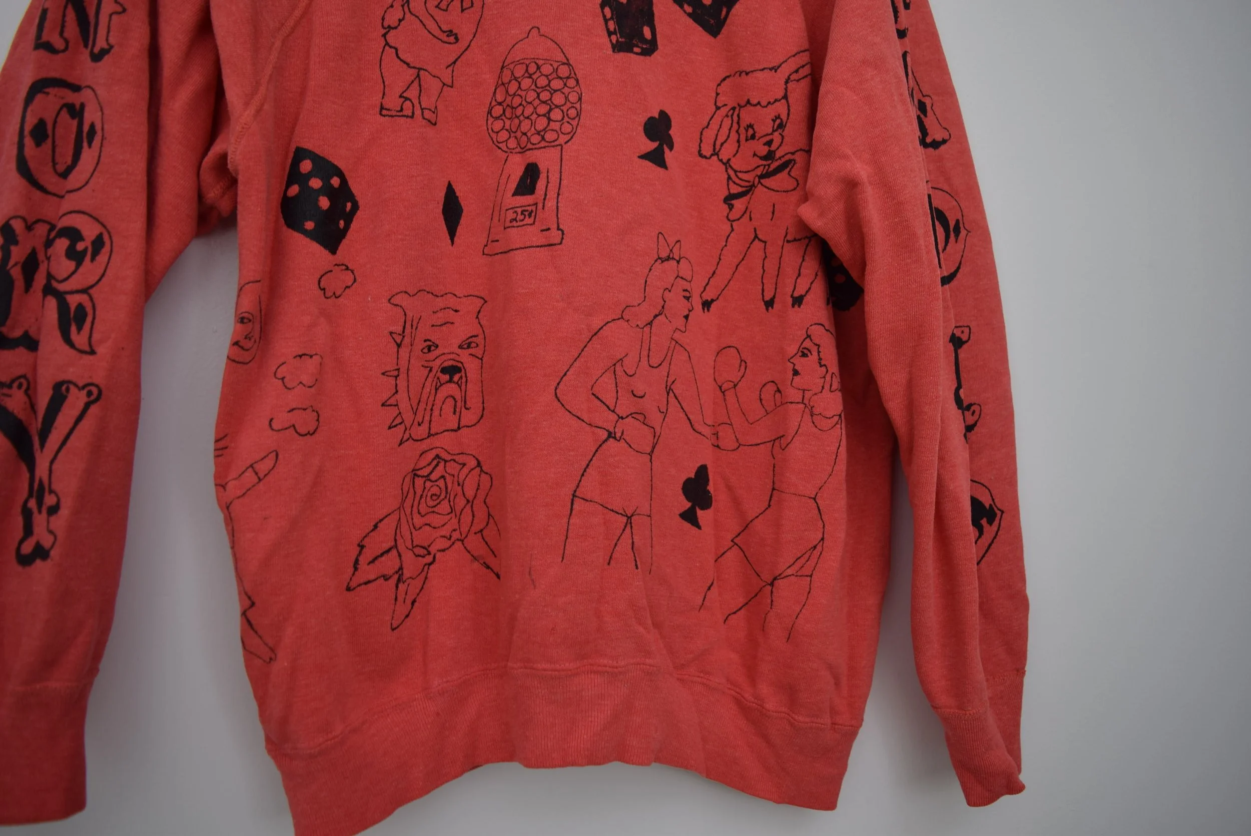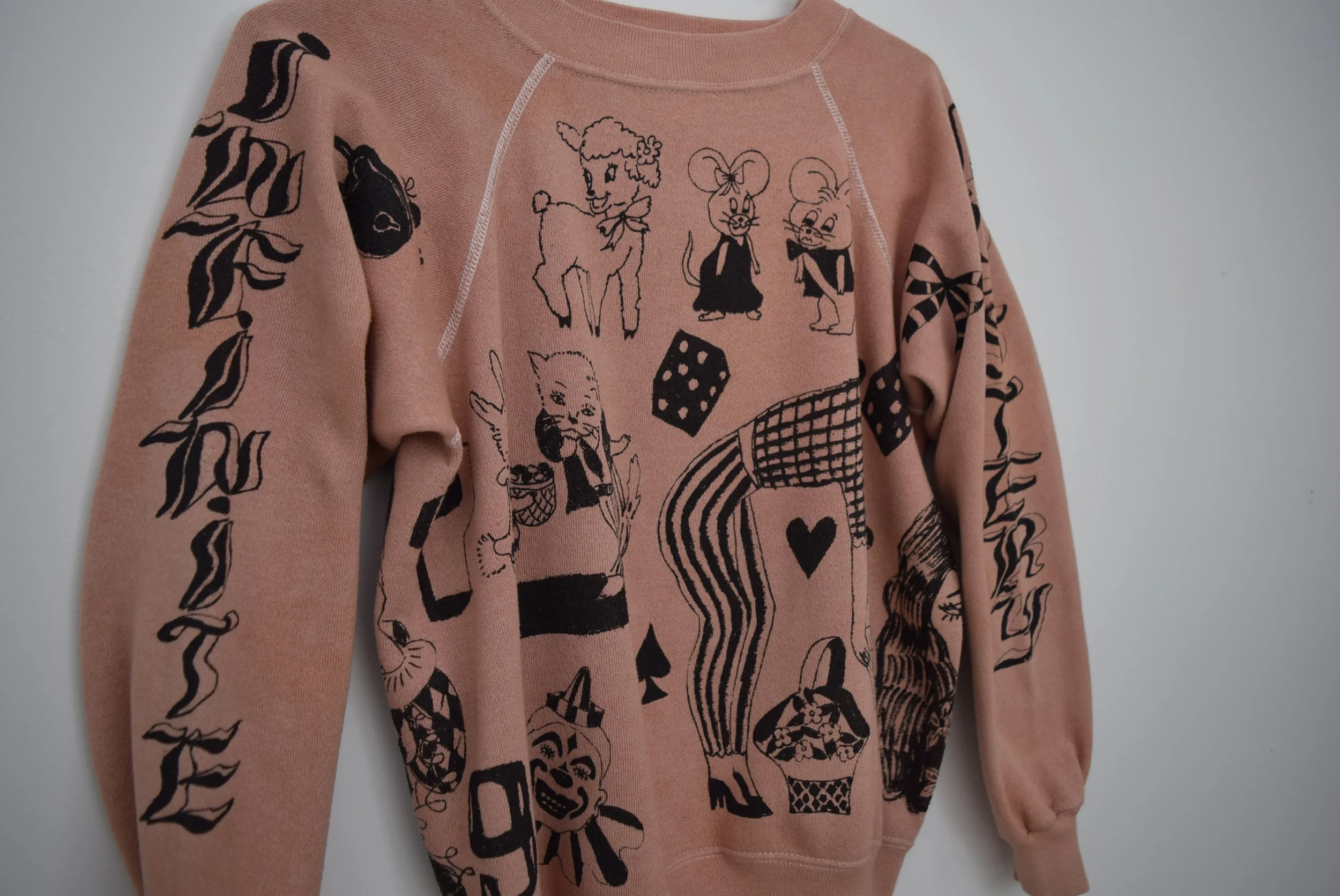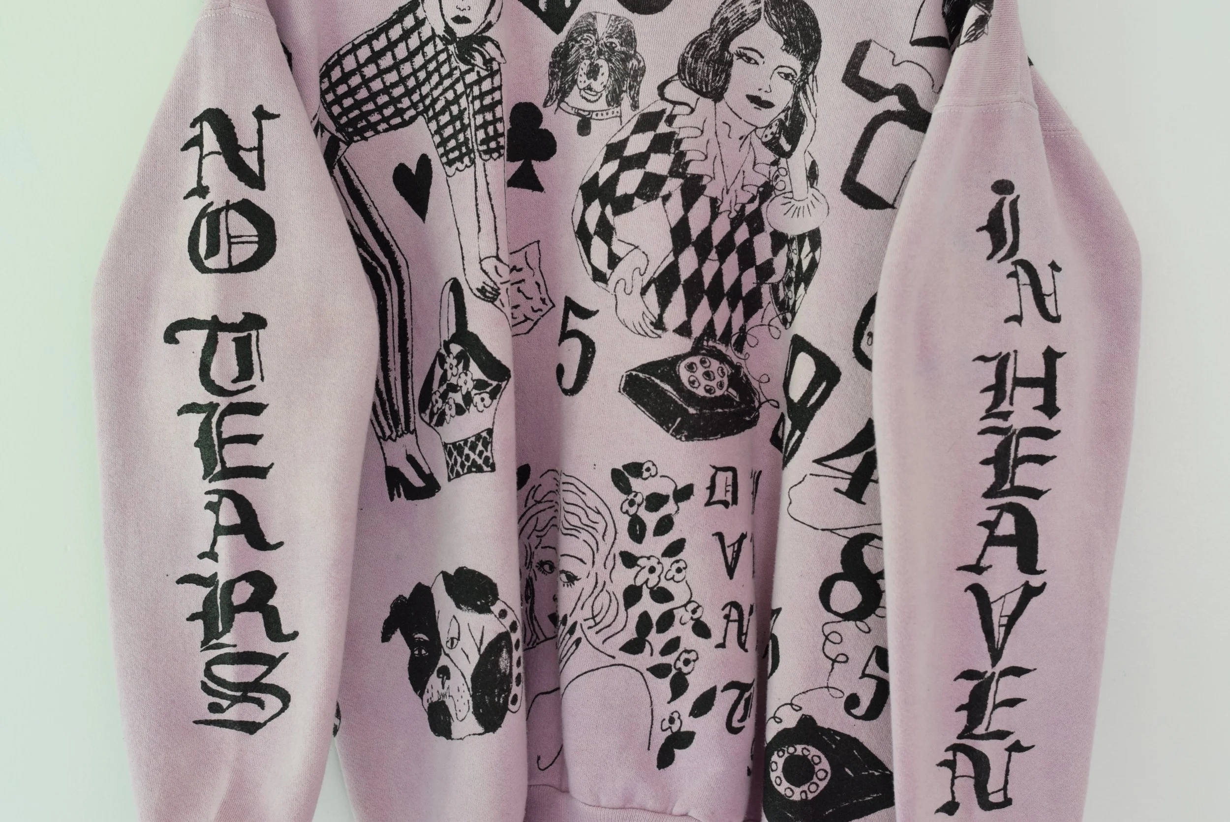 "No Tears in Heaven" pink screen printed vintage sweatshirt L