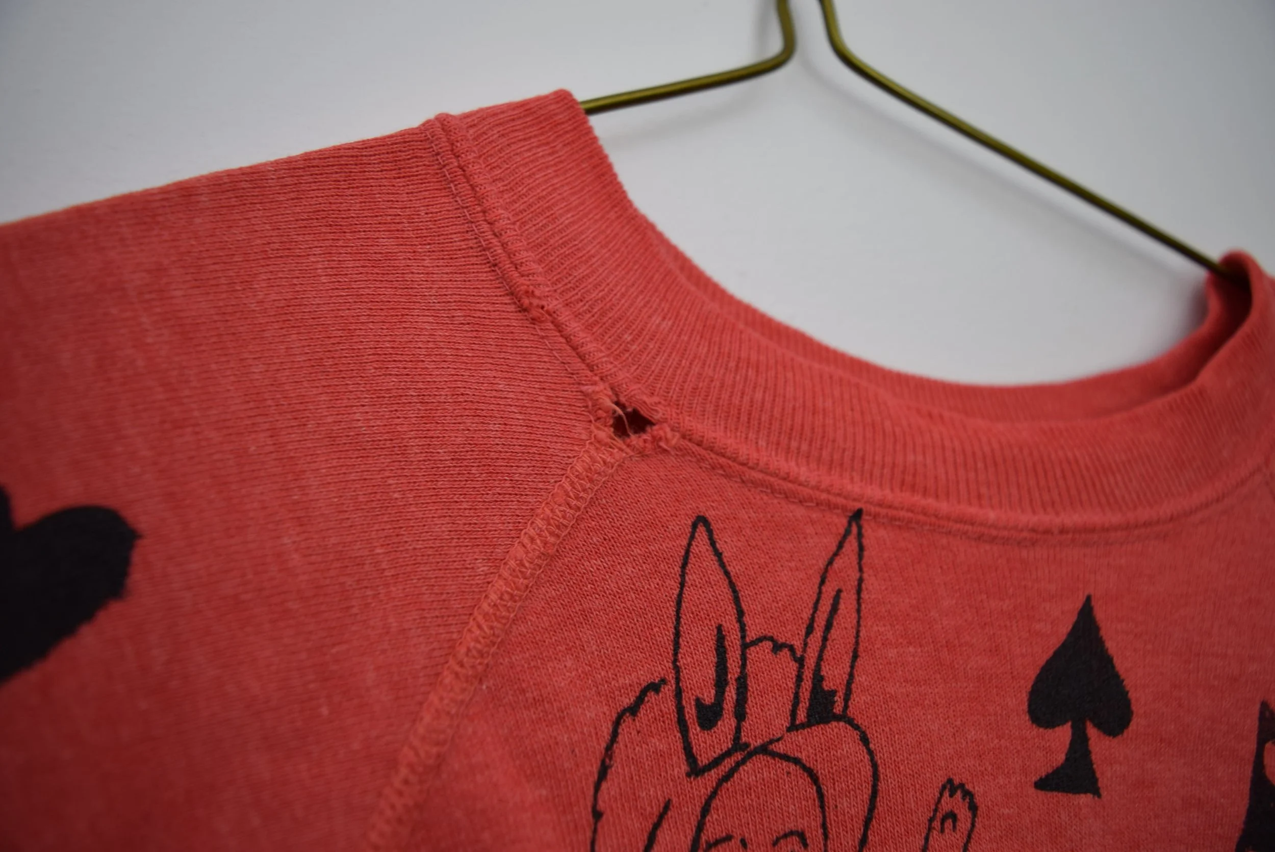 "No Tears in Heaven" pink hand drawn vintage short sleeve sweatshirt M/L