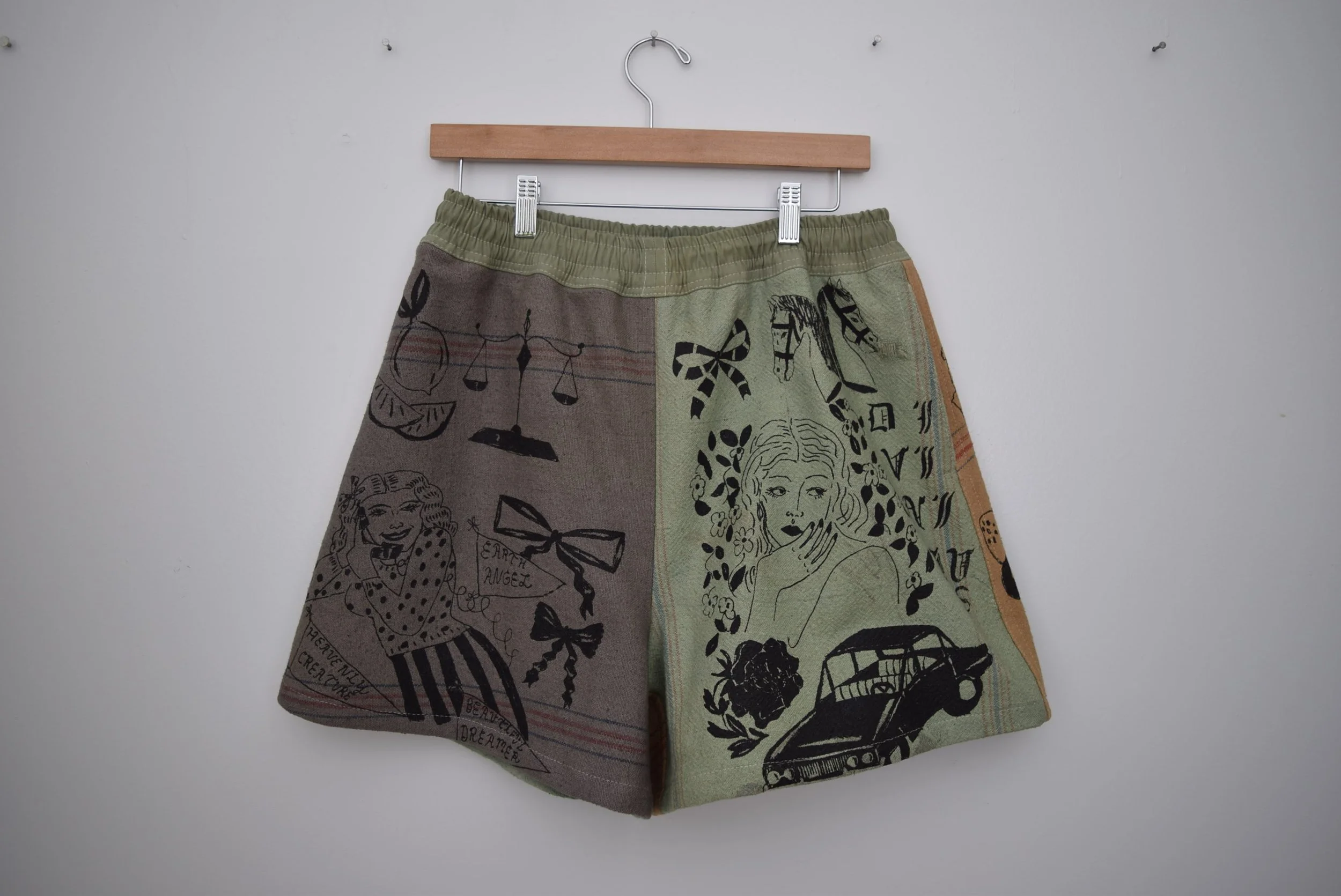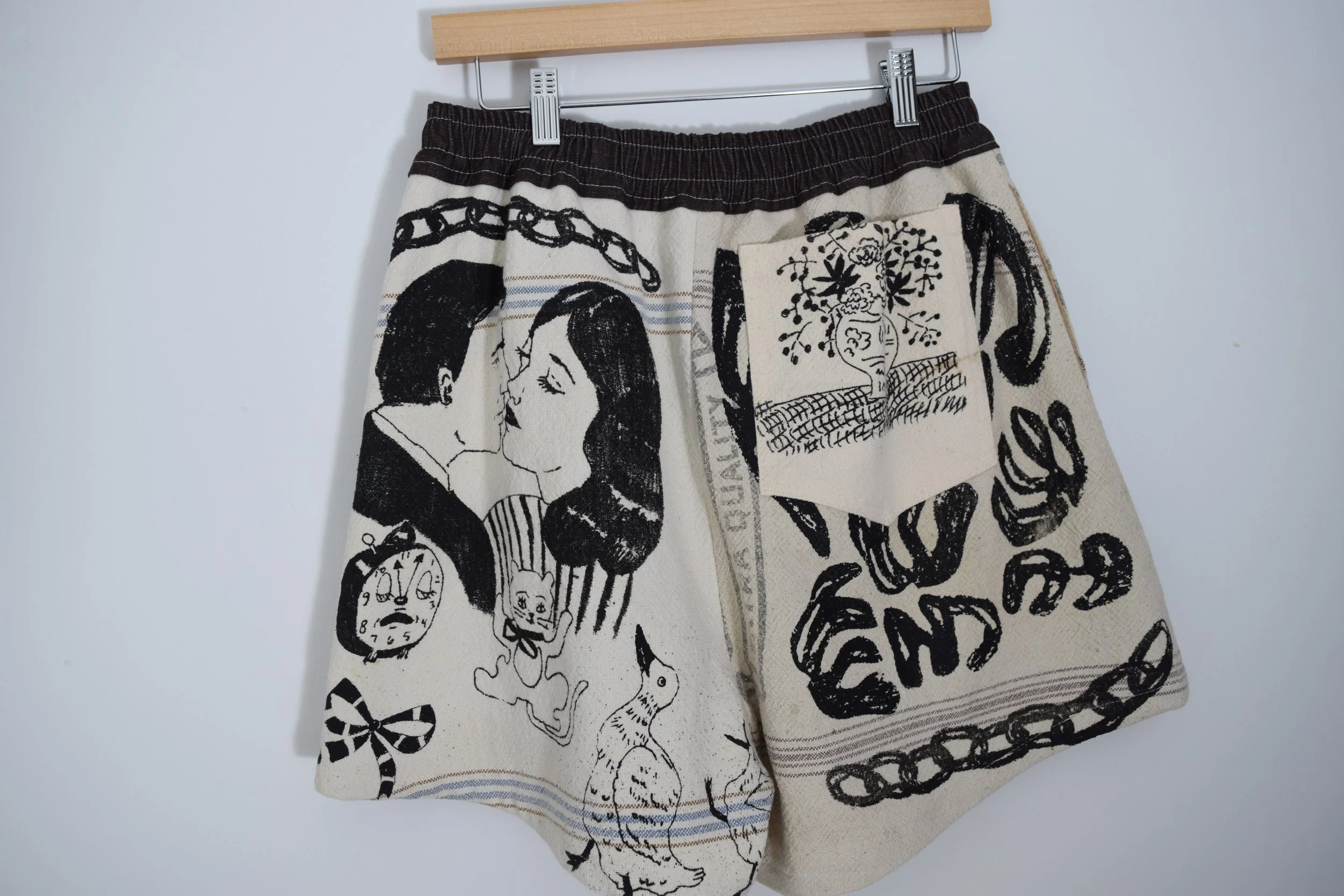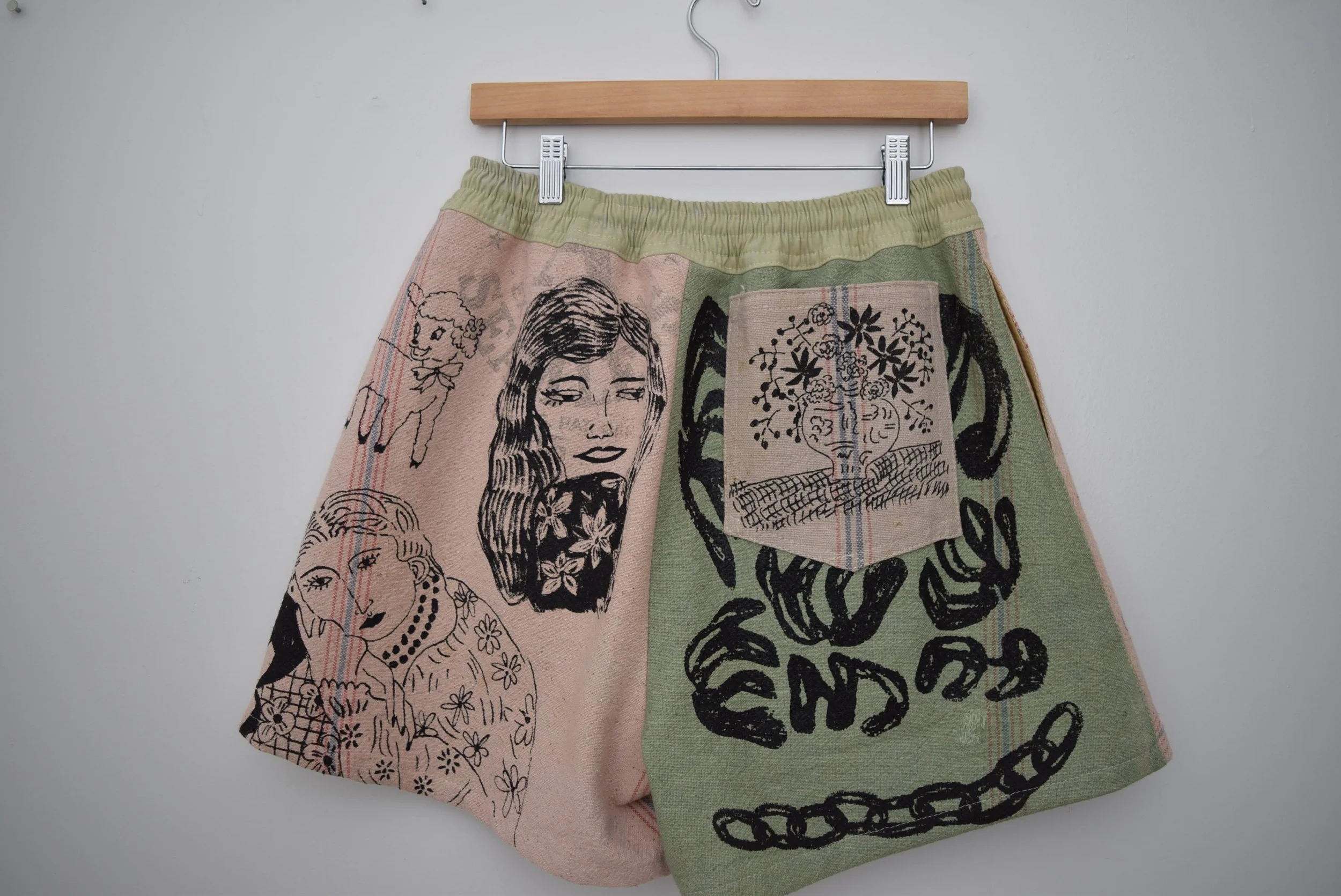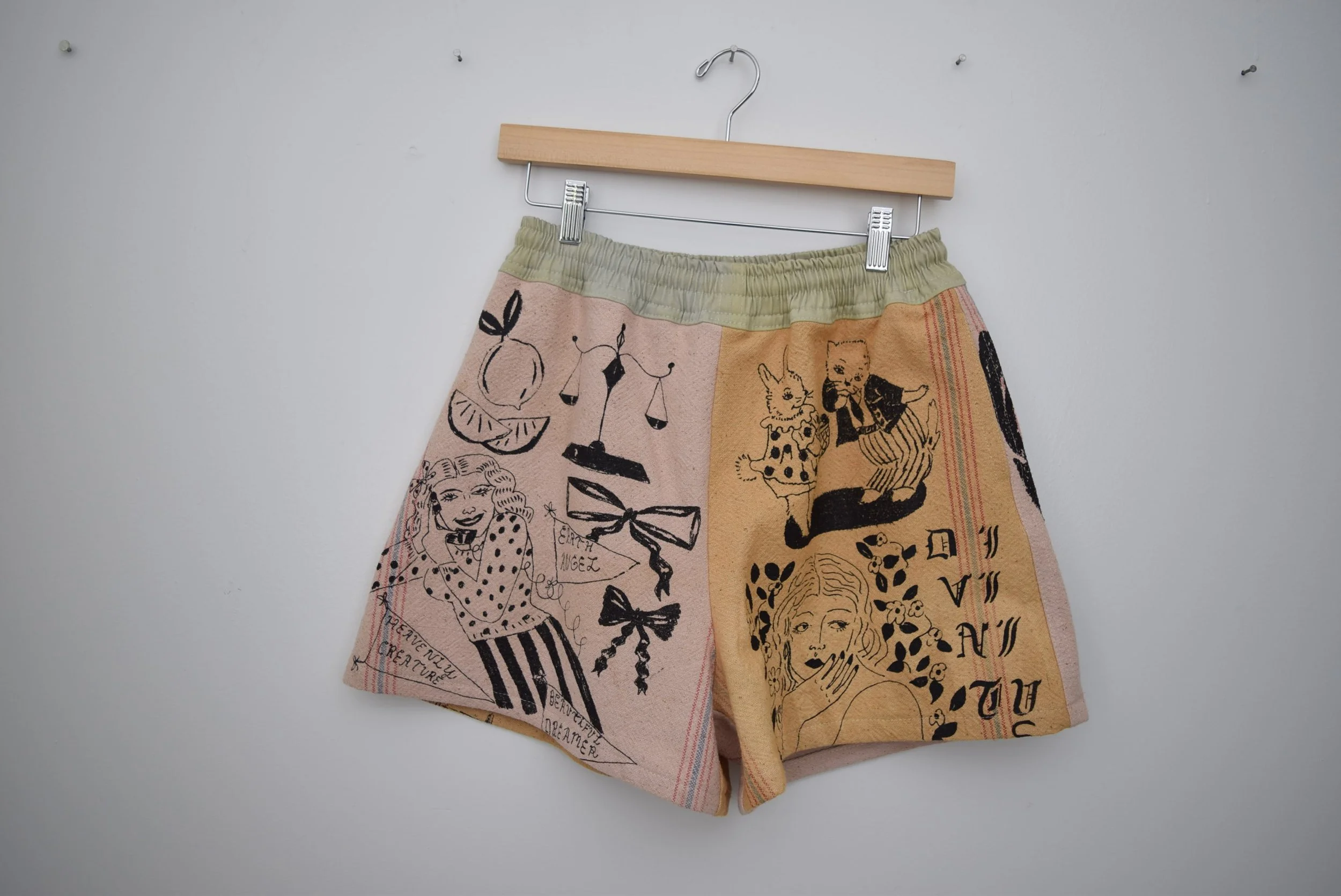 "dreams and delusions" Hand Drawn Cotton Feedsack Shorts size M