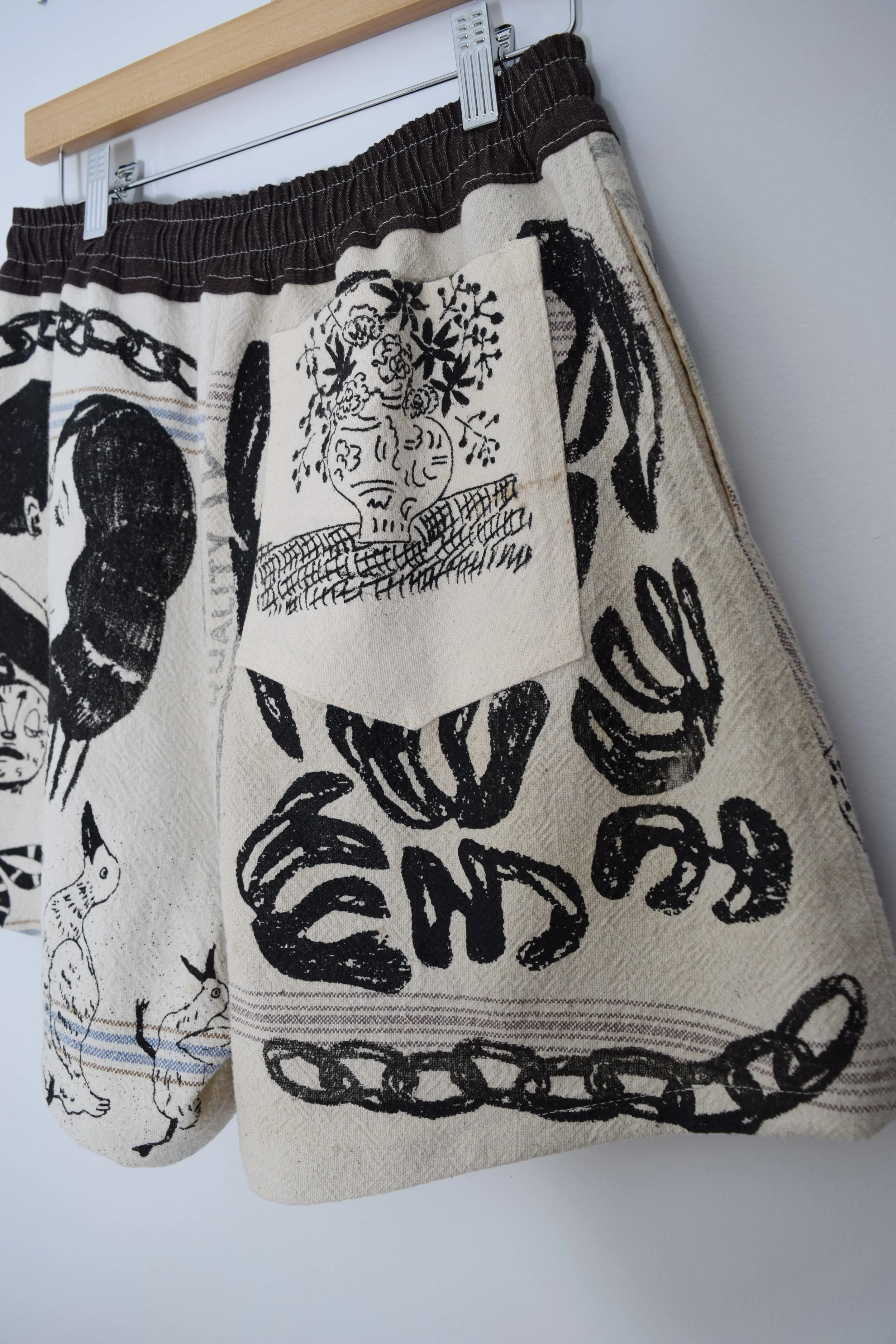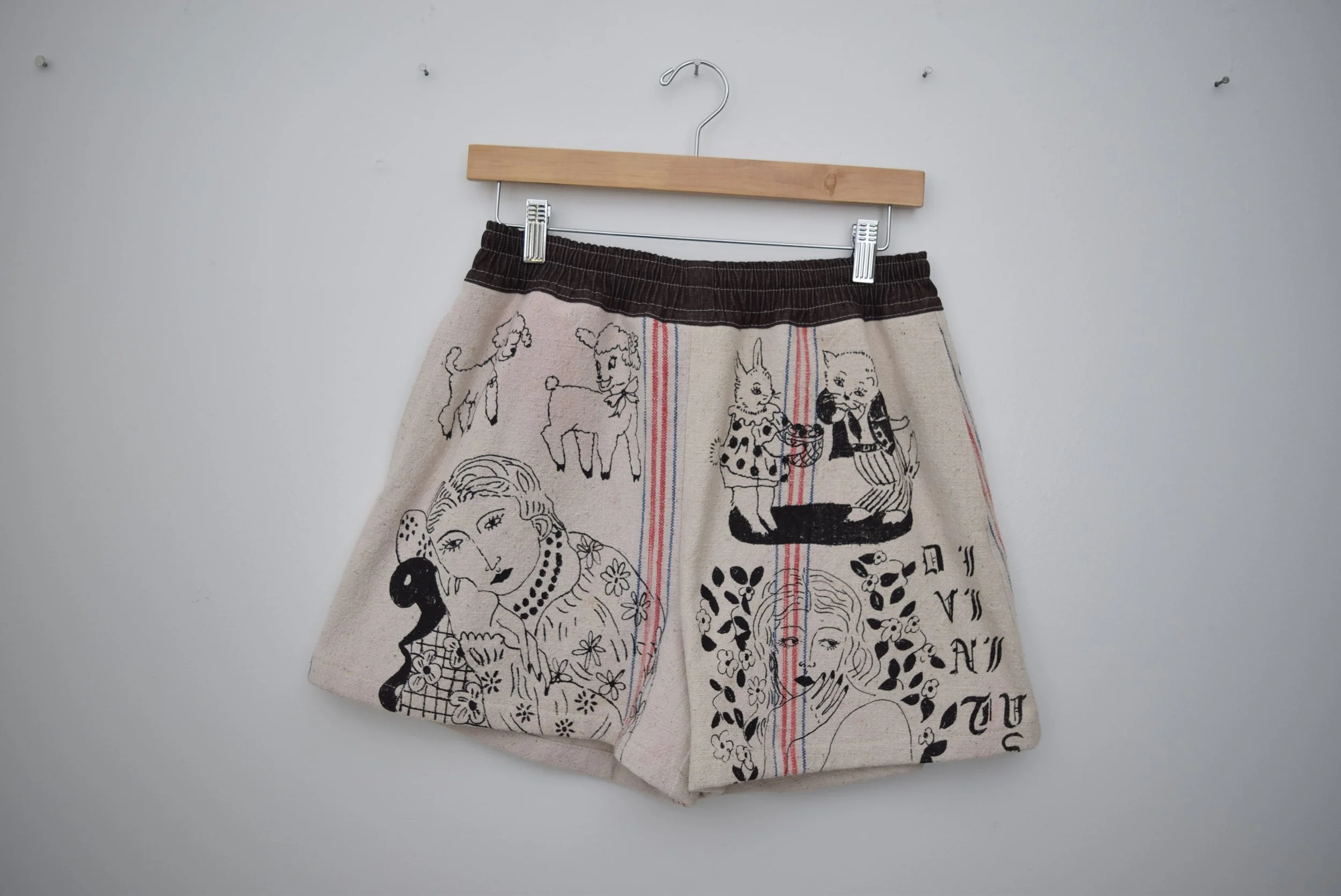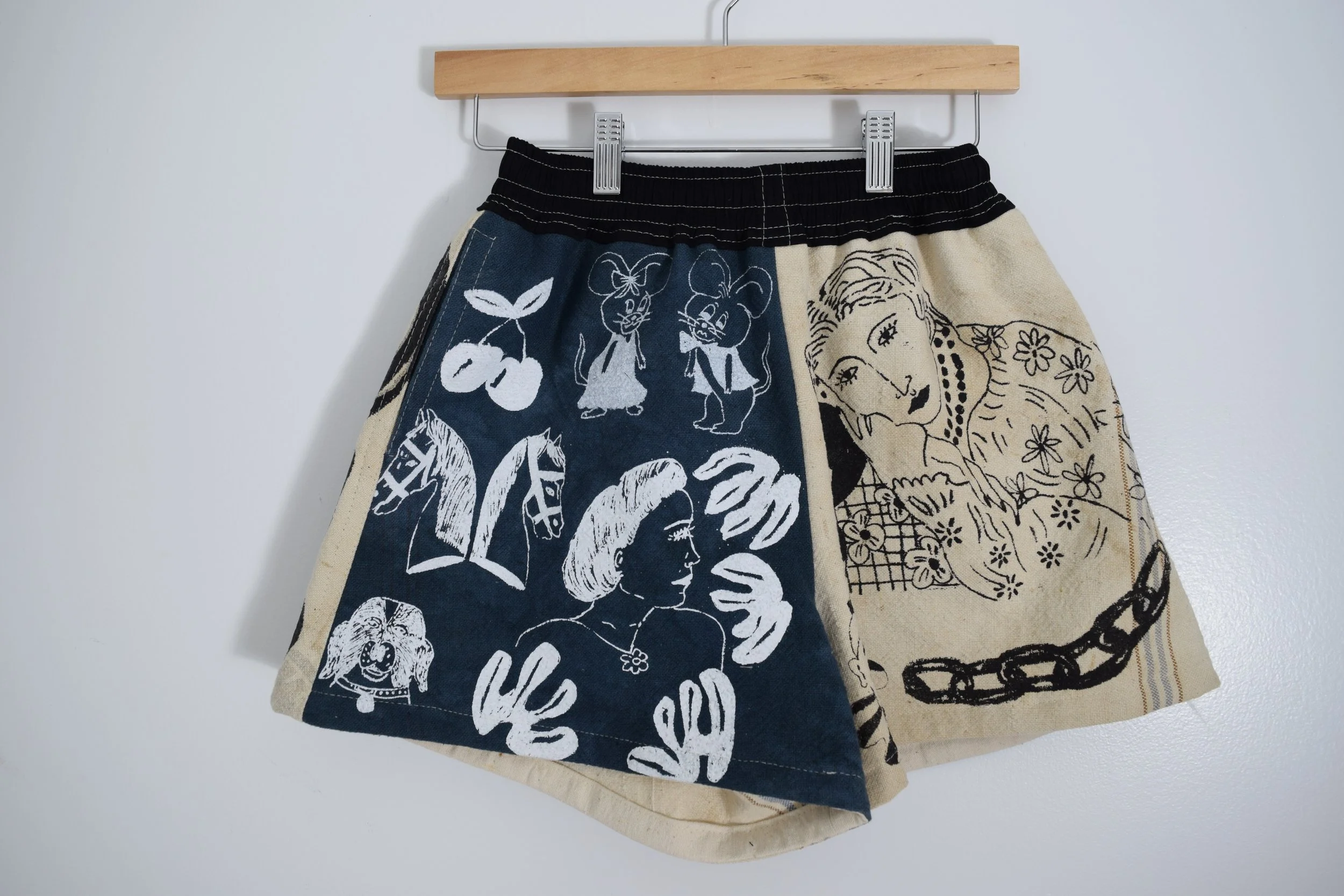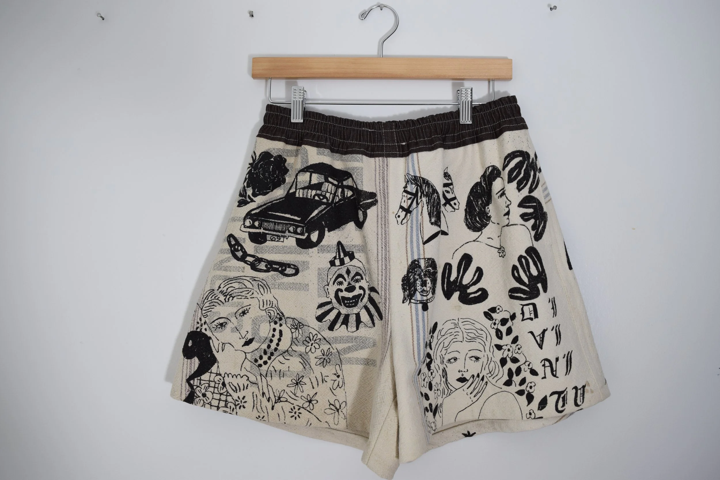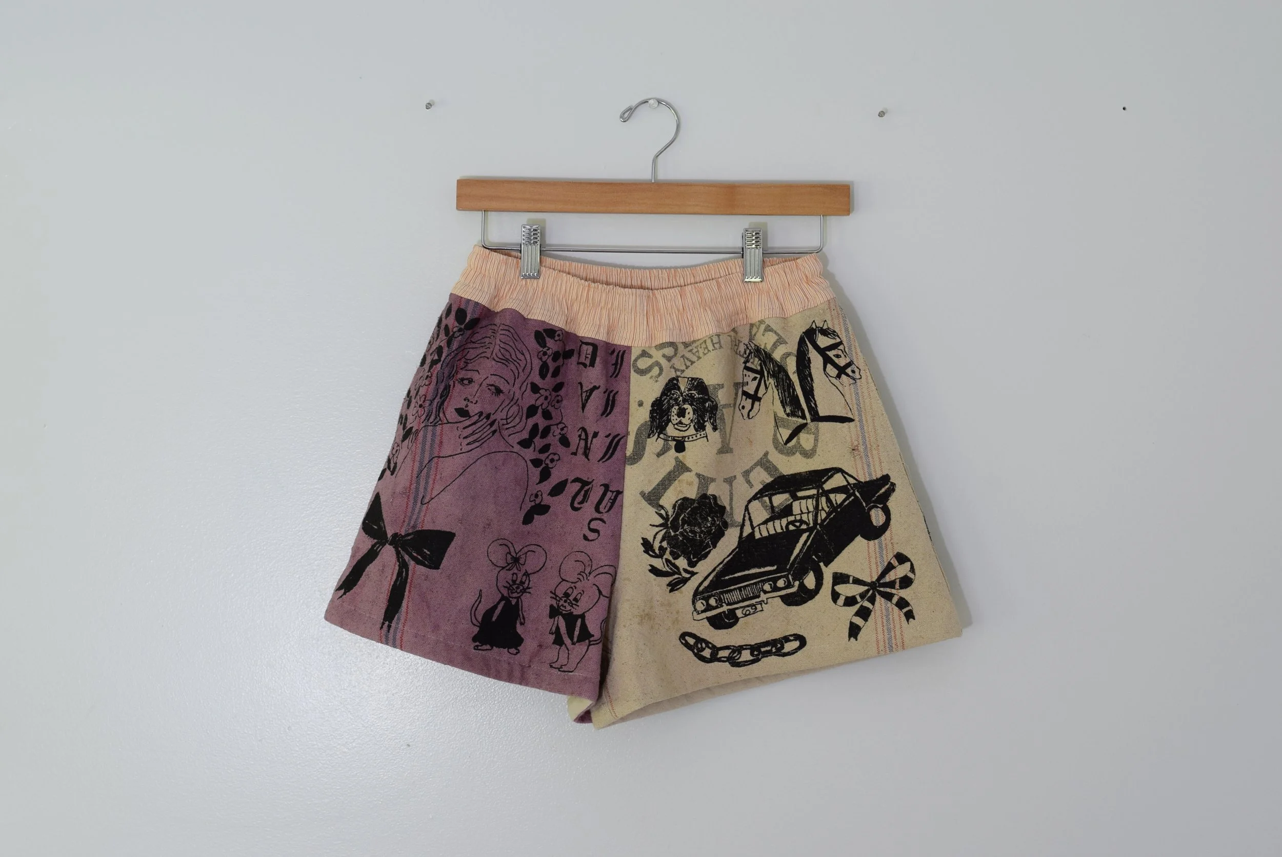 "dreams and delusions" Hand Drawn Cotton Feedsack Shorts size M