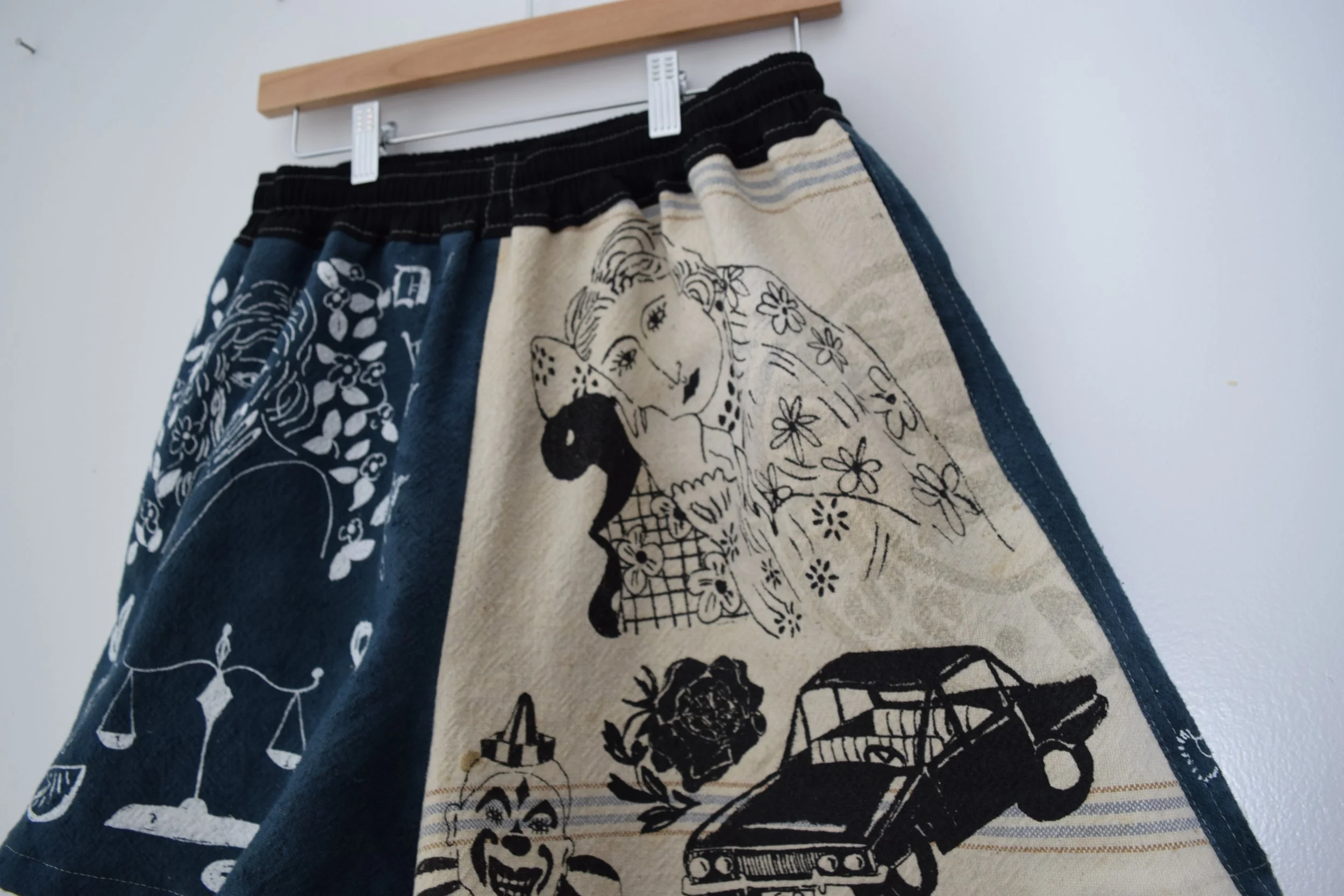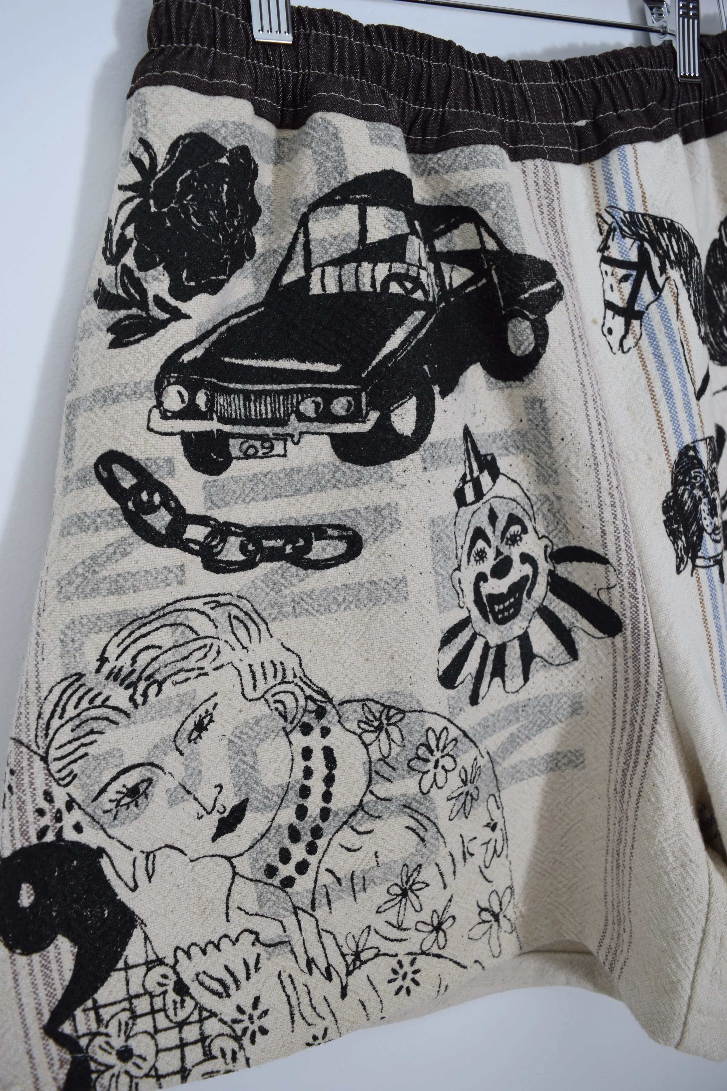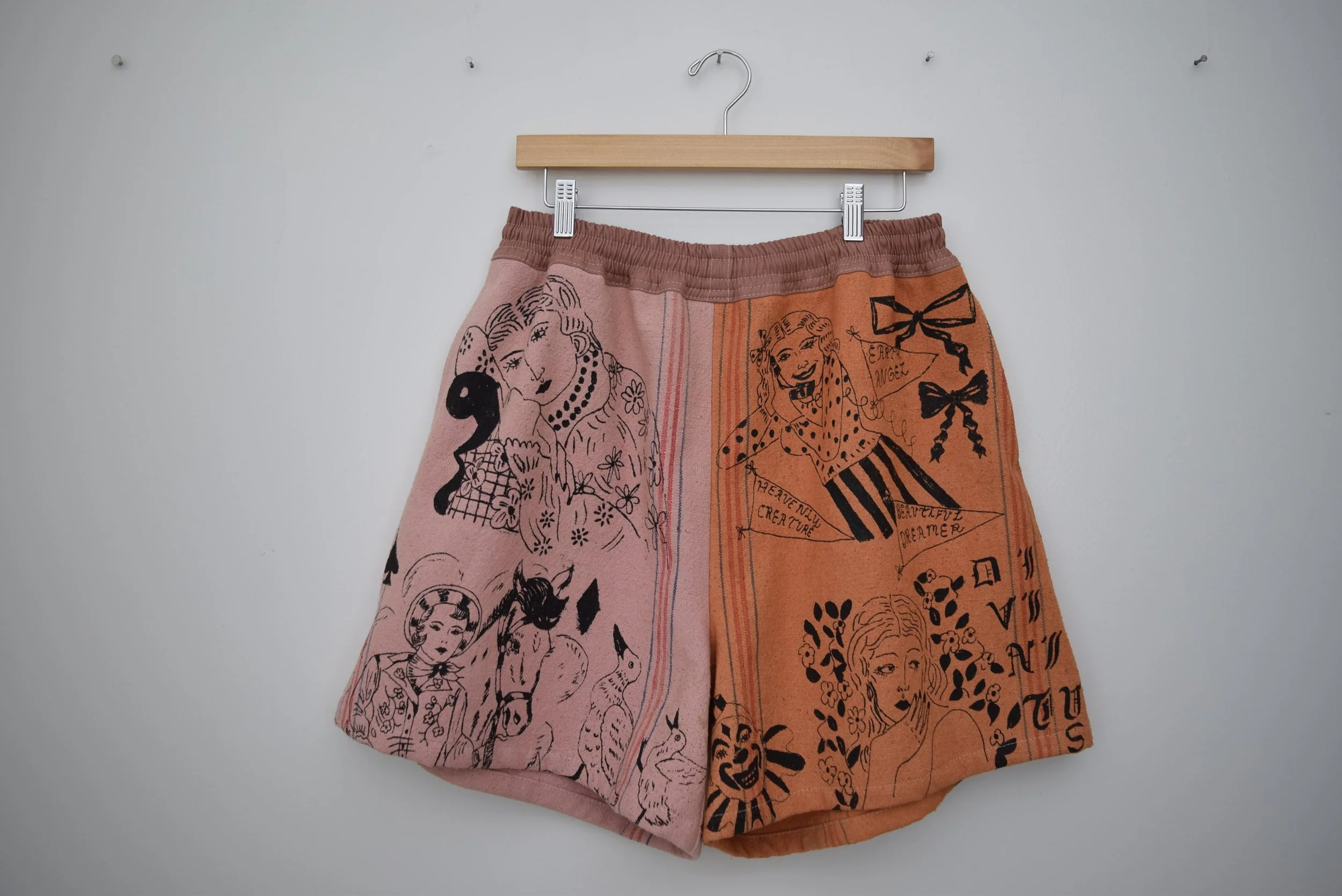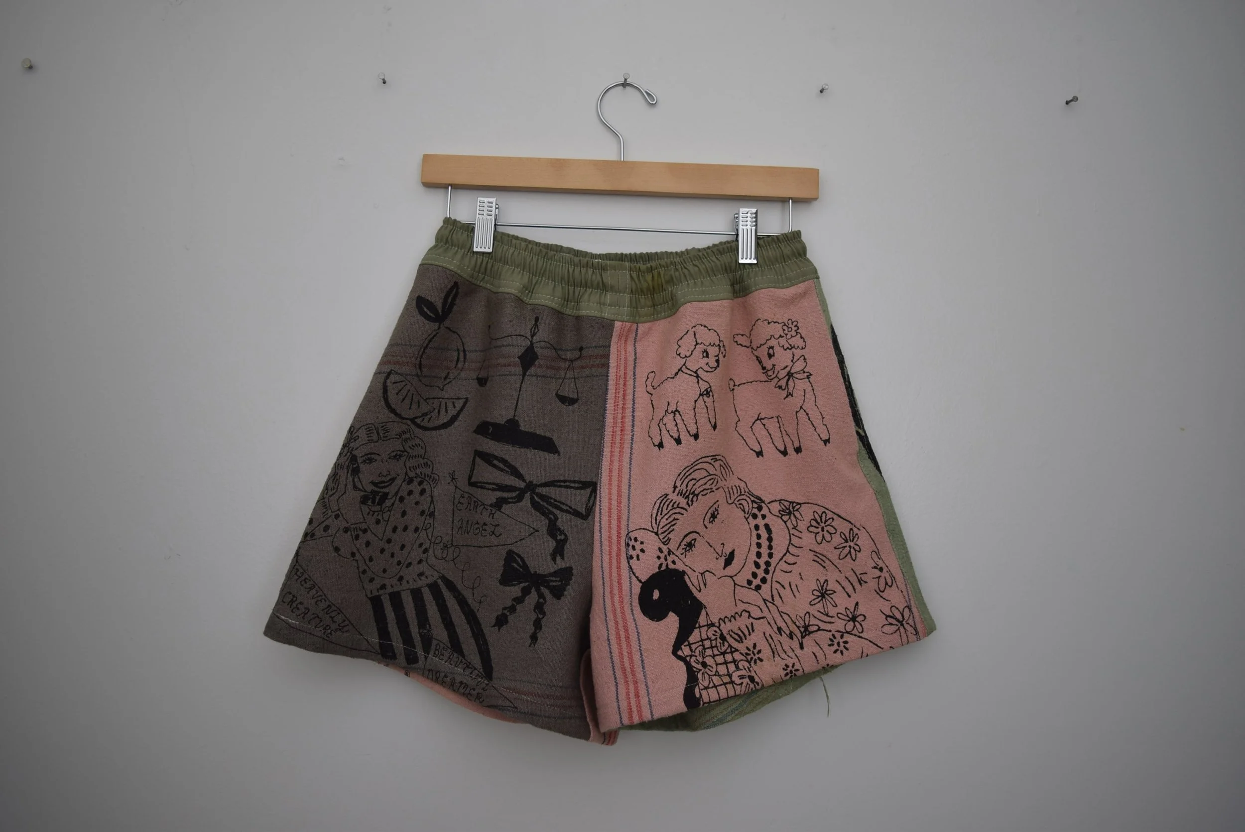 "dreams and delusions" Hand Drawn Cotton Feedsack Shorts size M