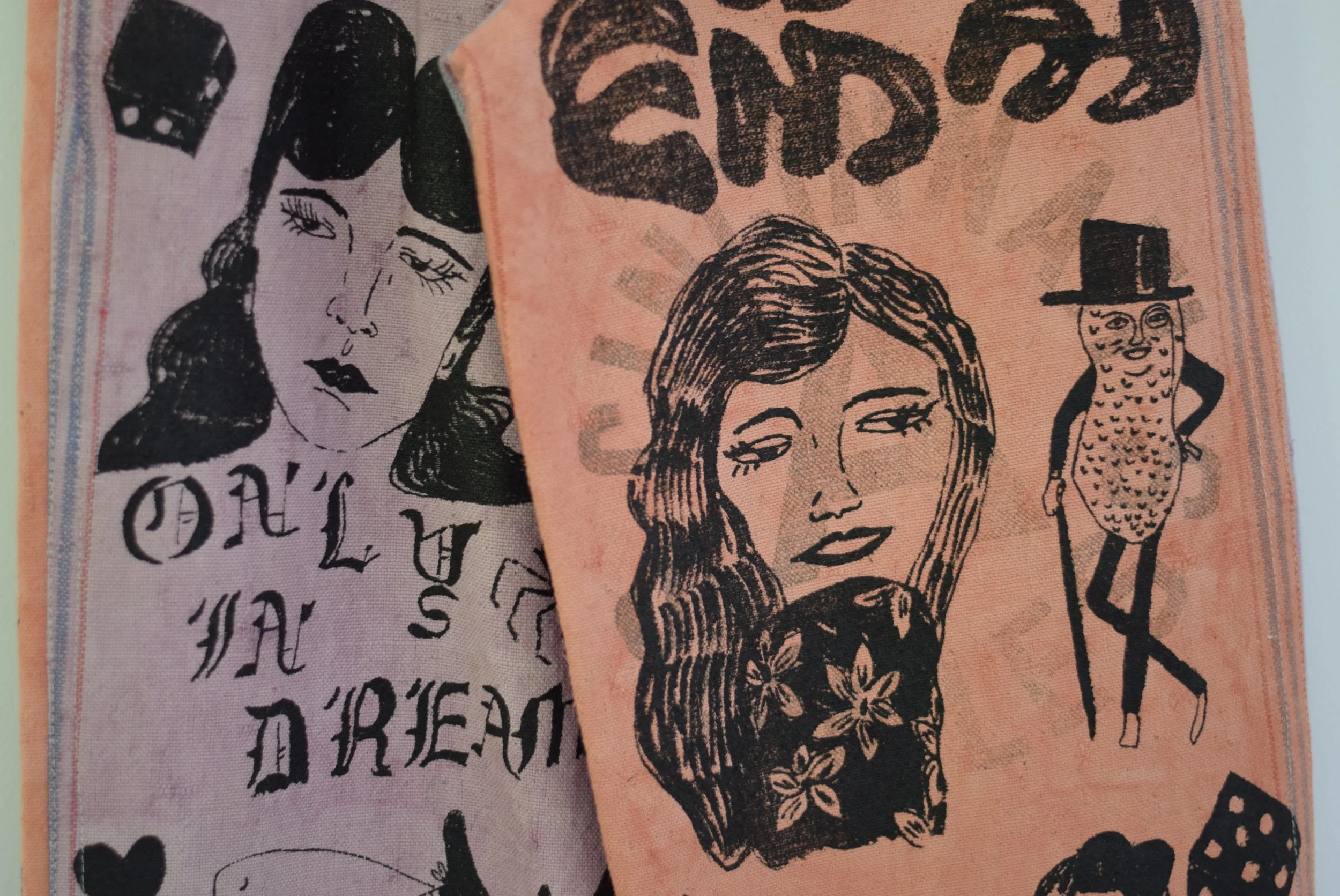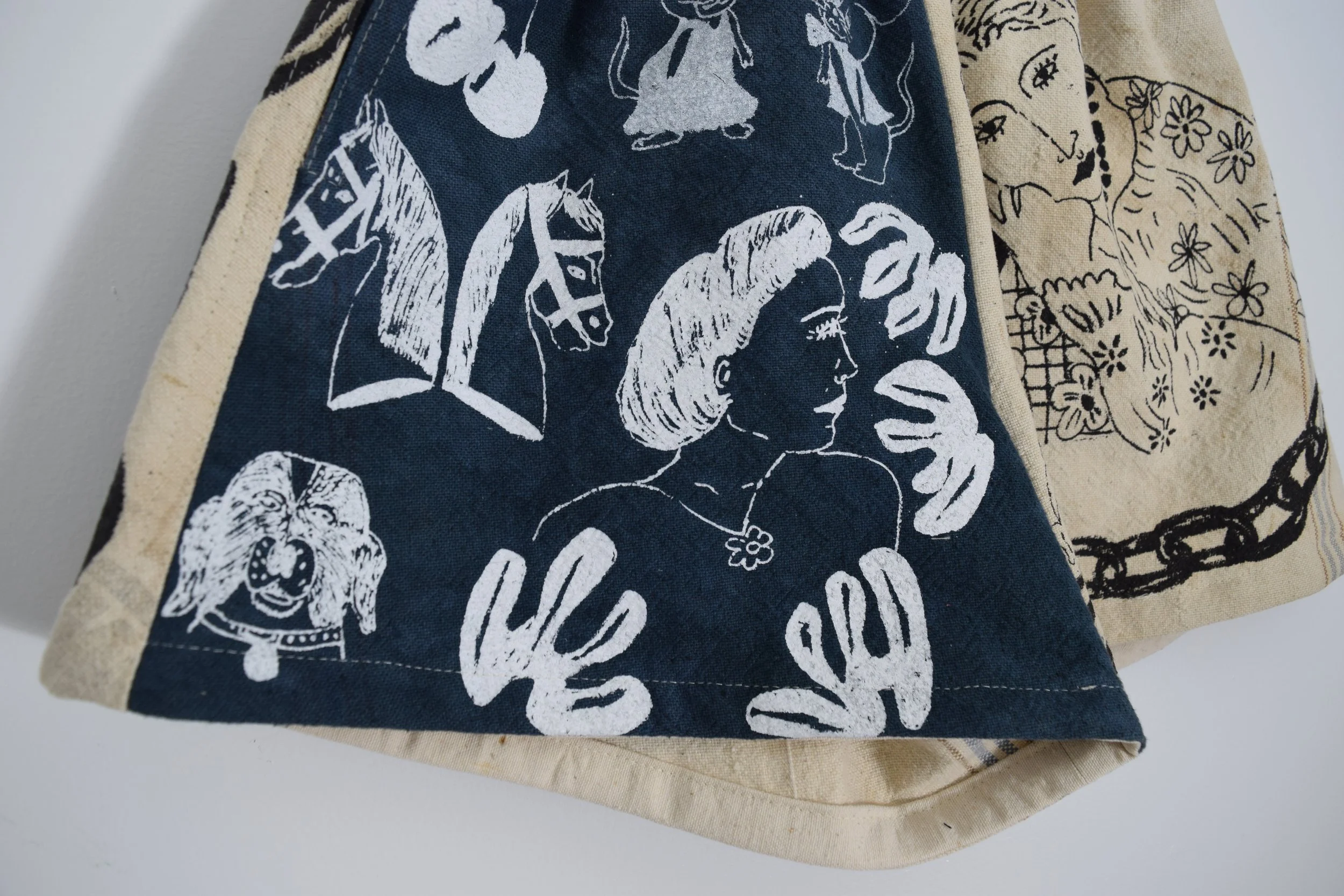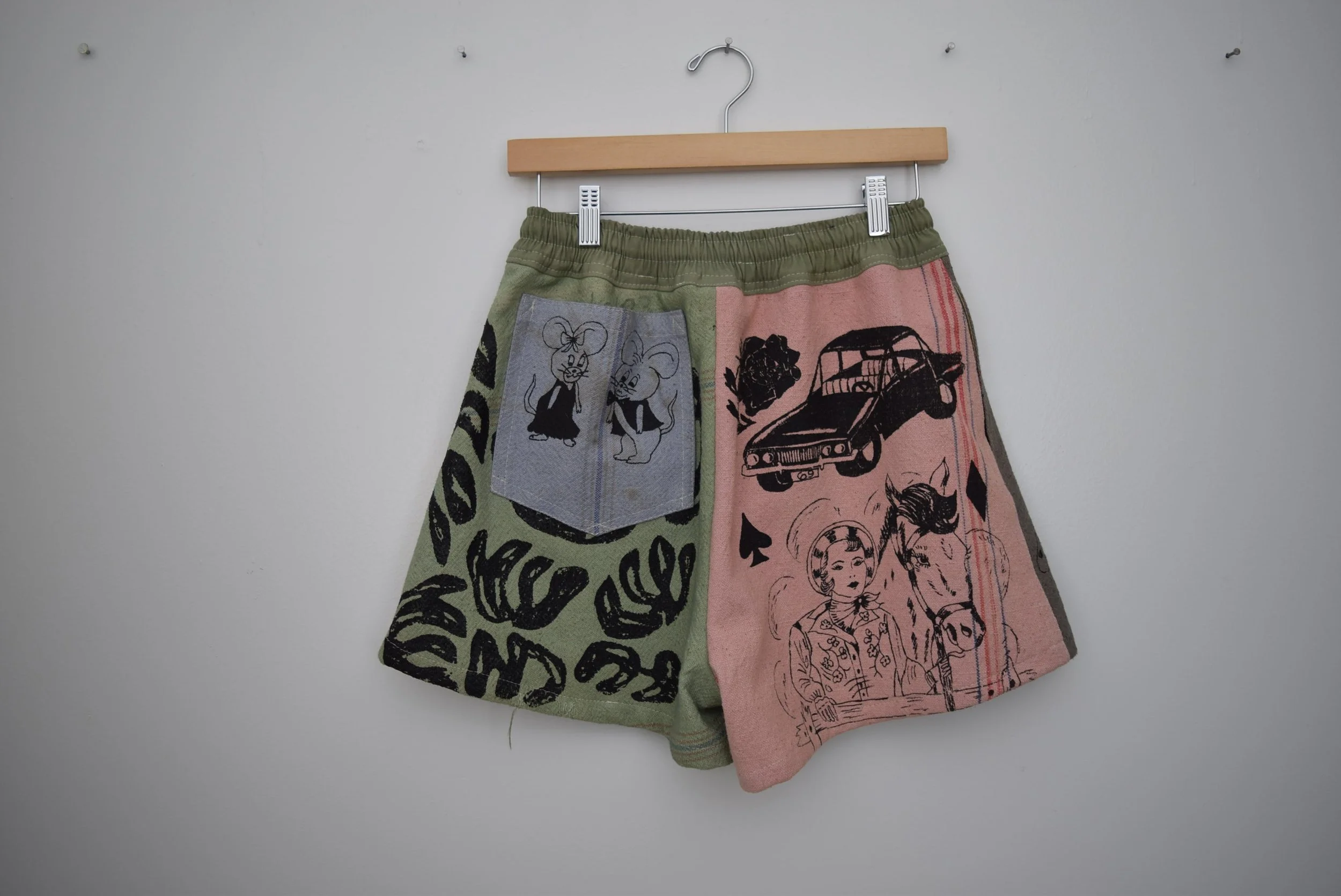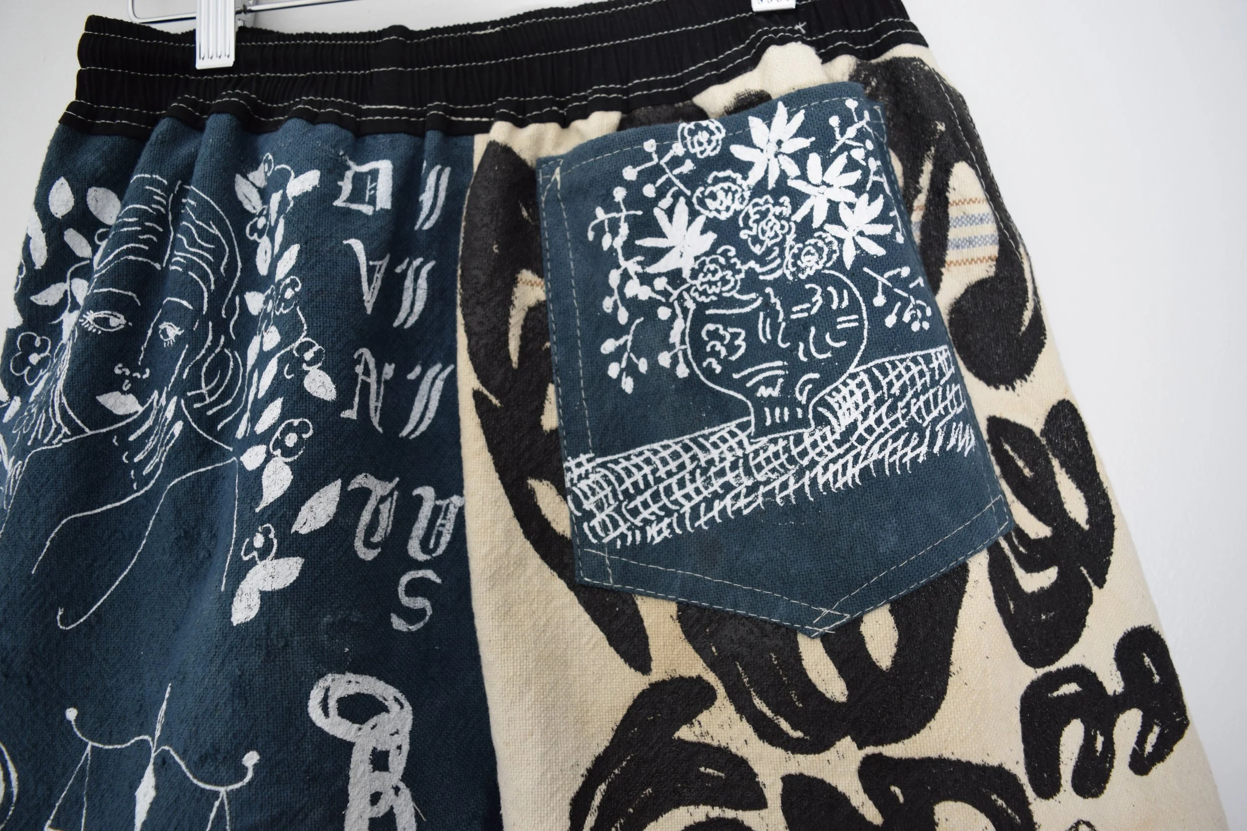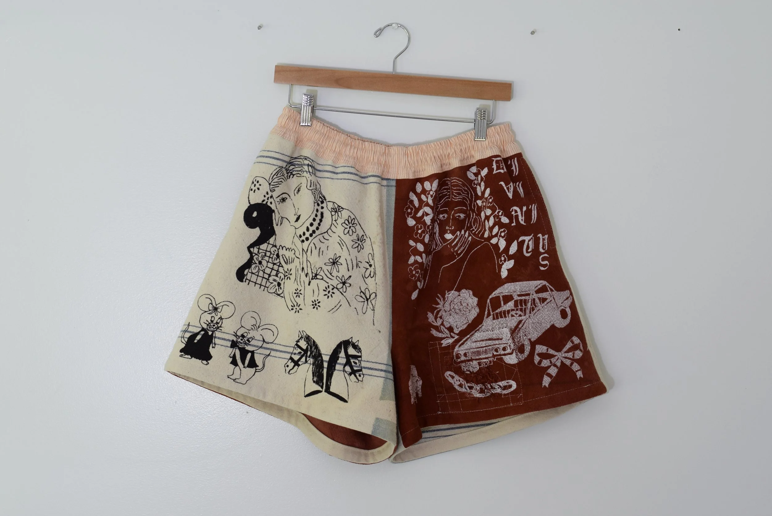 "dreams and delusions" Hand Drawn Cotton Feedsack Shorts size M