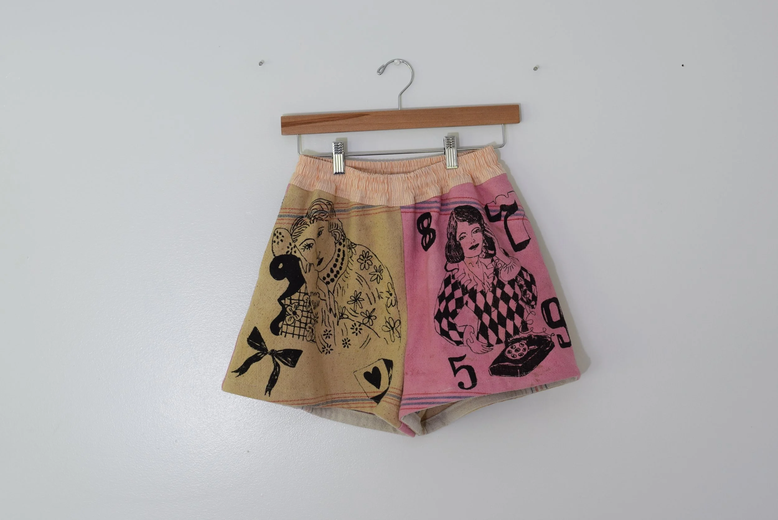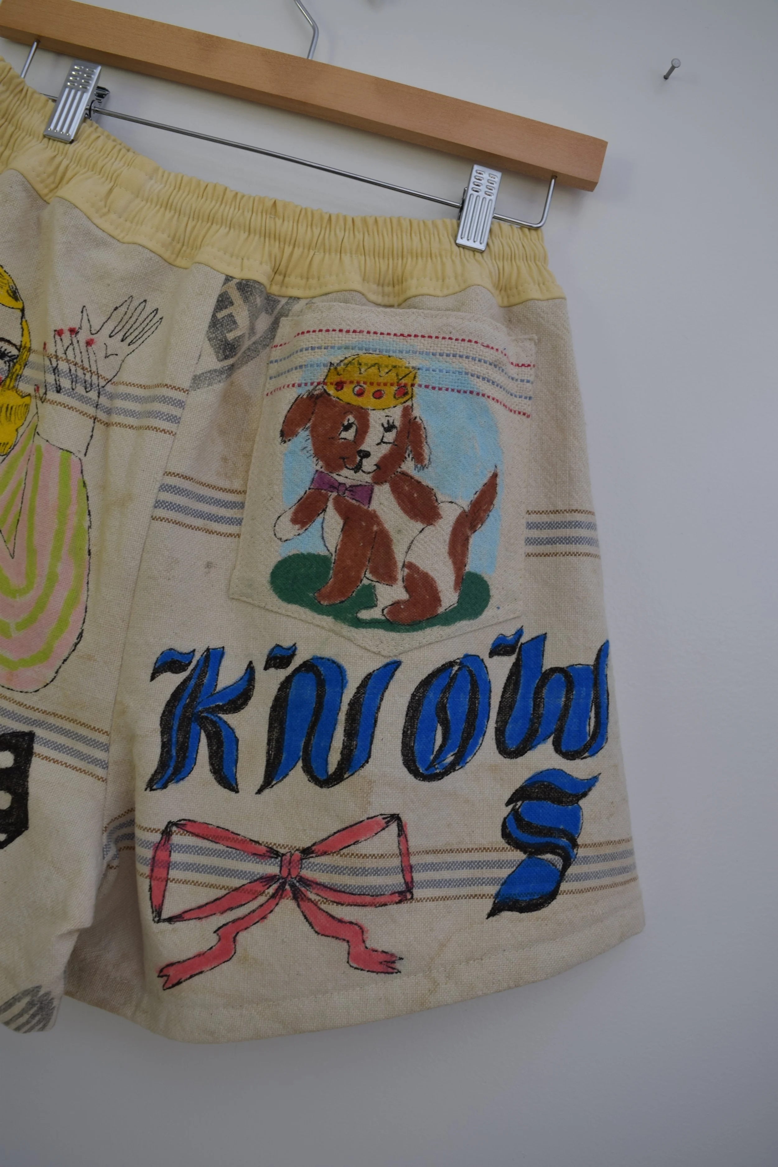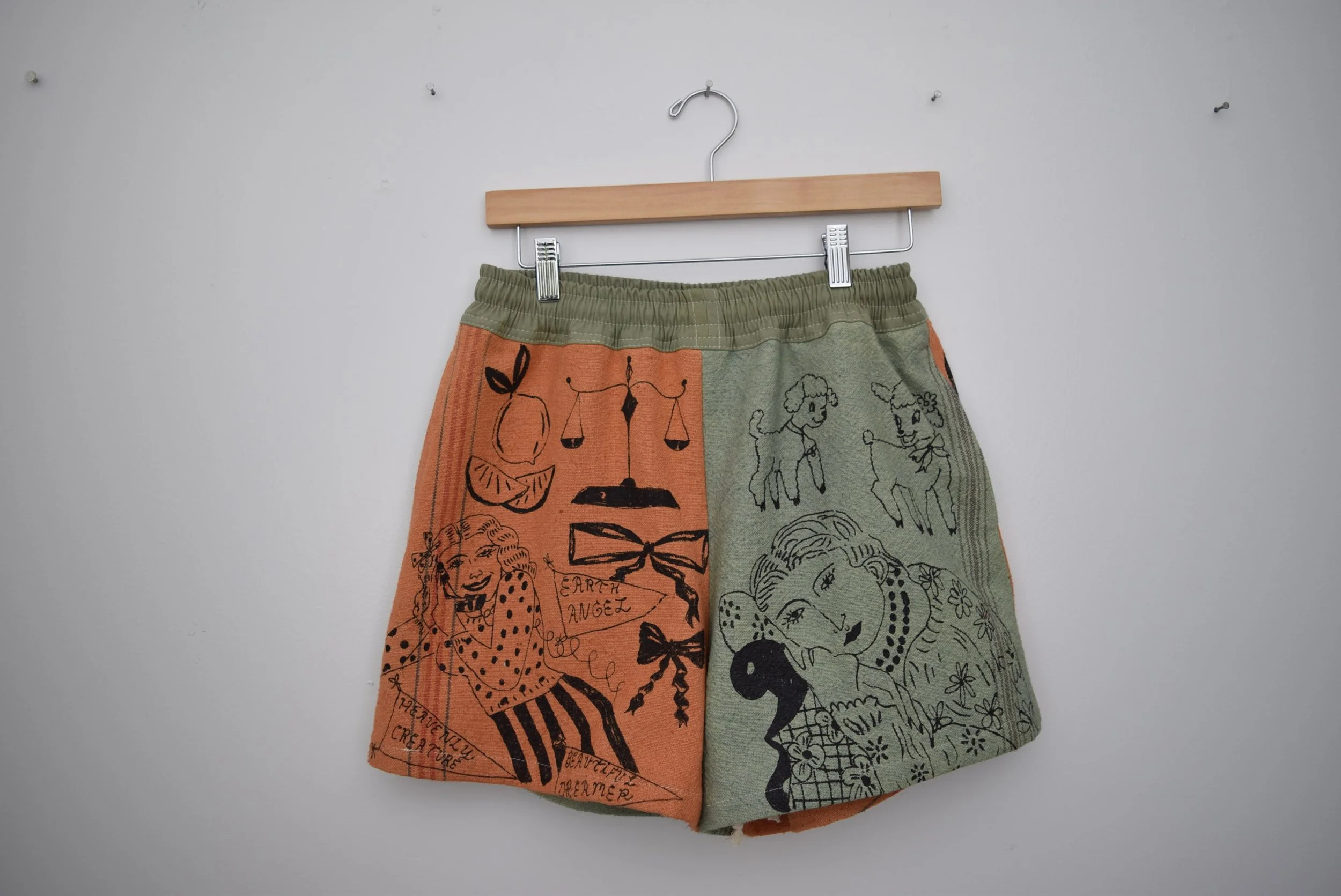 "heaven only knows" Hand Drawn Cotton Feedsack Shorts size M