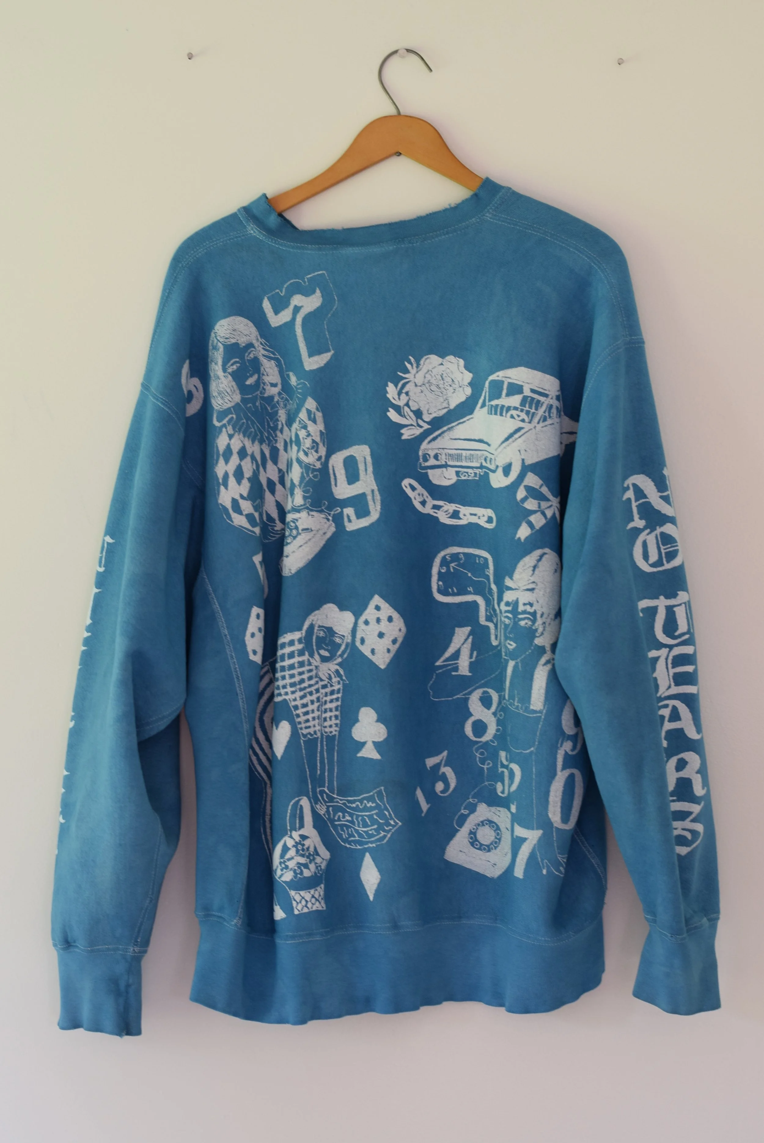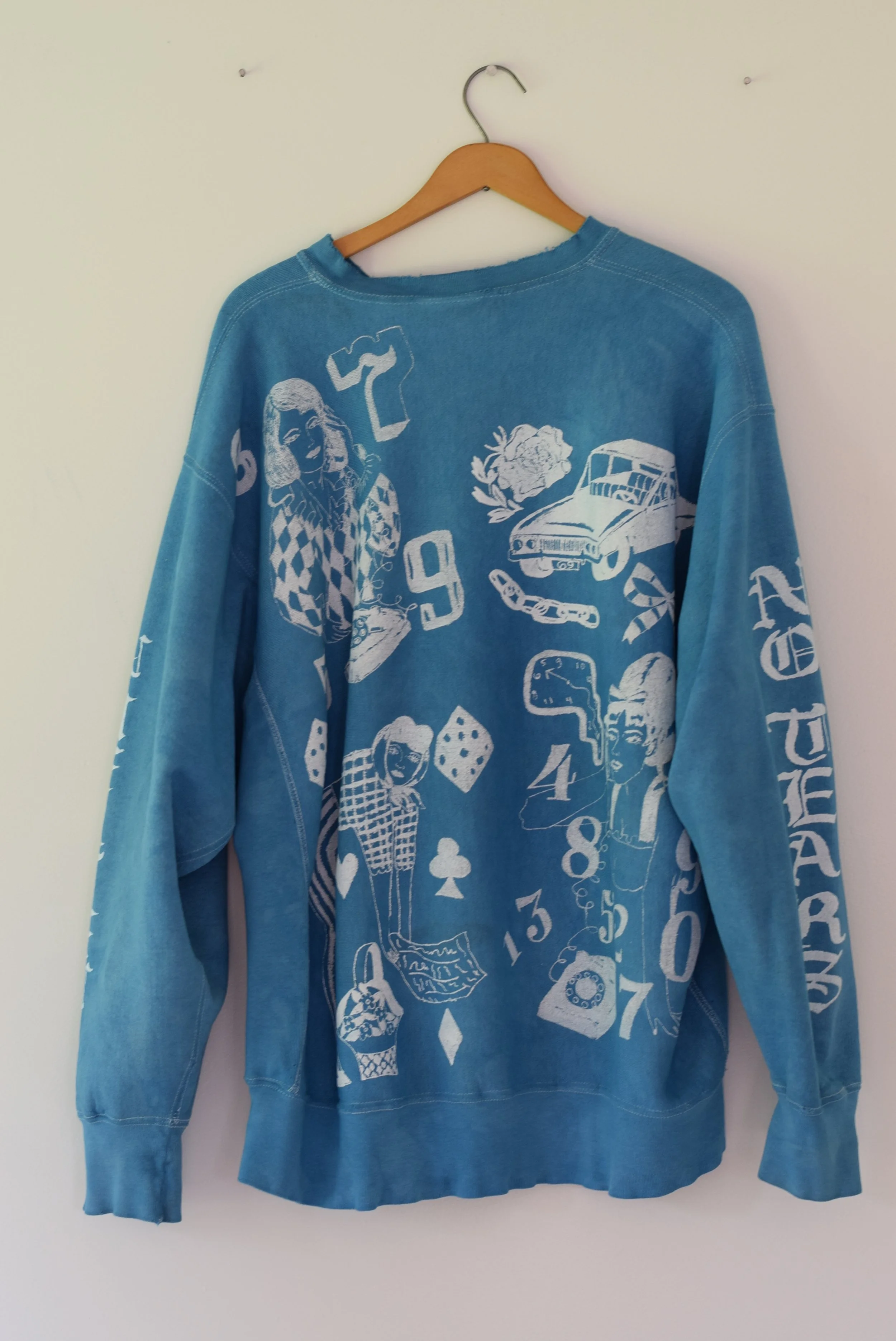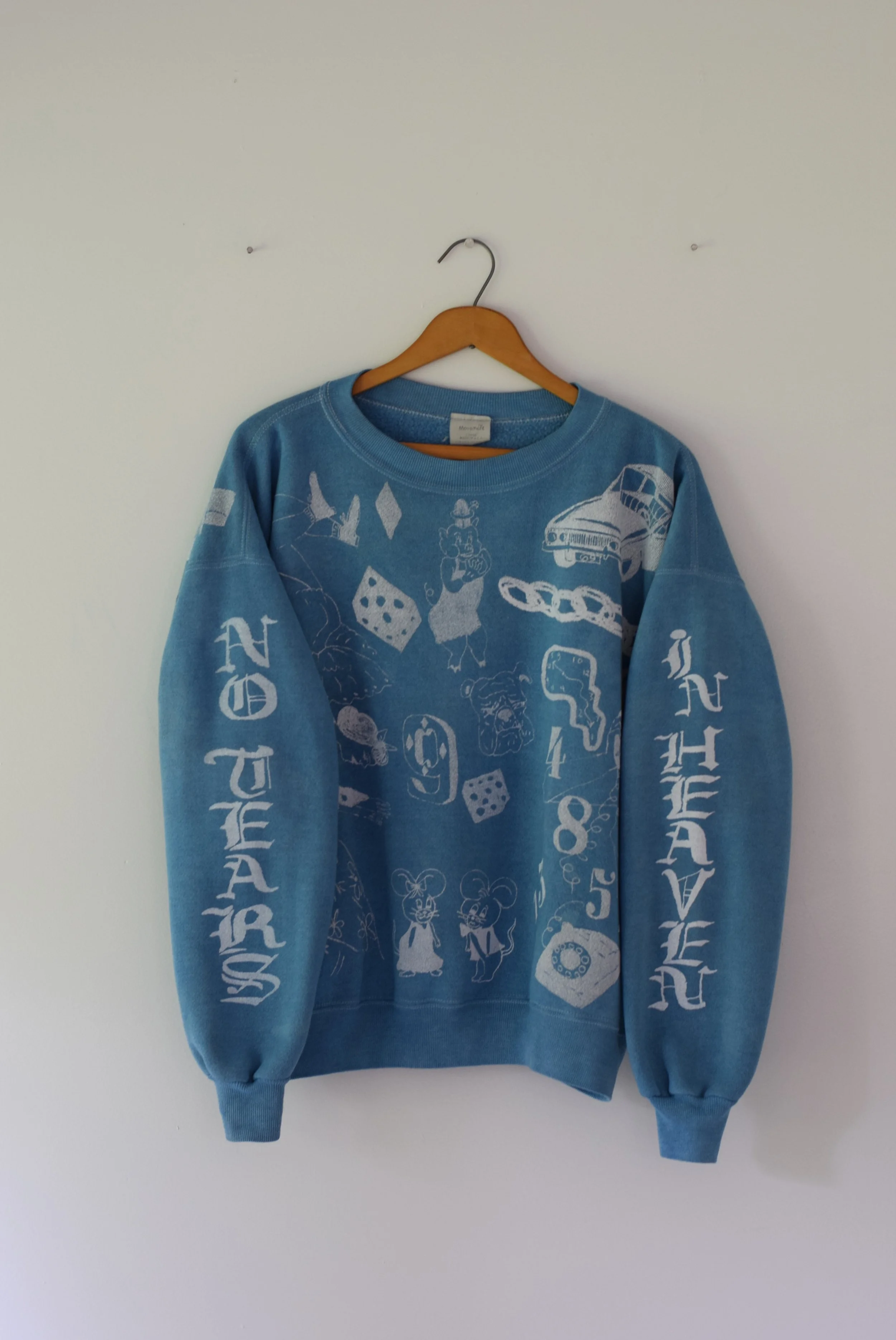 "No Tears in Heaven" bb blue screen printed vintage sweatshirt XS/S