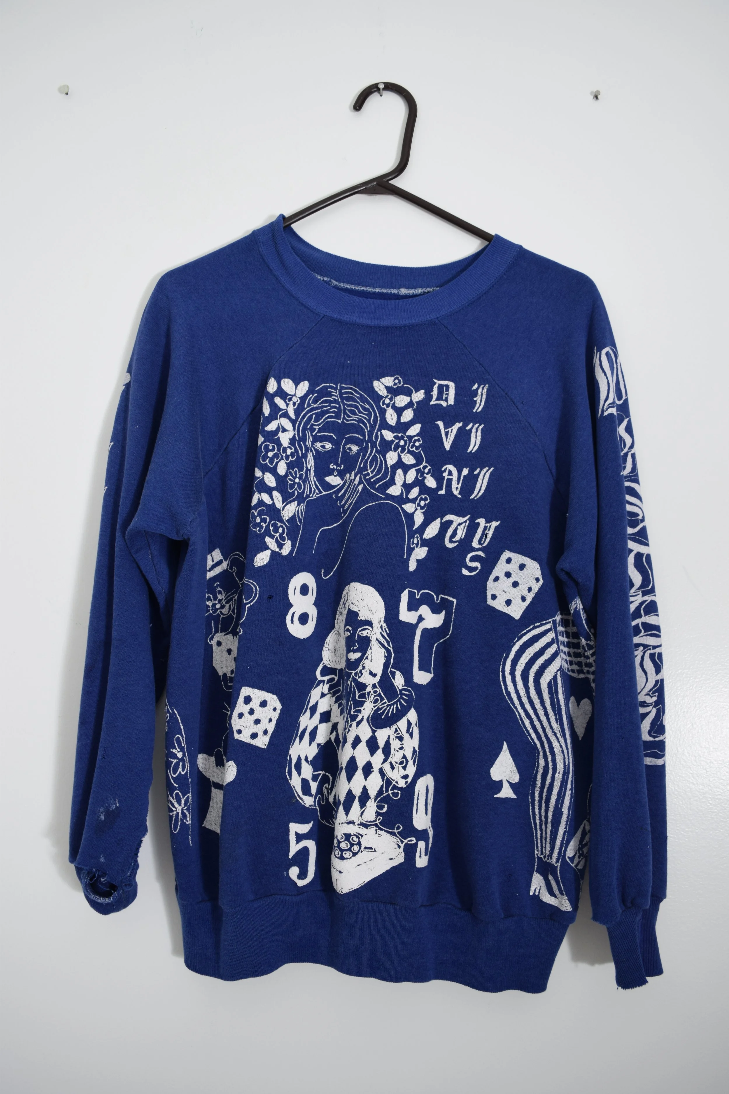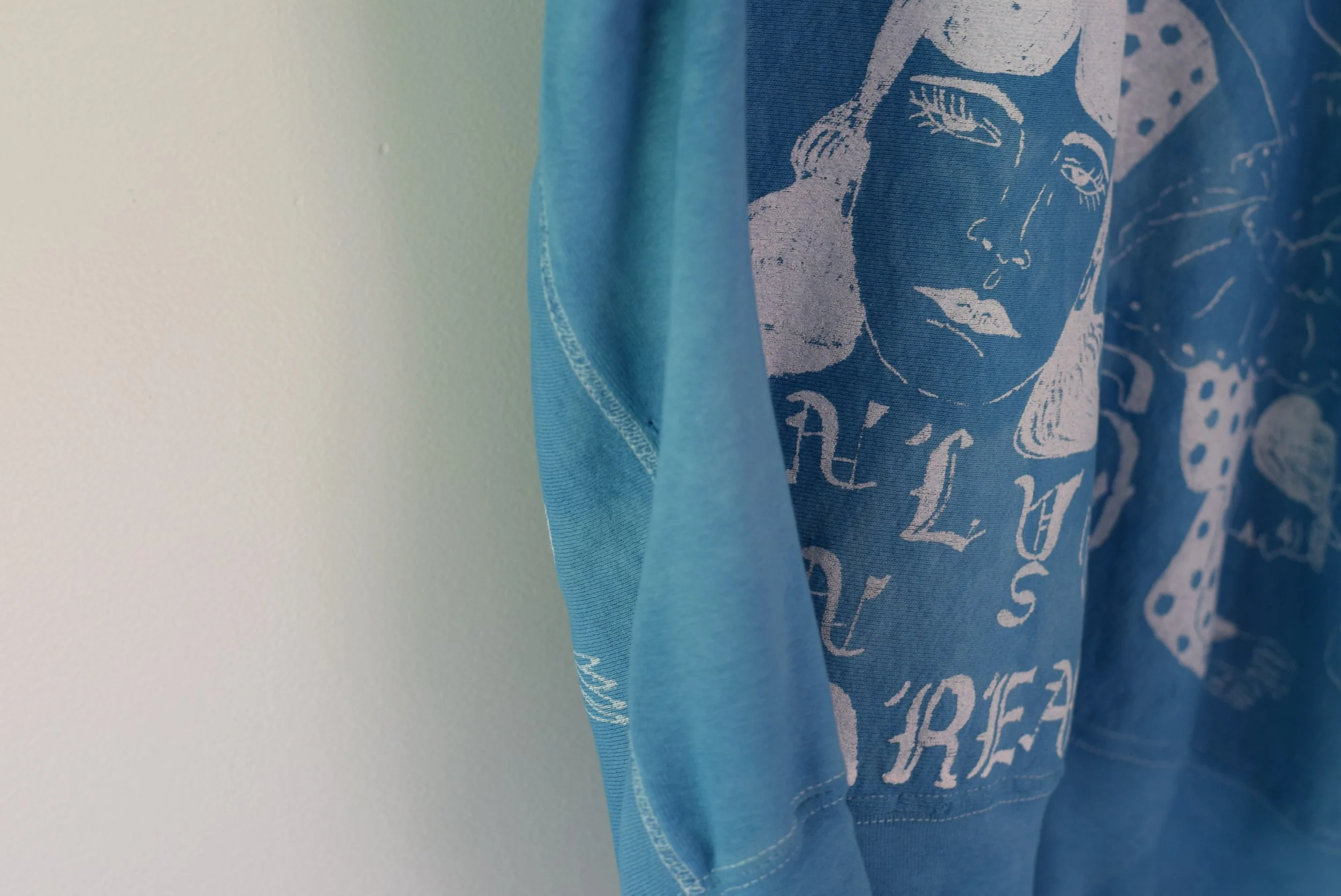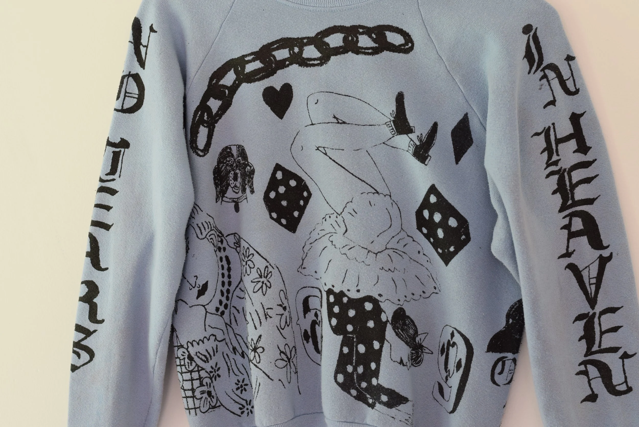 "No Tears in Heaven" bb blue screen printed vintage sweatshirt XS/S