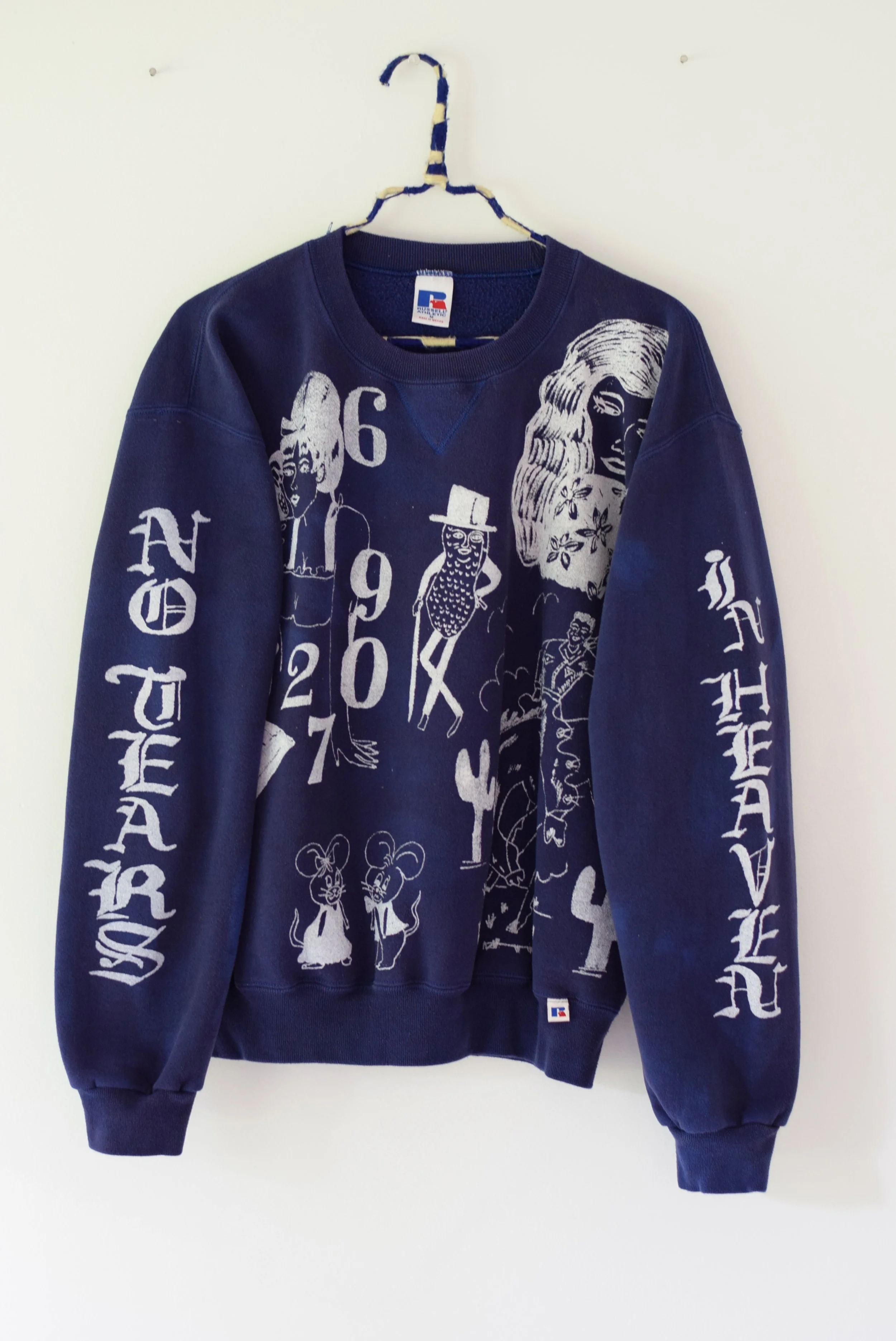 "No Tears in Heaven" navy screen printed vintage sweatshirt M/L