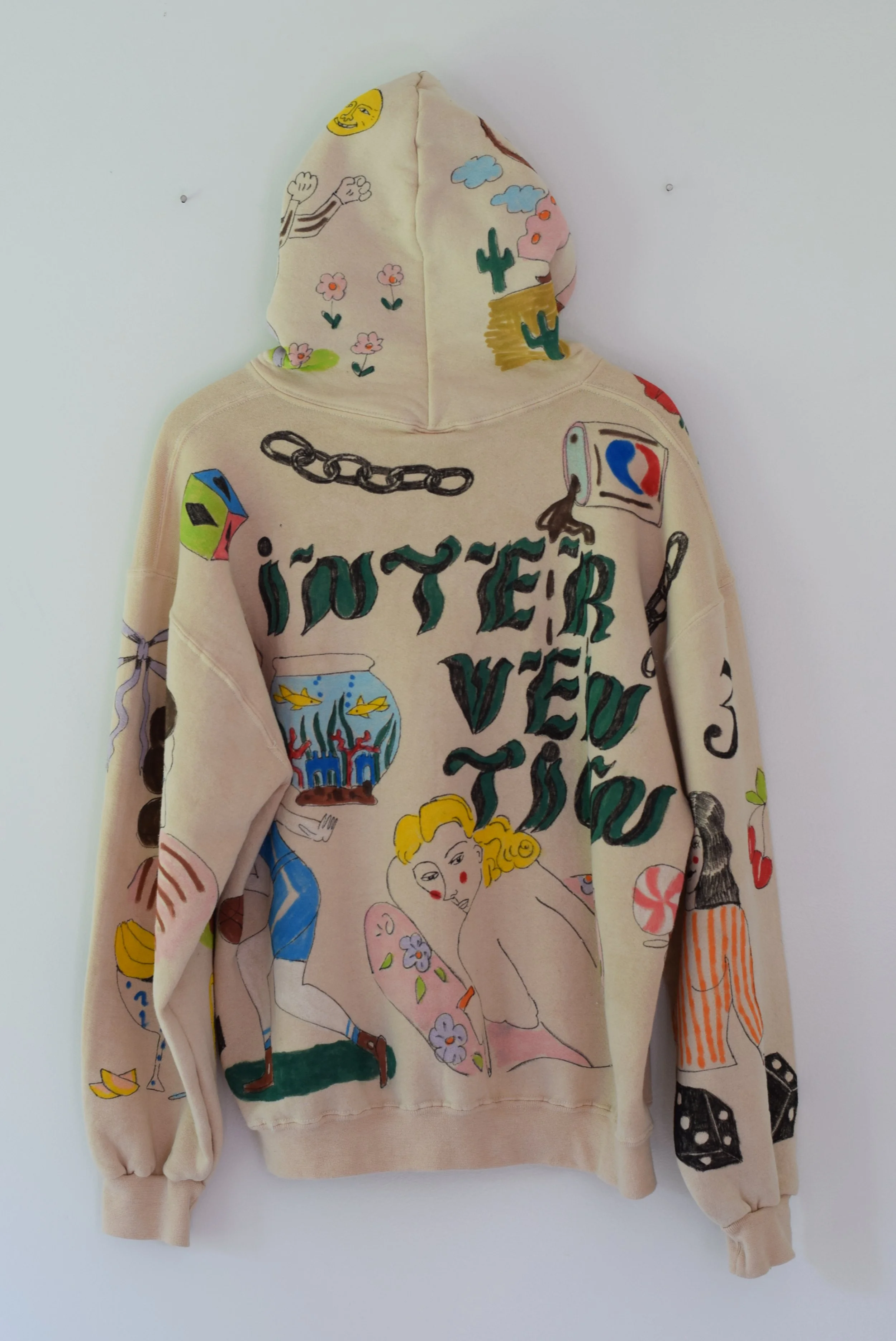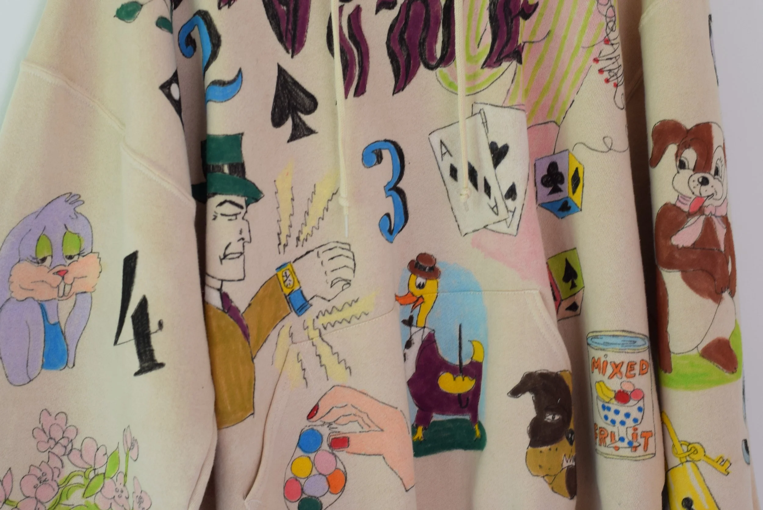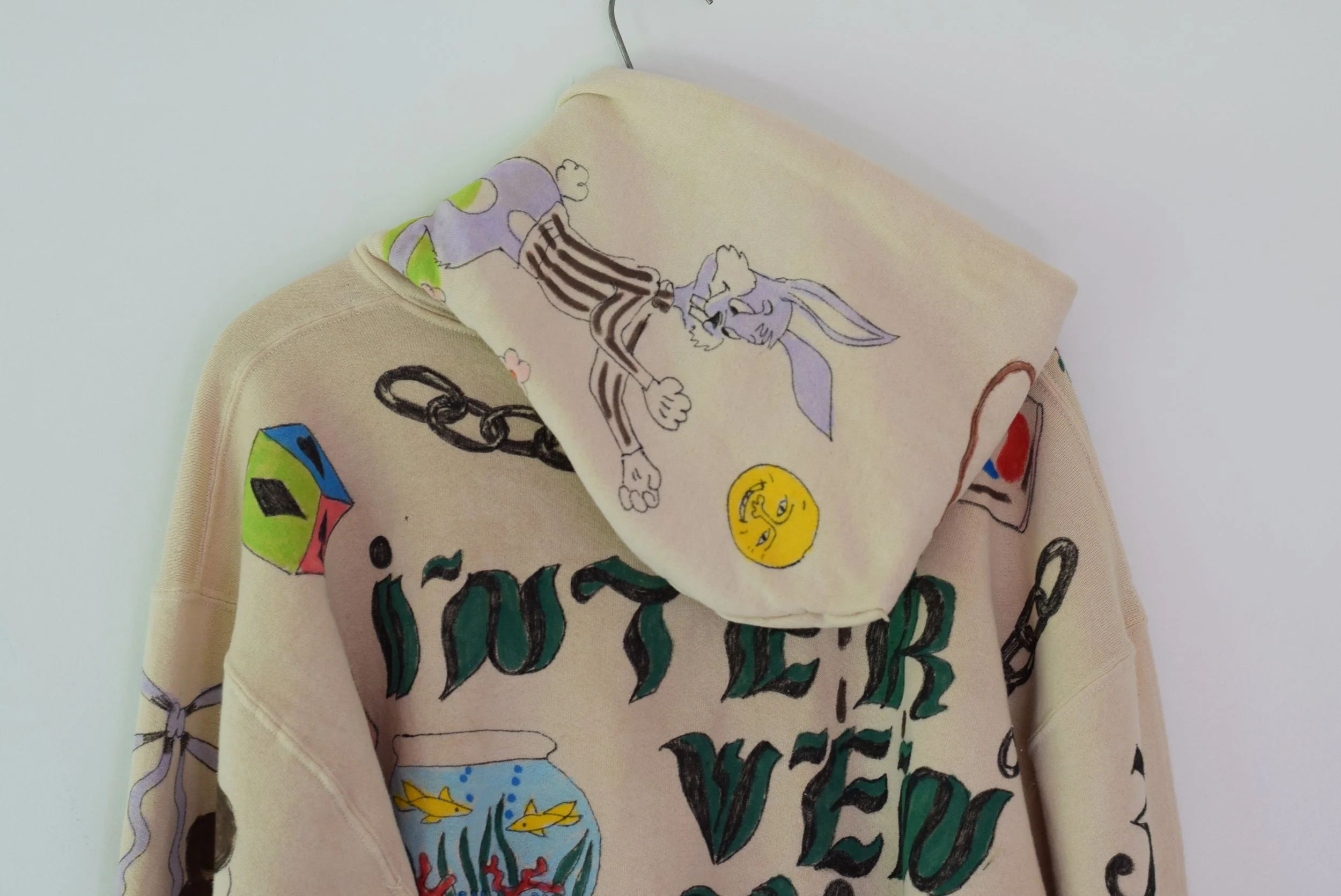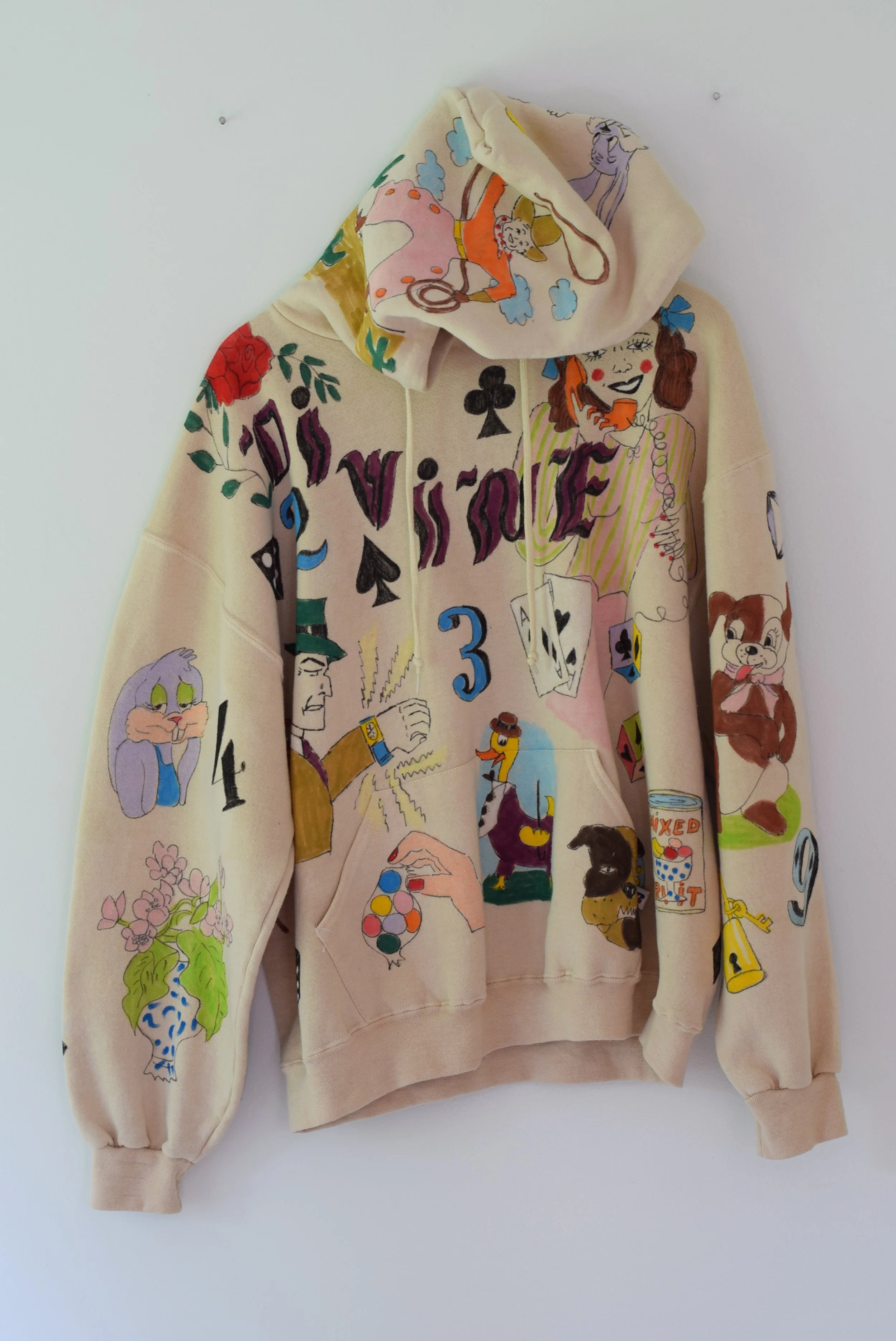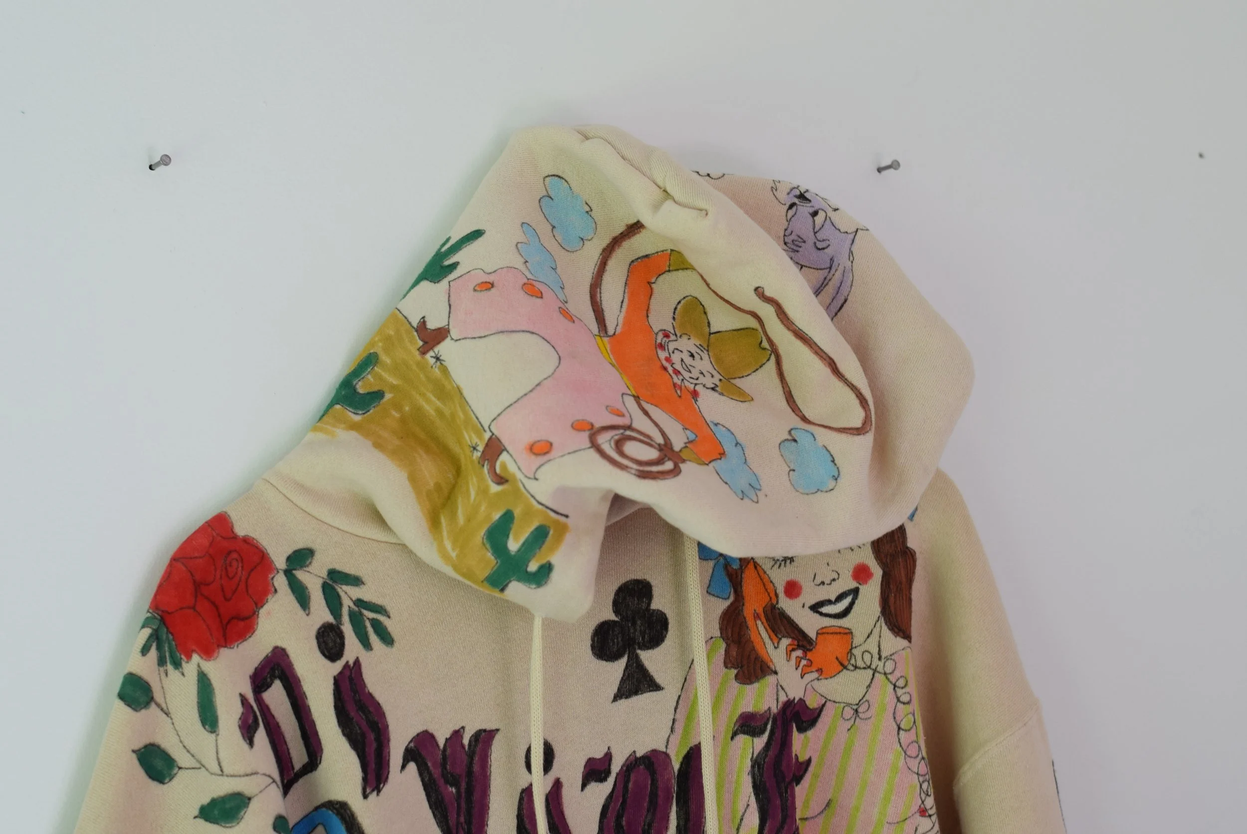 "Divine Intervention" ivory hand drawn vintage hoodie XL