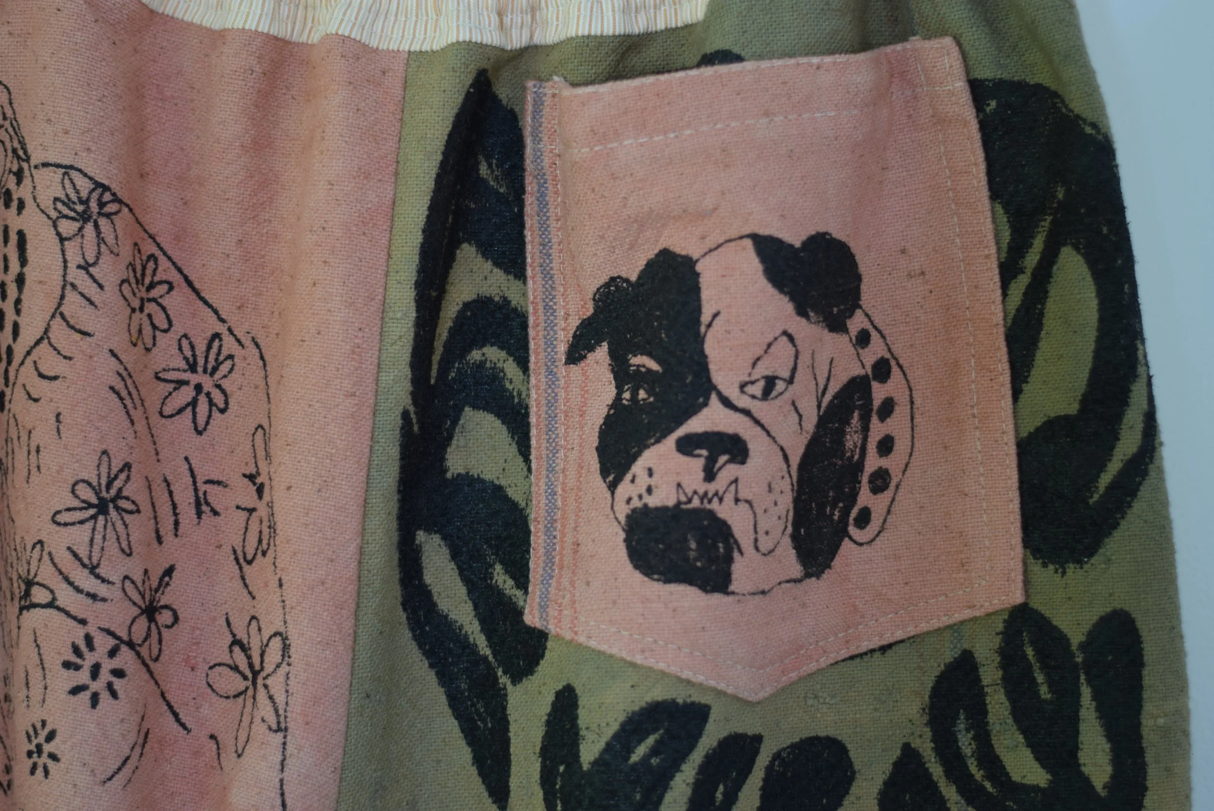 screen printed hand-made plain cotton feedsack shorts L/XL