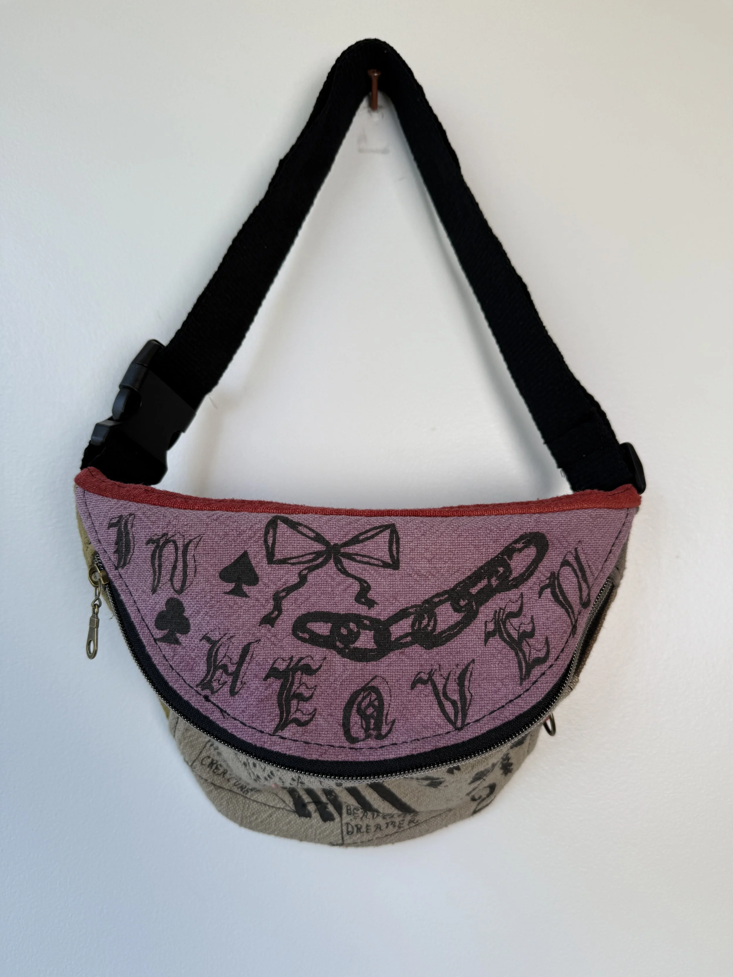 The strap is made long with the intent of being worn more commonly as a crossbody bag! If you intend on wearing it at the waist and require it to be smaller let us know after purchase and we can shorten it for you!