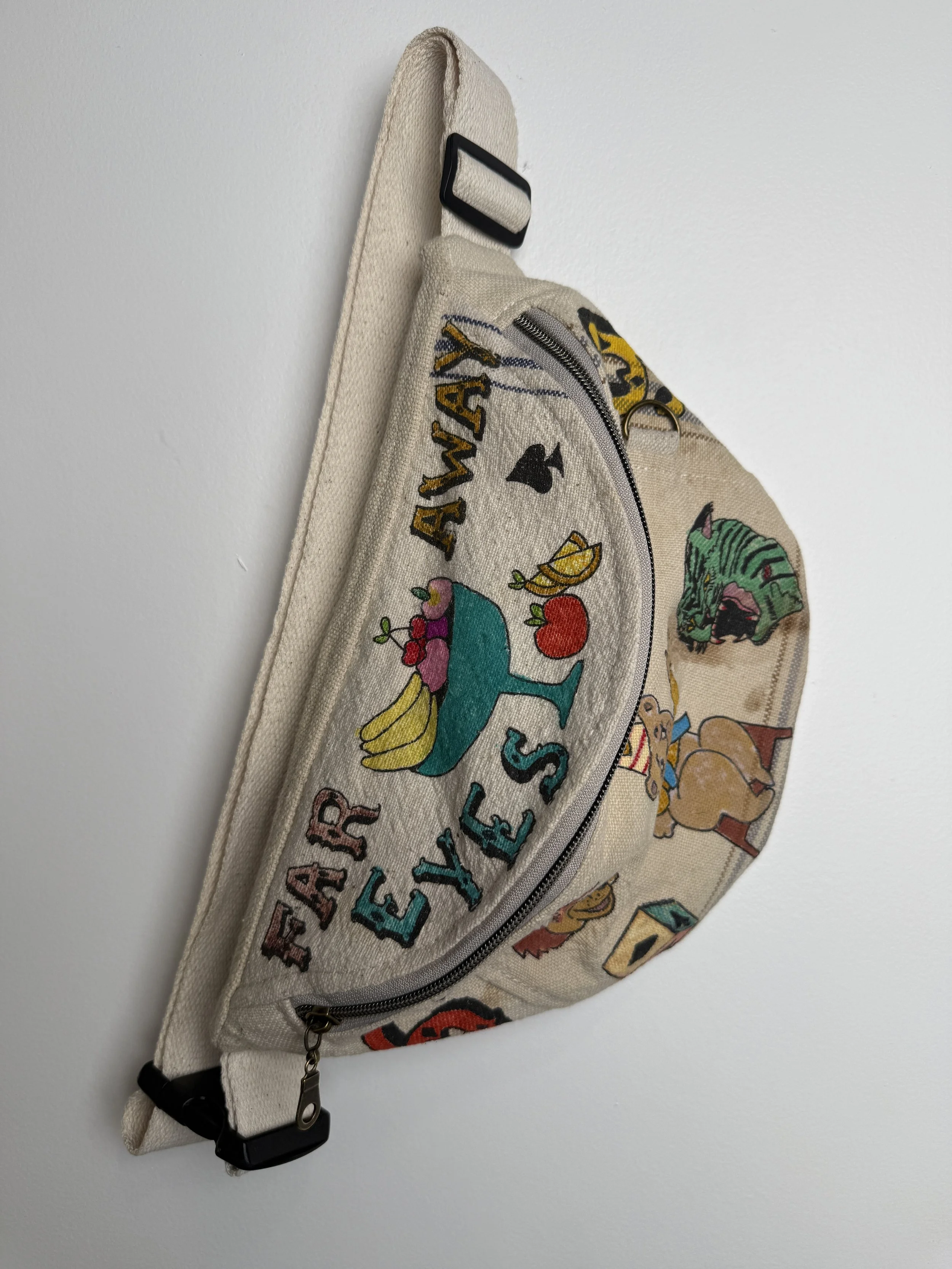 To maintain the vibrant color of the paint please spot wash when possible. If you must wash the Fanny Pack please do so by hand with mild detergent in cool water. Do not soak, rinse and hang to dry.