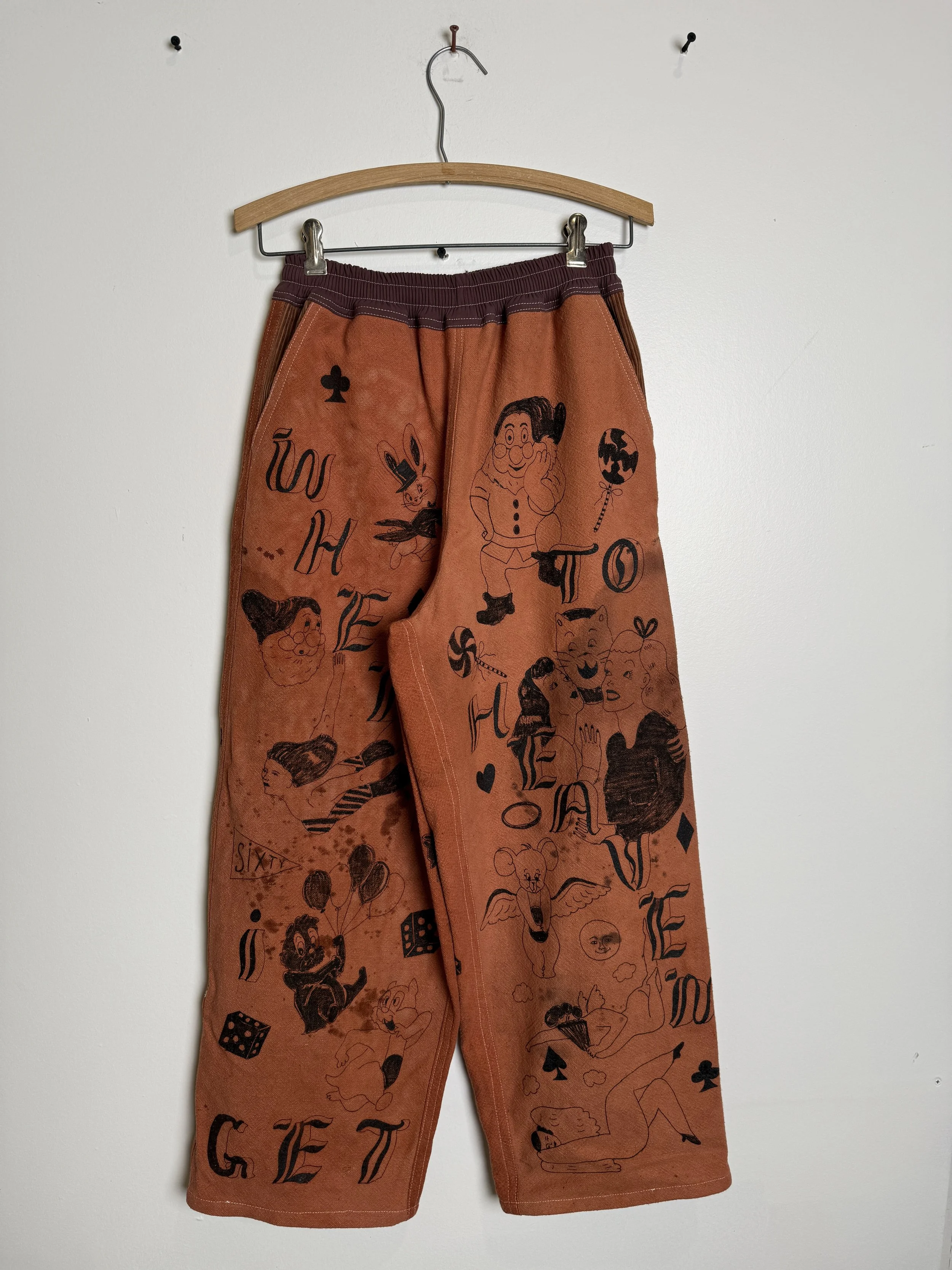 Naturally dyed with Madder Root, dyed corduroy pocket facings. Made of antique and vintage seamless feed sacks. Each feed sack used is unique and has its own history. The black outline of the imagery is screen printed in Brooklyn by Kingsland. Then hand painted, hand-dyed and assembled in our home studio outside of St Louis, MO.