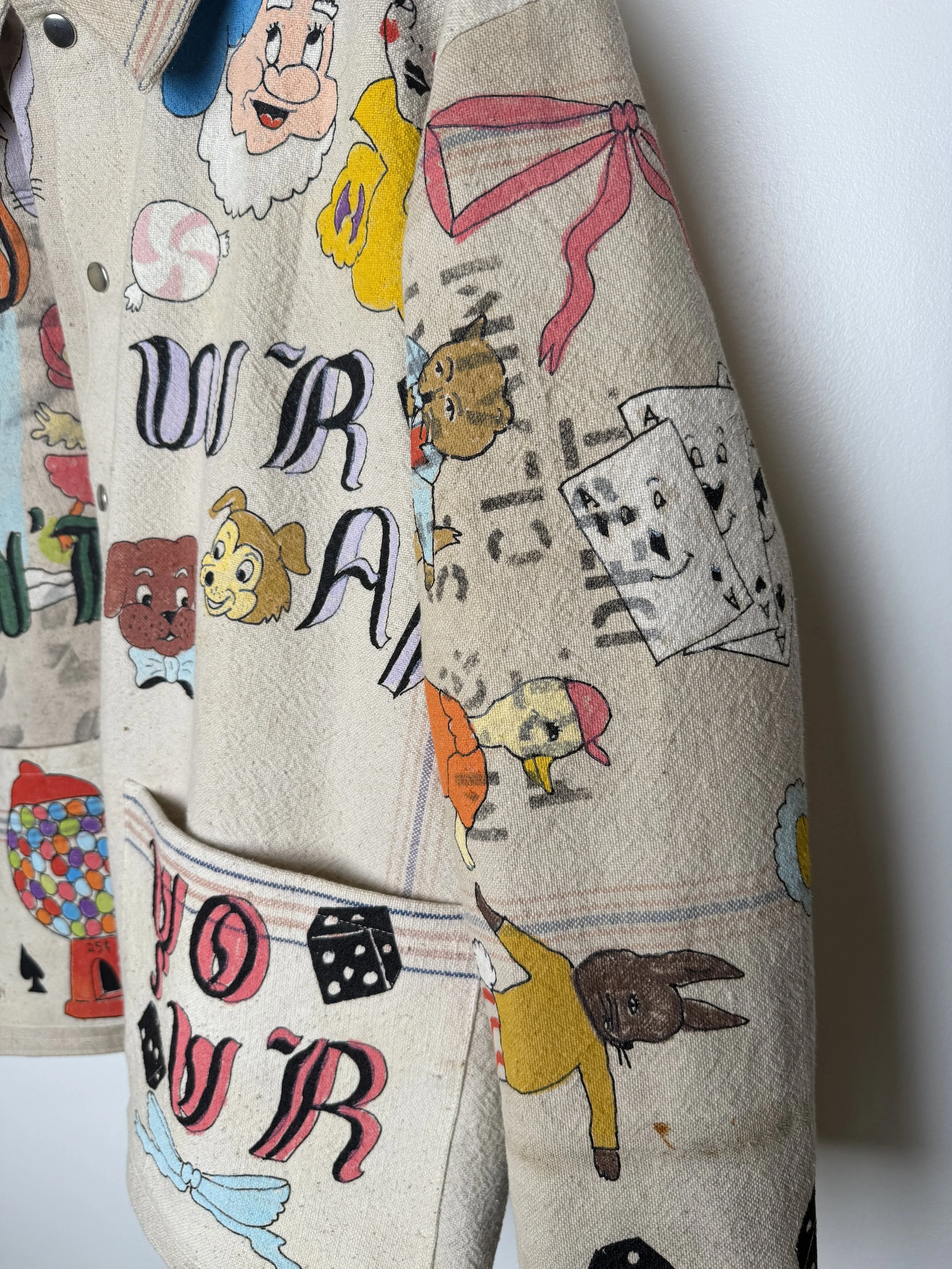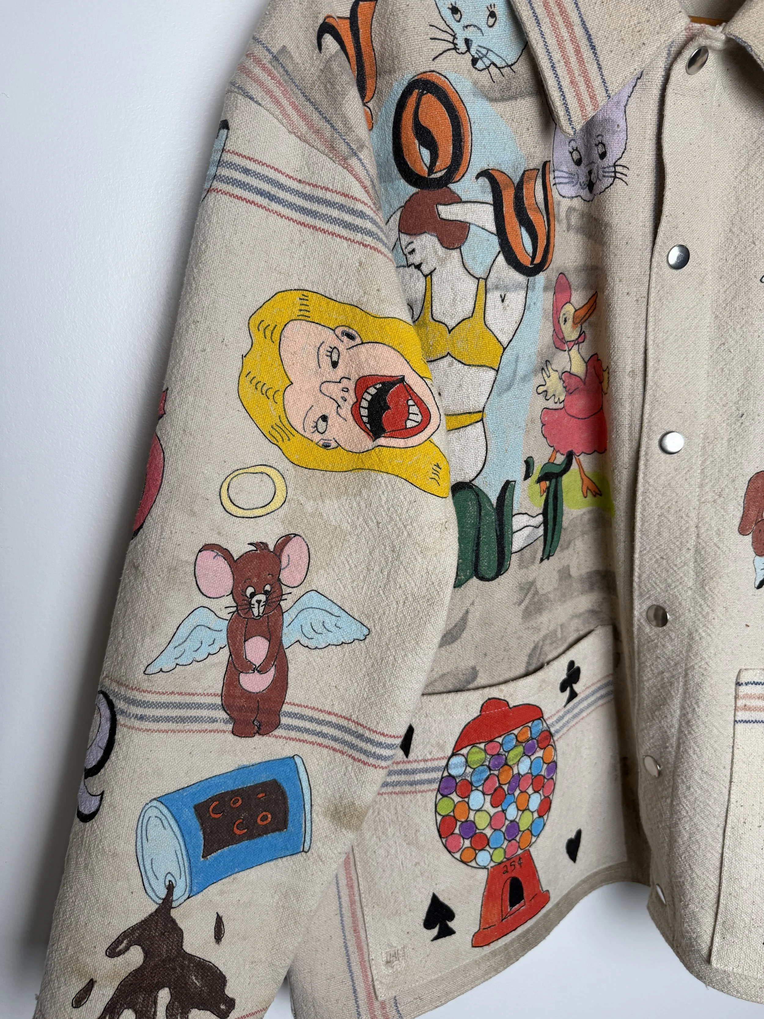 "Magnificent Obsession" vintage blanket lined feed sack Chore Coat M Sample