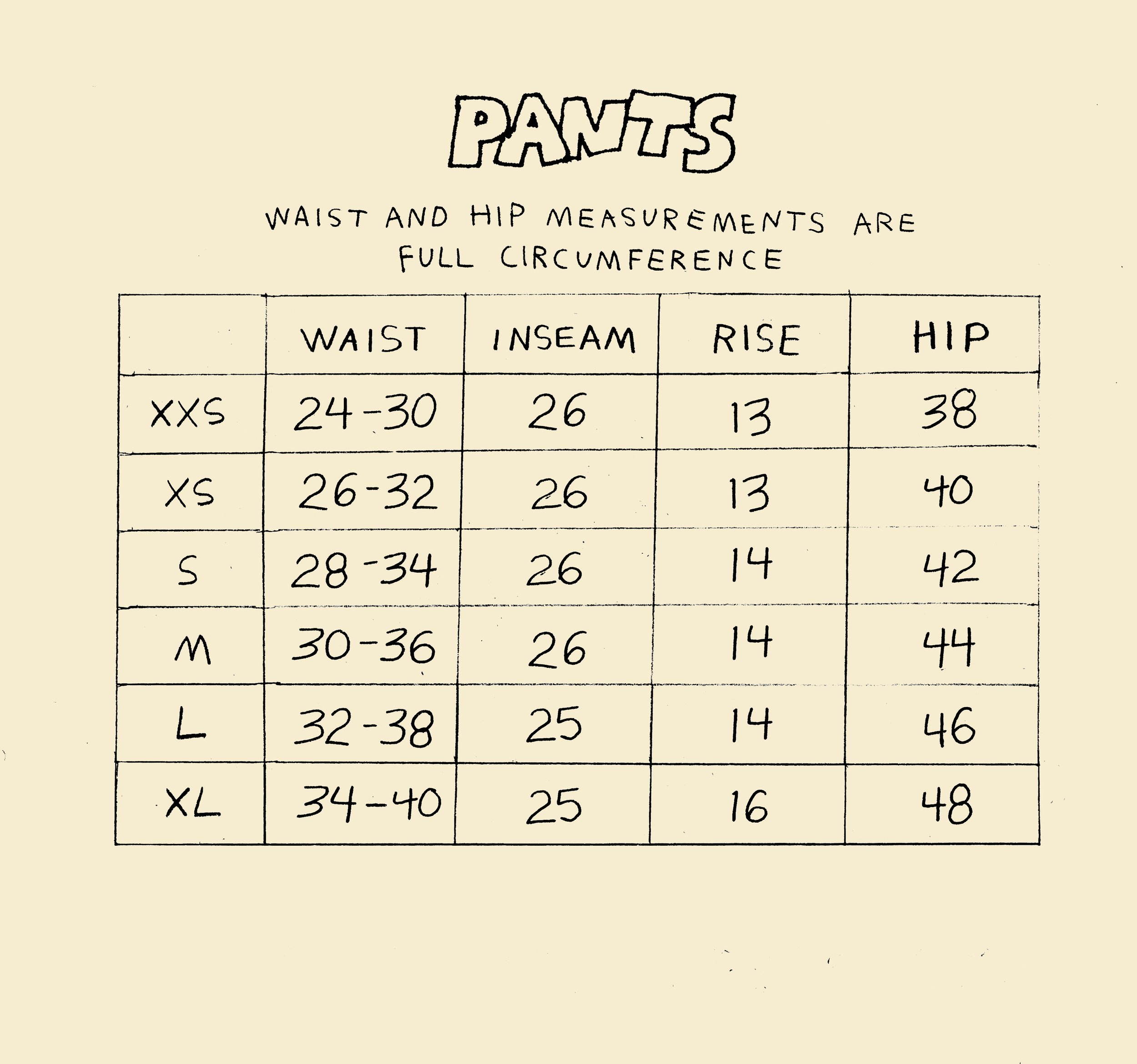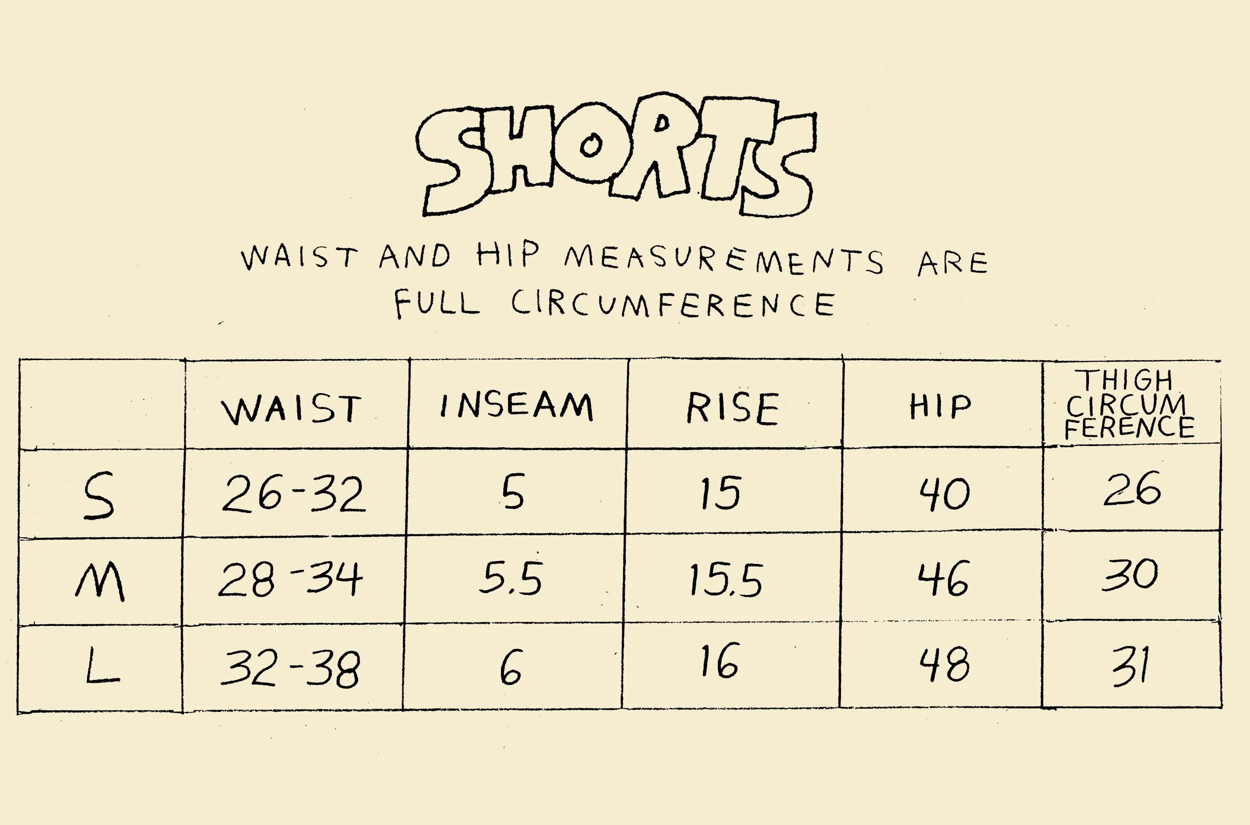 note: our shorts pattern hasn’t been graded and the fit is different through sizes. It has an ultra high rise and it is possible to be in between sizing due to the design. Measure your fav shorts and compare them to ours before buying.
